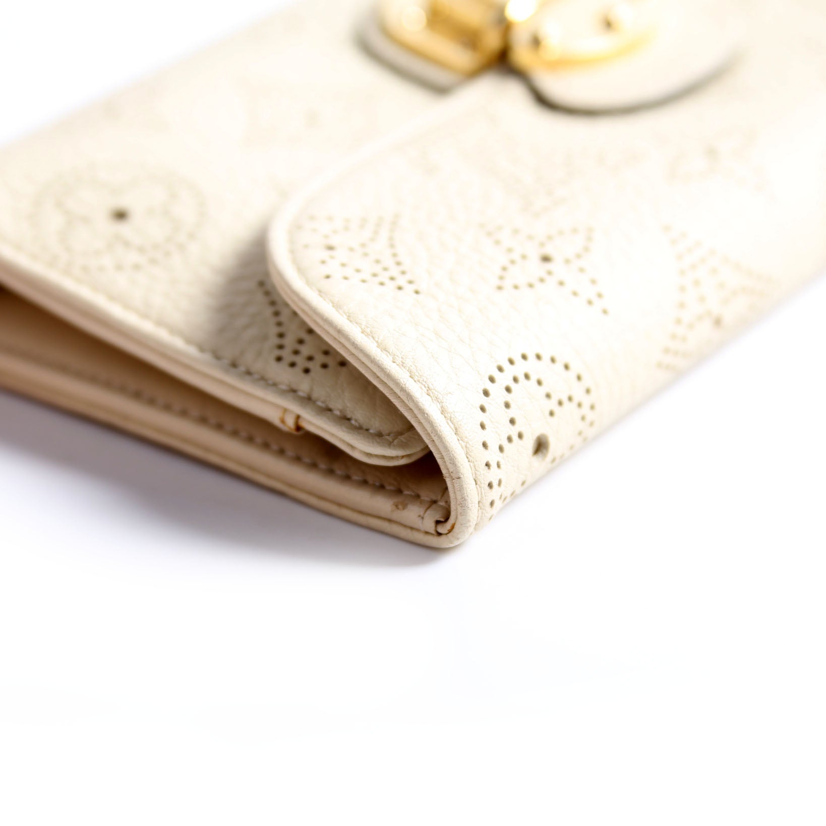 This pre-owned Louis Vuitton Amelia Wallet is guaranteed 100% authentic. The exterior is in the classic Mahina leather.