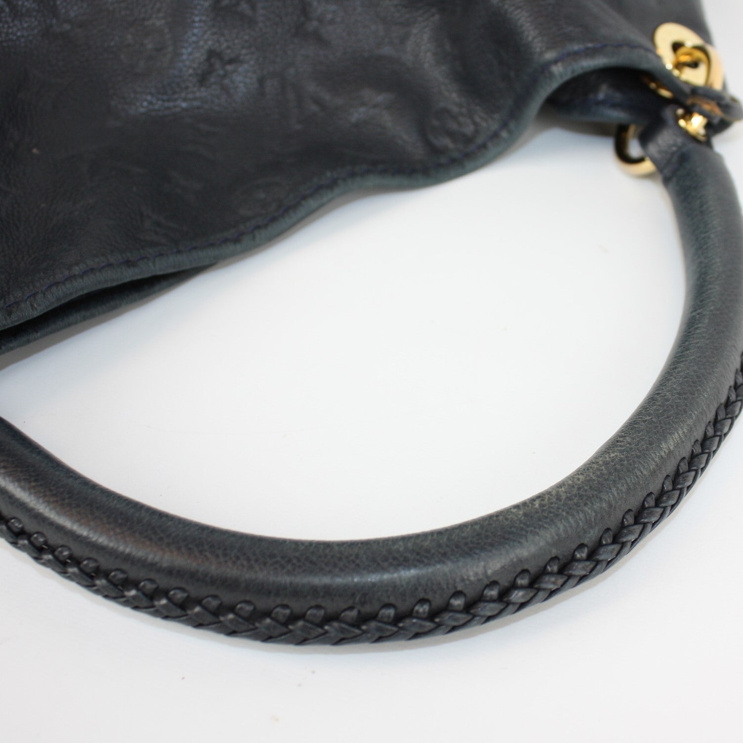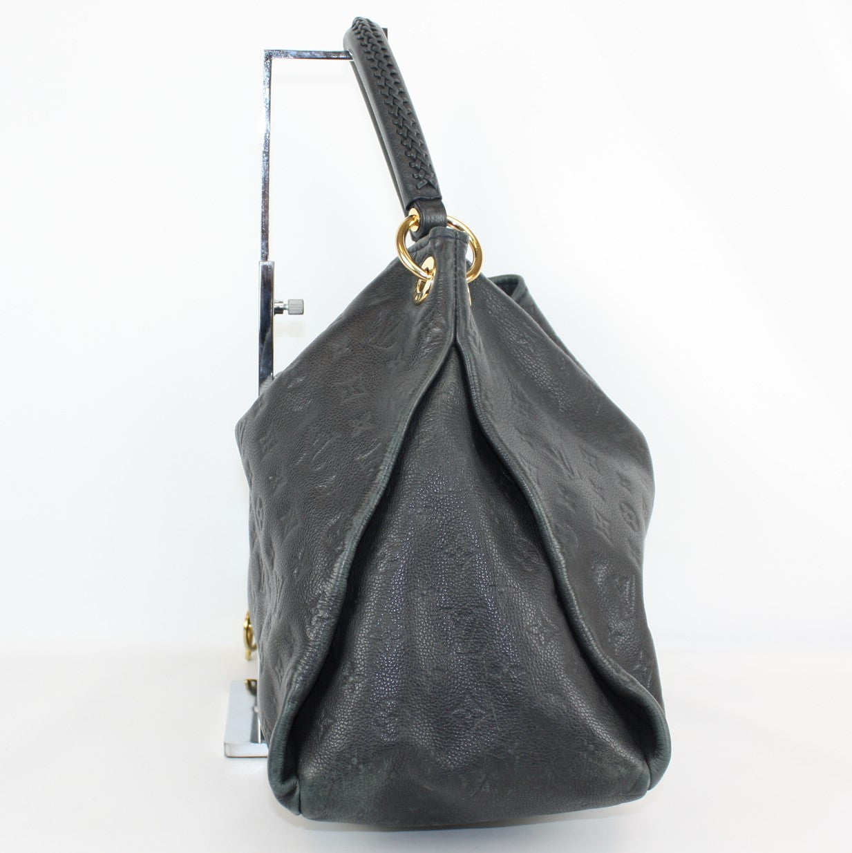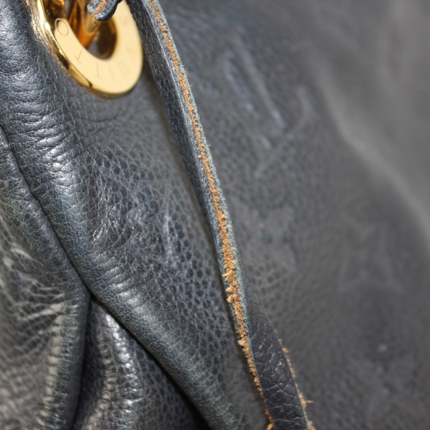 This pre-owned Louis Vuitton Artsy MM is guaranteed 100% authentic. The exterior is in the Empreinte leather.