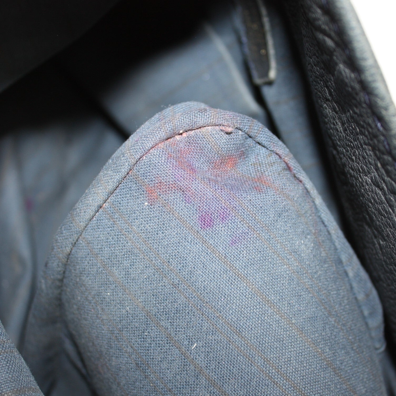 Interior: The interior is free of rips or tears, it does show major staining as pictured. The interior features six open pockets and one zip closure pocket.