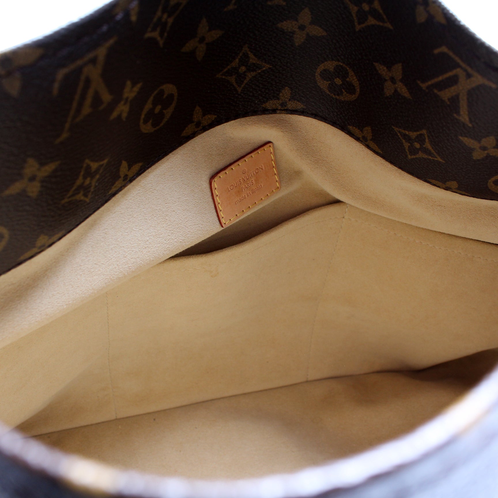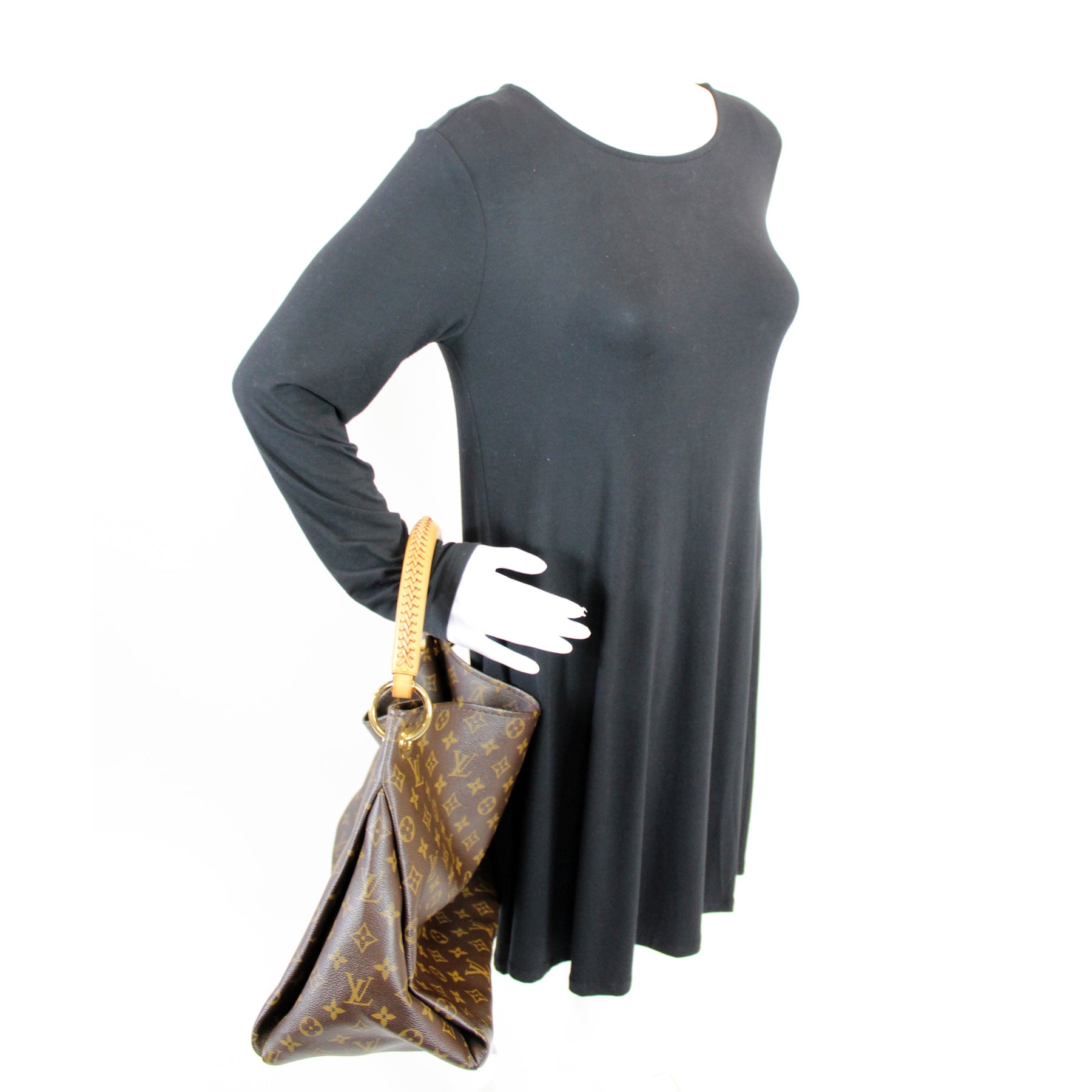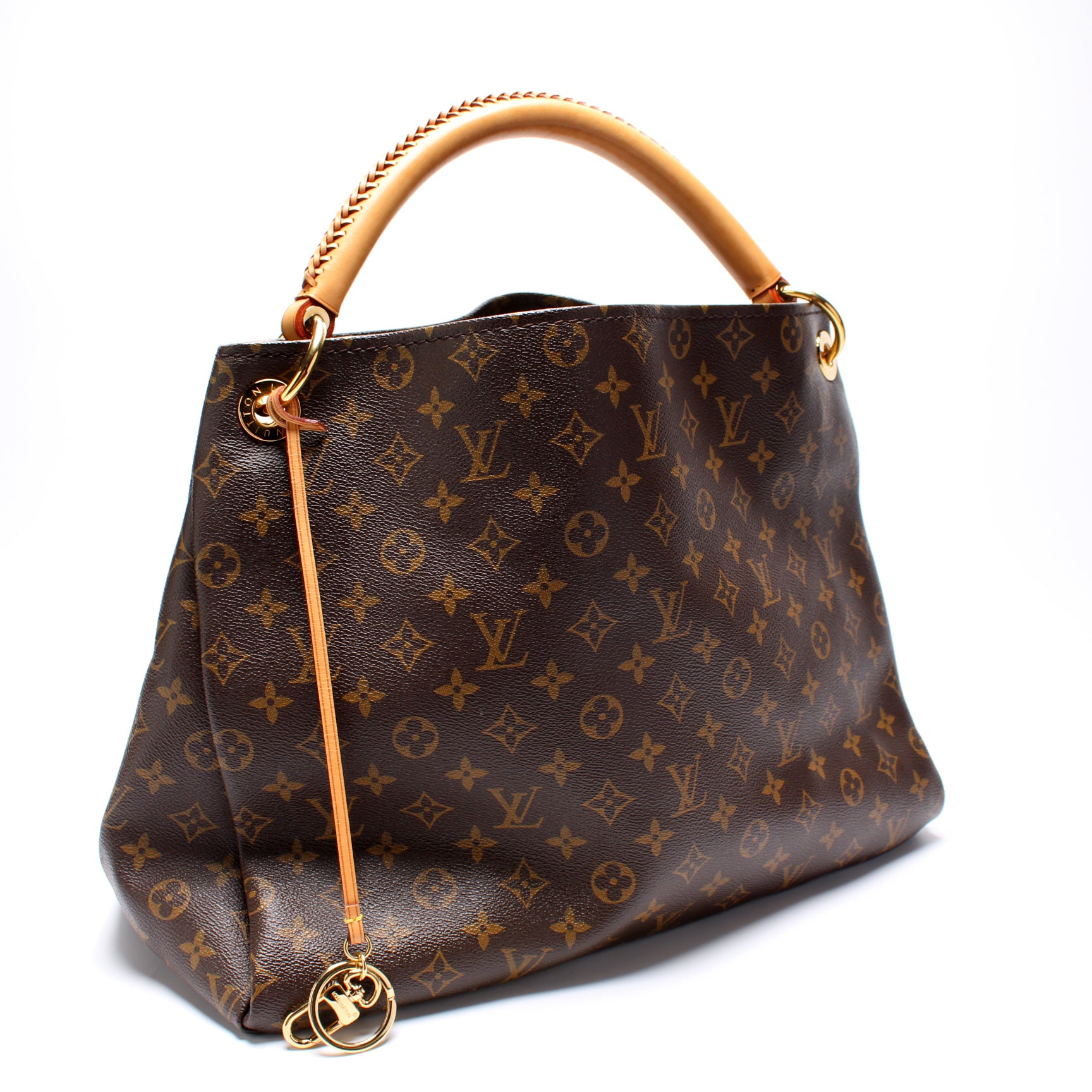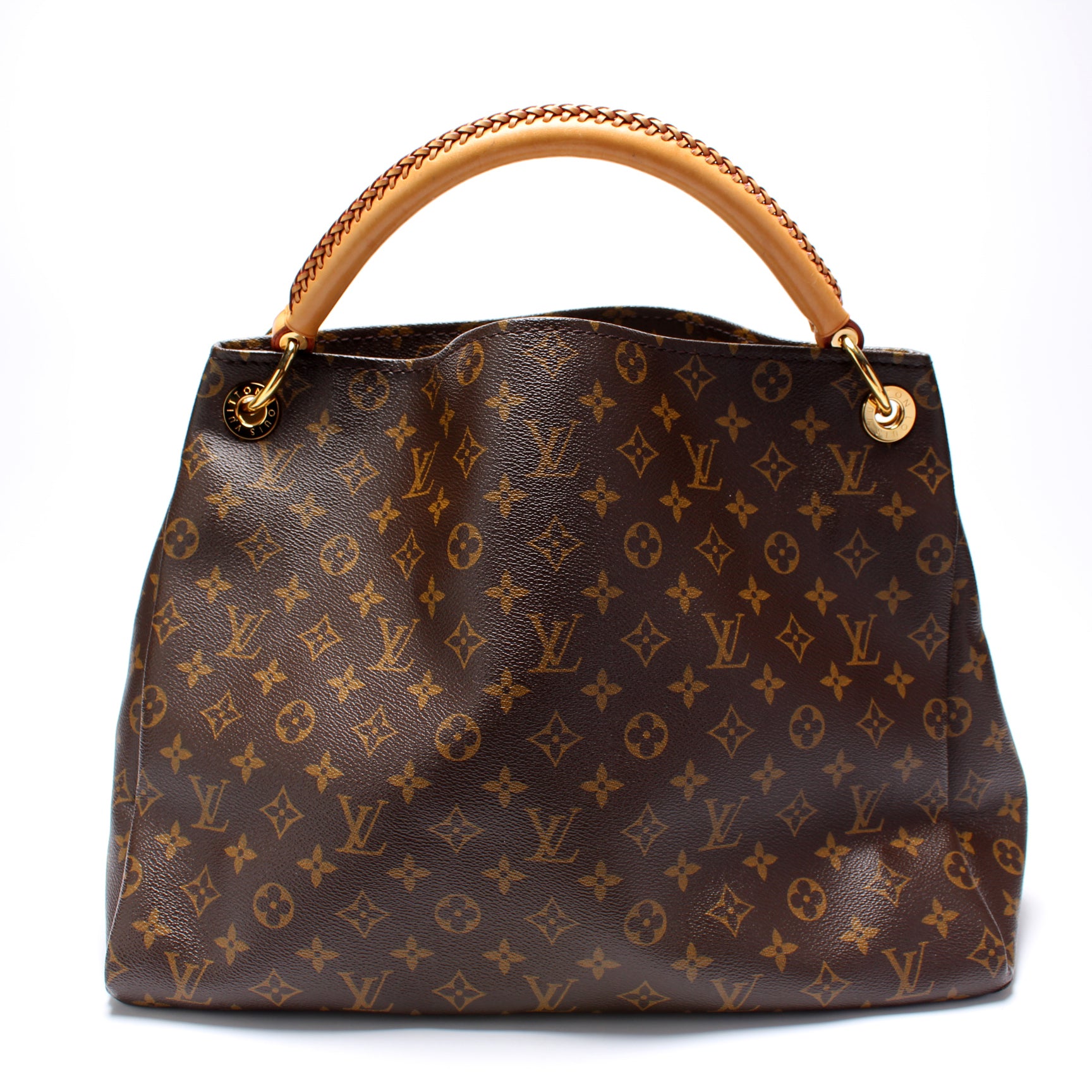 This pre-owned Louis Vuitton Artsy MM is guaranteed 100% authentic. The exterior is in the classic Louis Vuitton Monogram coated canvas.
