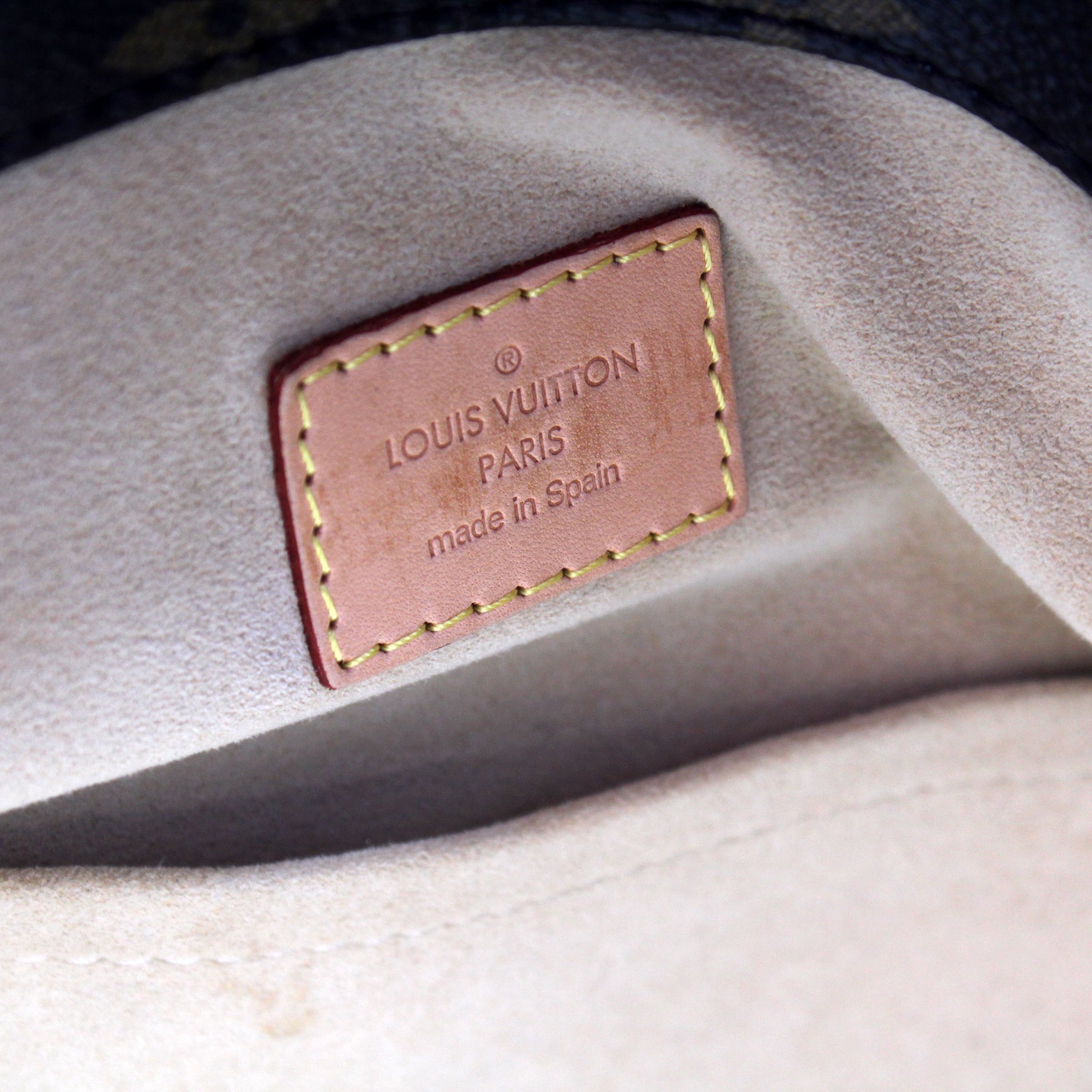 Interior: The interior has minor discoloration. The interior features six open pockets and one zip closure pocket.