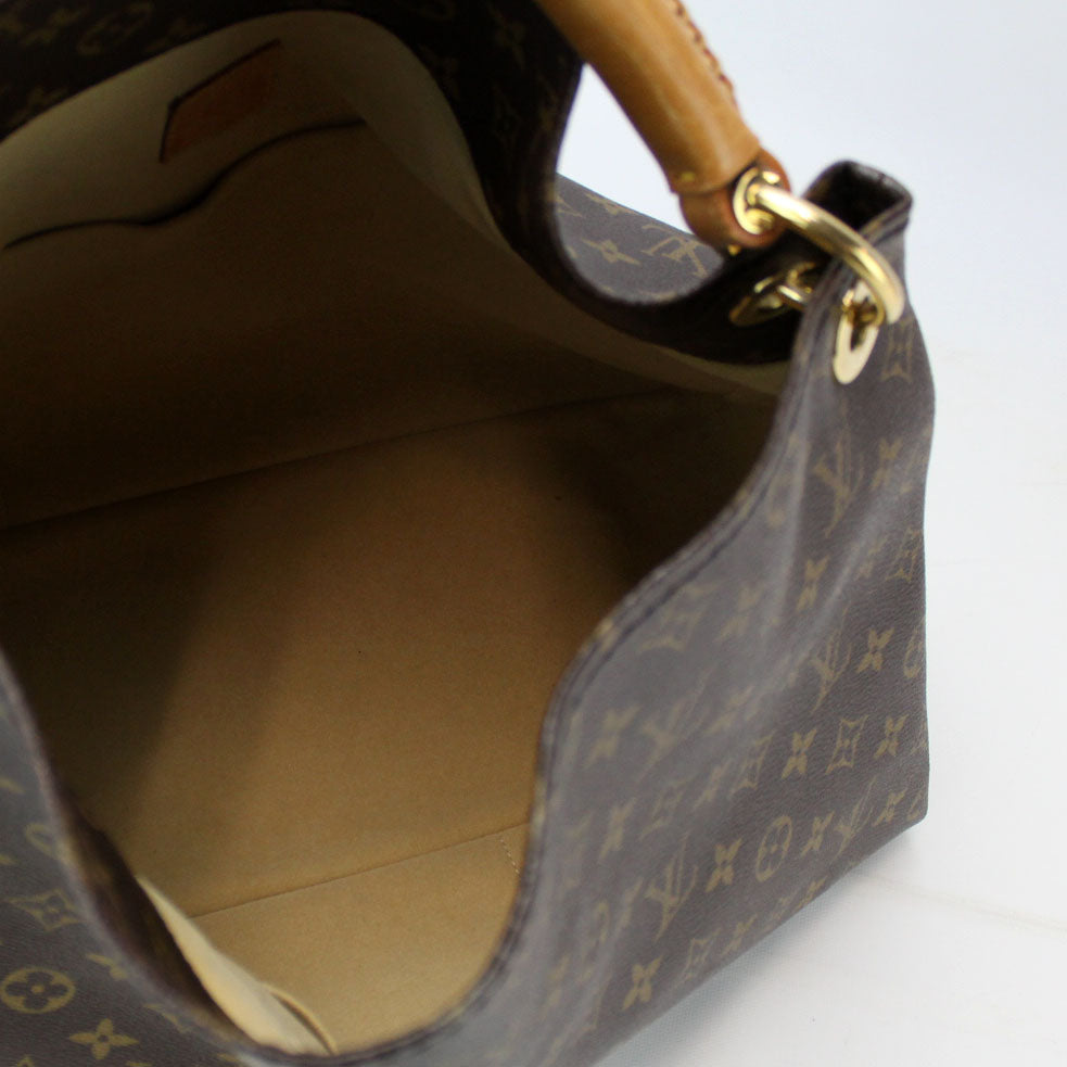 This pre-owned Louis Vuitton Artsy MM is guaranteed 100% authentic. The exterior is in the classic Louis Vuitton Monogram canvas.