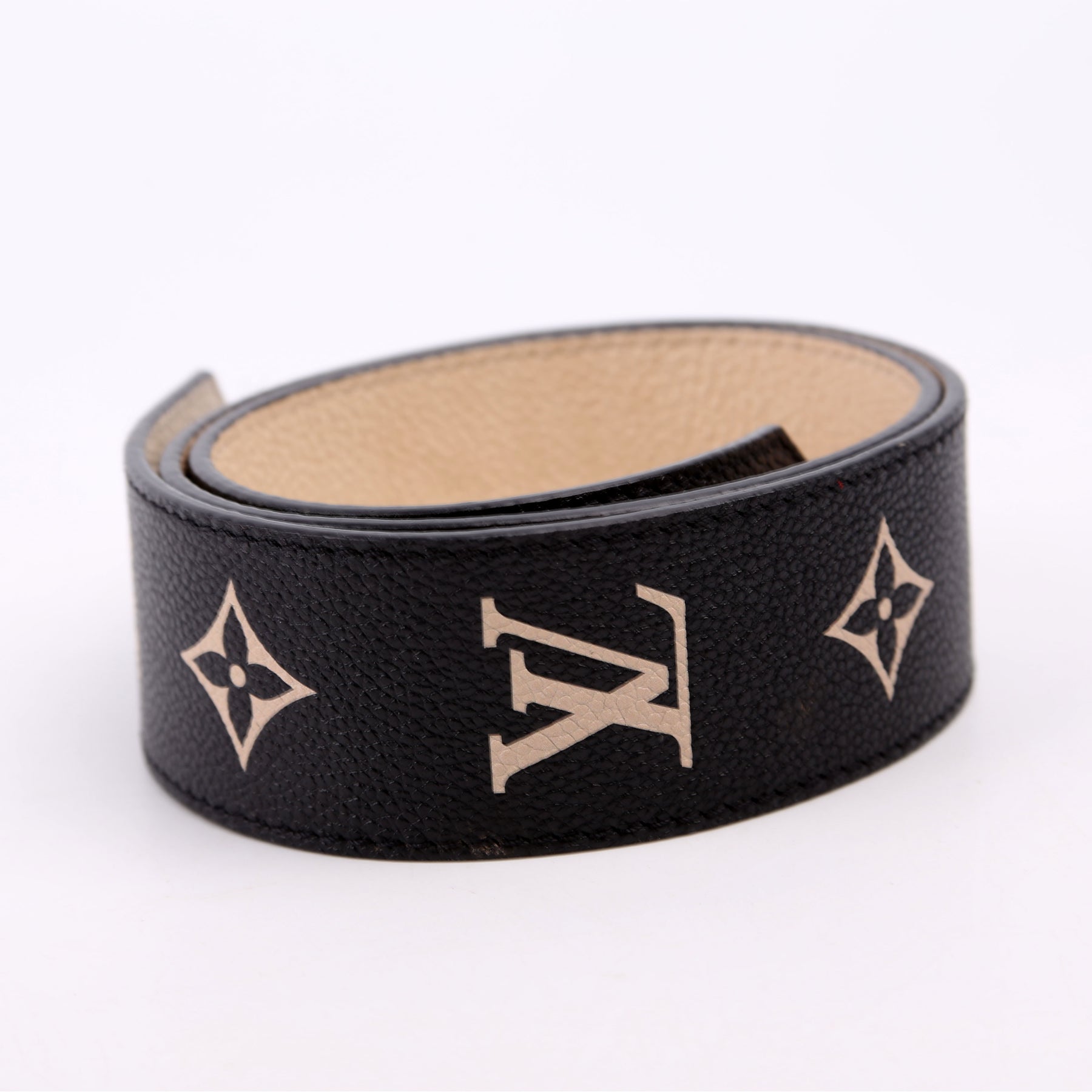 This pre-owned Louis Vuitton Bandouliere Strap is guaranteed 100% authentic. The exterior is in the classic Louis Vuitton bicolor empreinte leather.