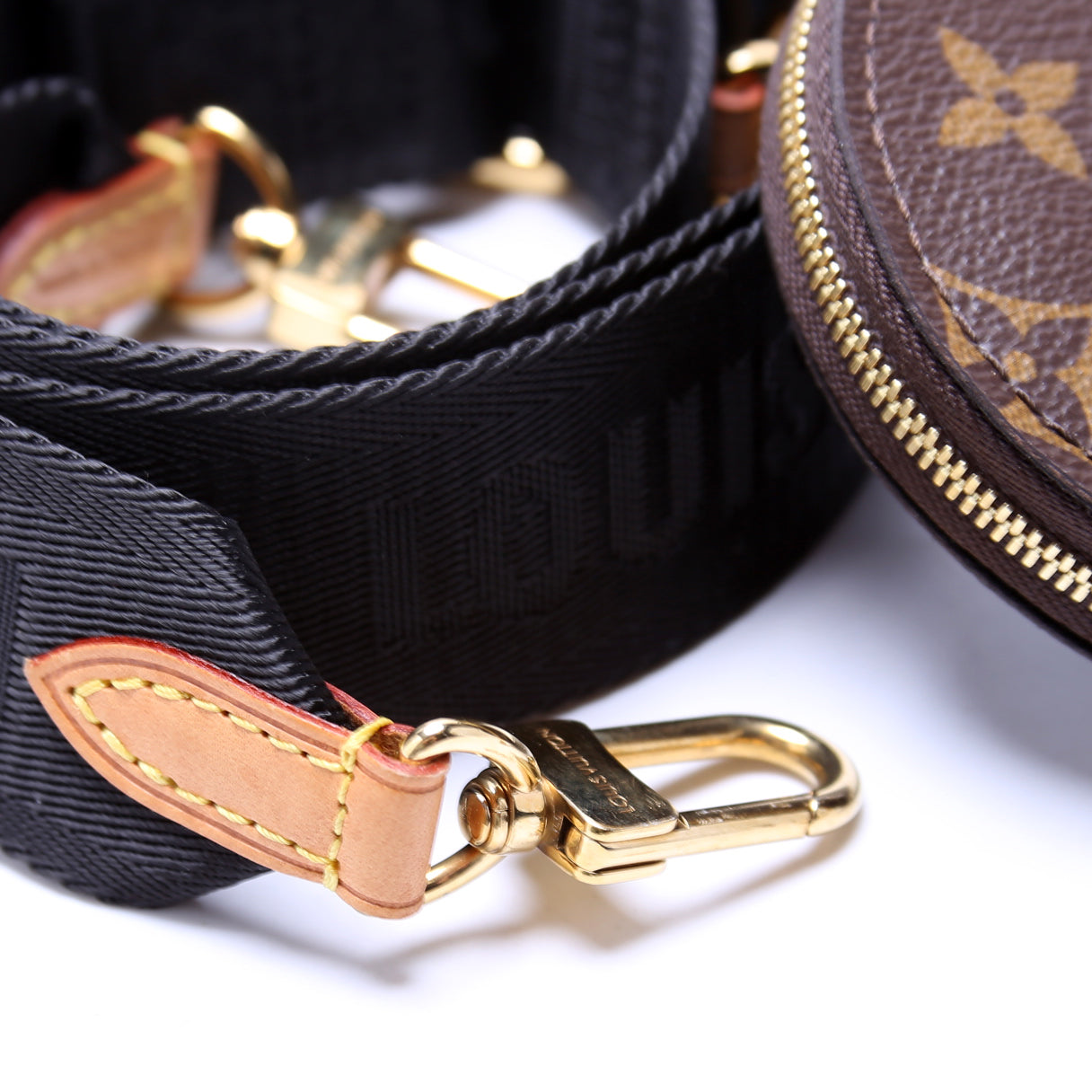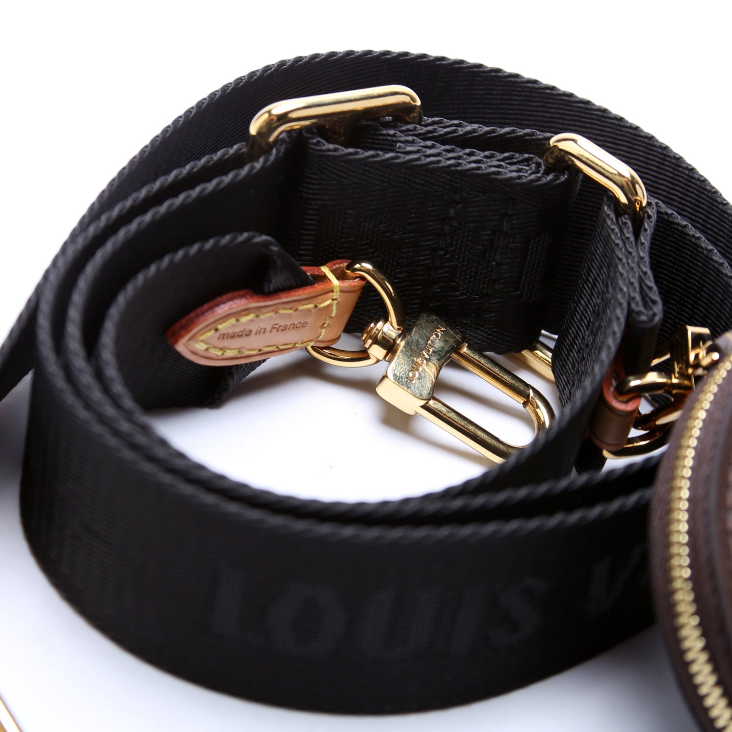 This pre-owned Louis Vuitton Bandouliere Jacquard Strap with Round Coin Purse is guaranteed 100% authentic.