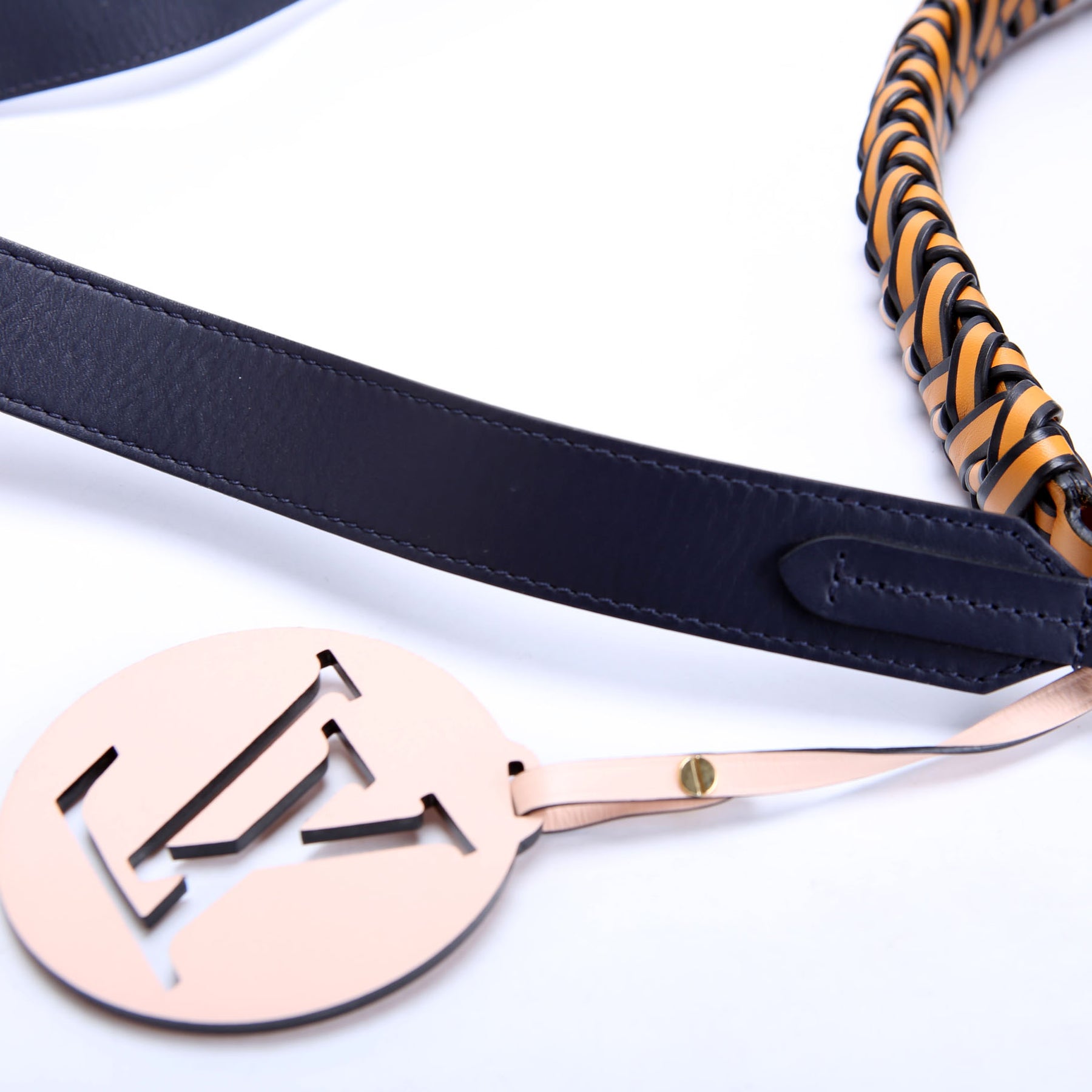 Handle: The leather handle shows light discolor throughout.