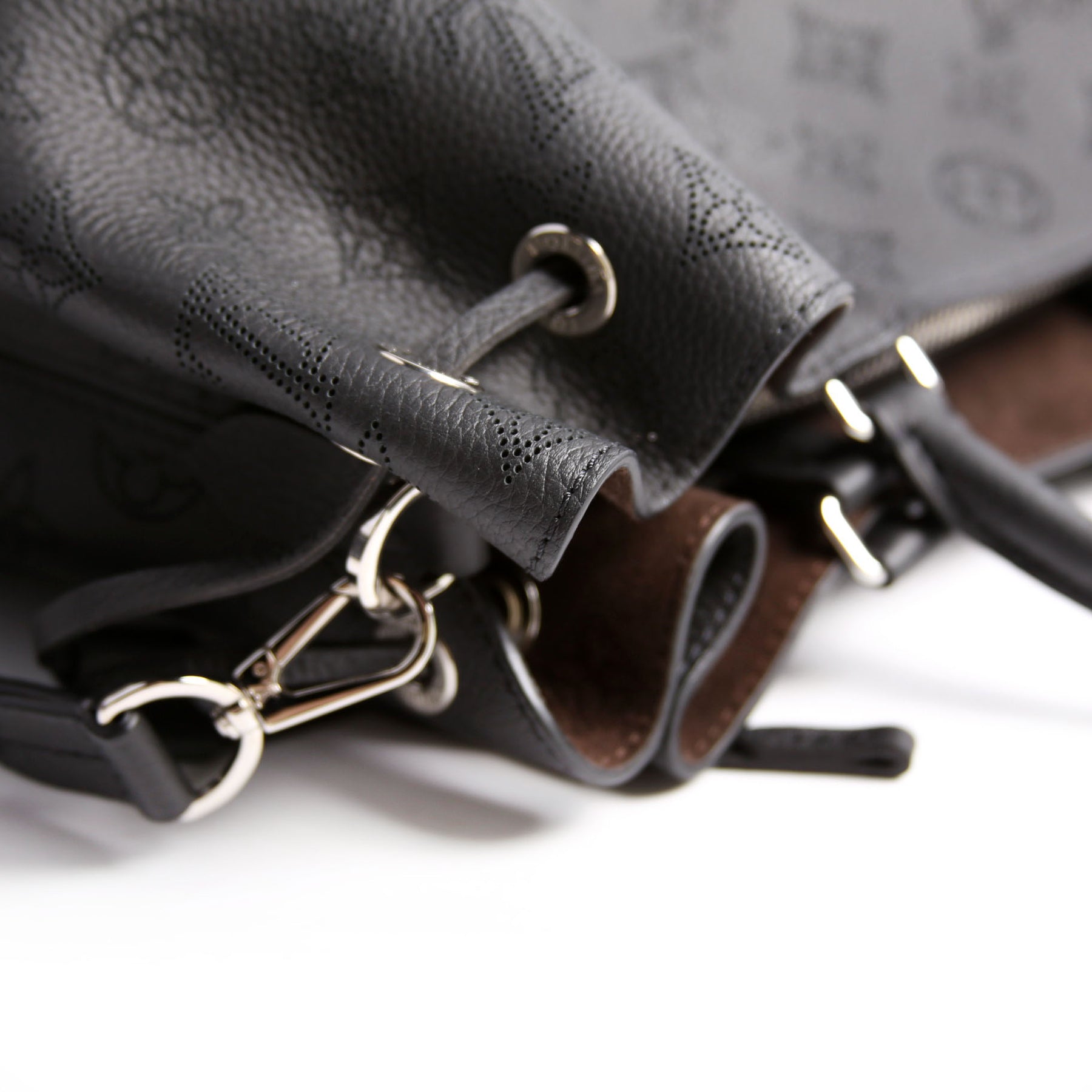 This pre-owned Louis Vuitton Bella Tote is guaranteed 100% authentic. The exterior is in the classic Louis Vuitton Mahina leather.