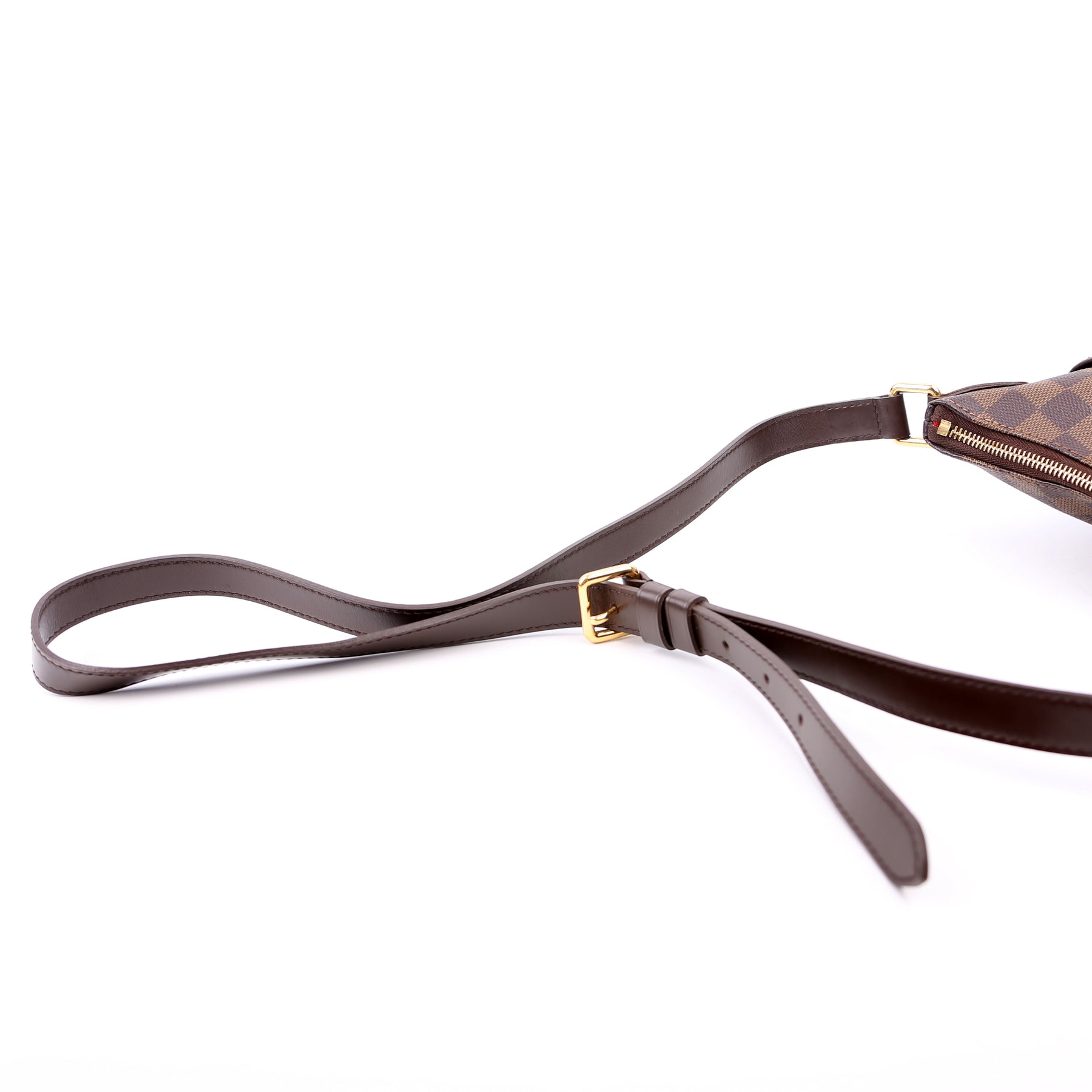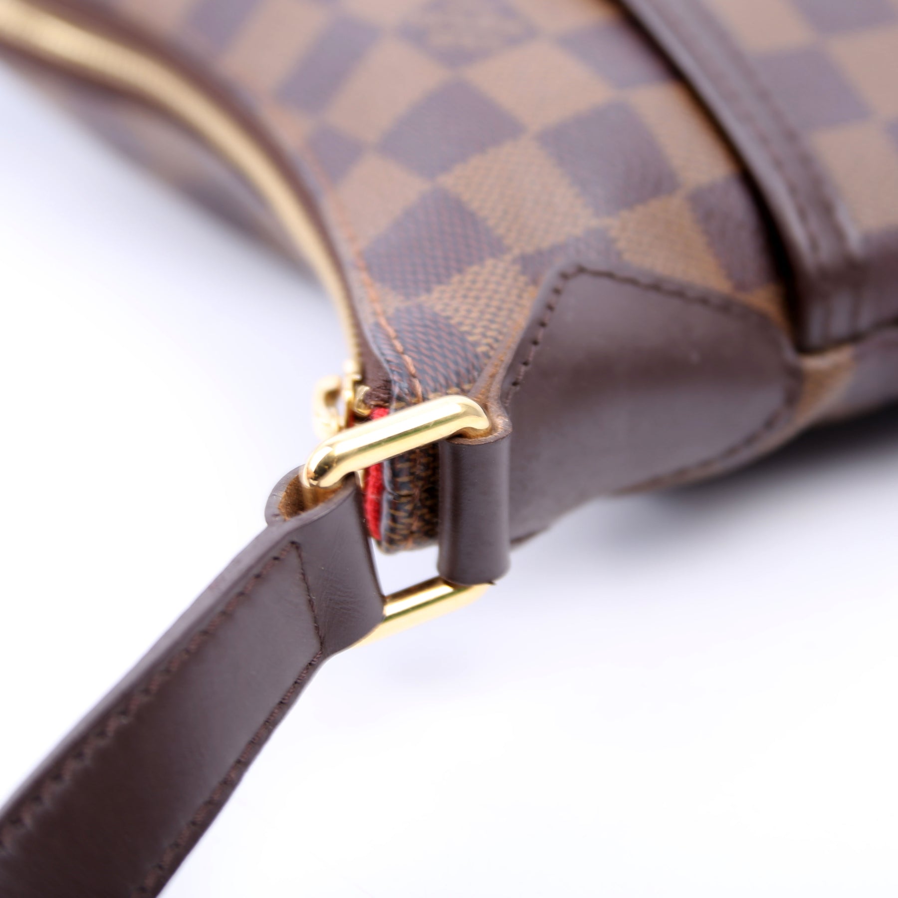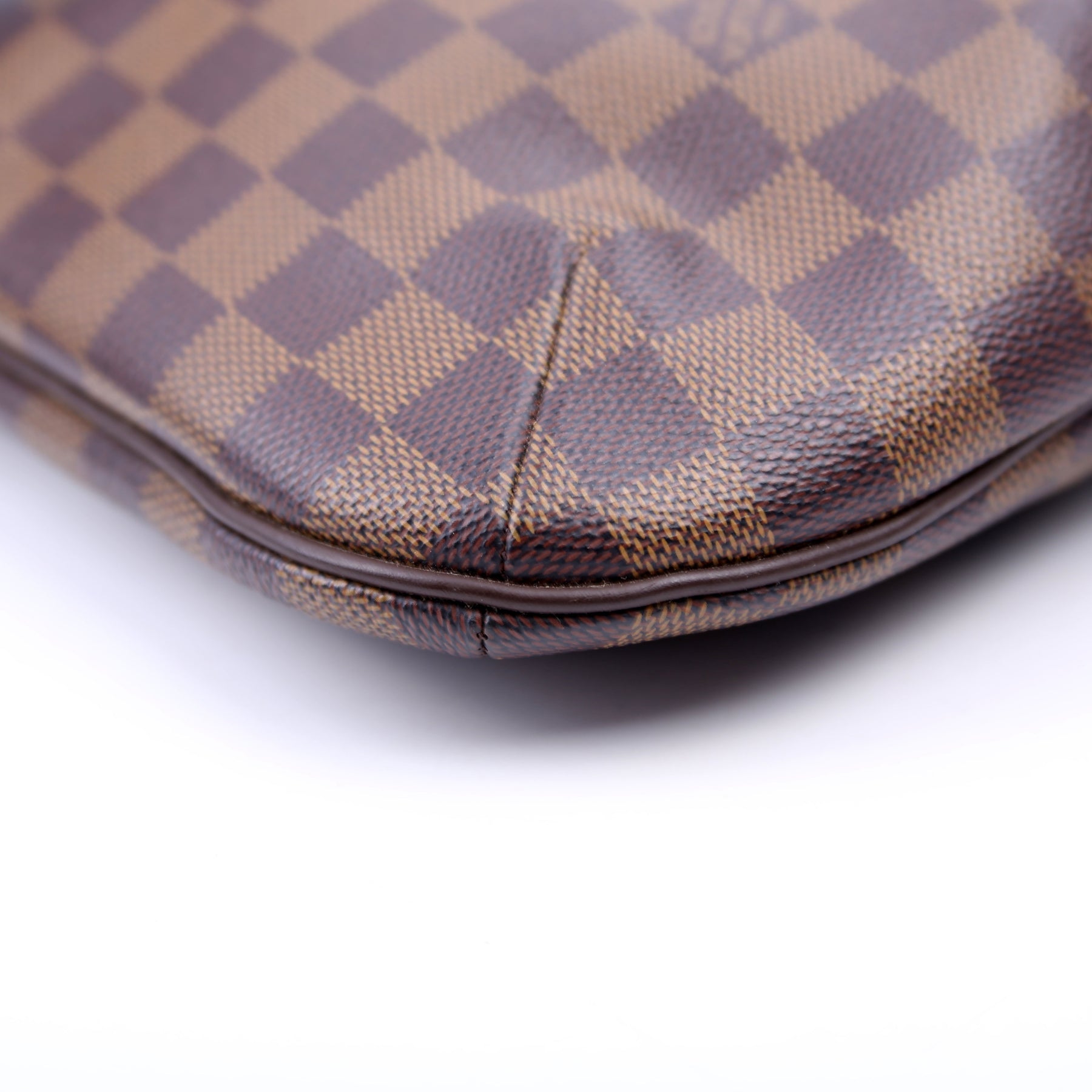 This pre-owned Louis Vuitton Bloomsbury PM is guaranteed 100% authentic. The exterior is in the classic Louis Vuitton Damier Ebene coated canvas.