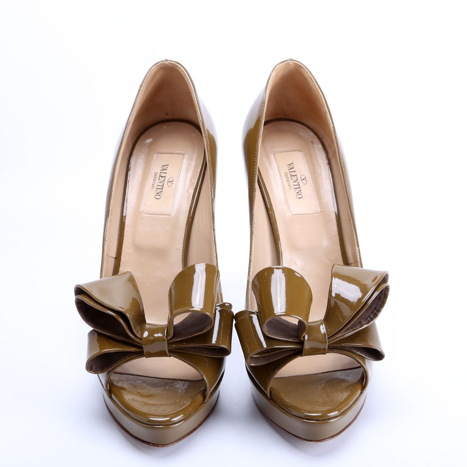 These pre-owned Valentino Bow Patent Platform Pumps are guaranteed 100% authentic.