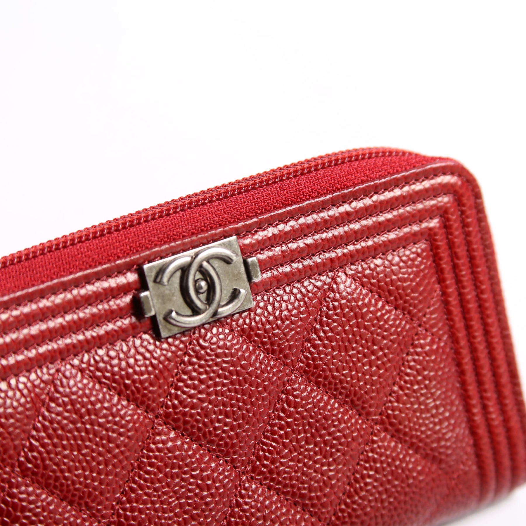 Boy Wallet Zip Around Small Quilted Caviar 20M Red