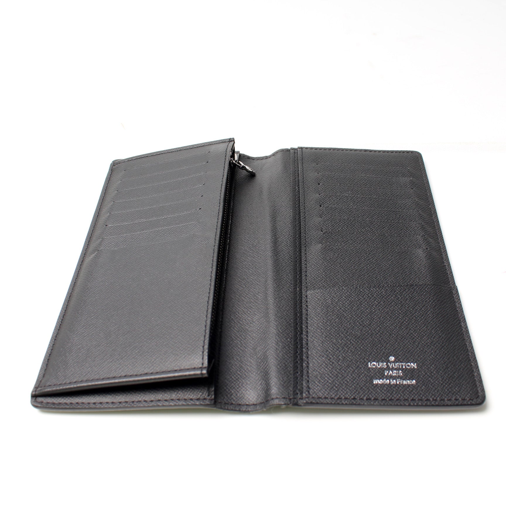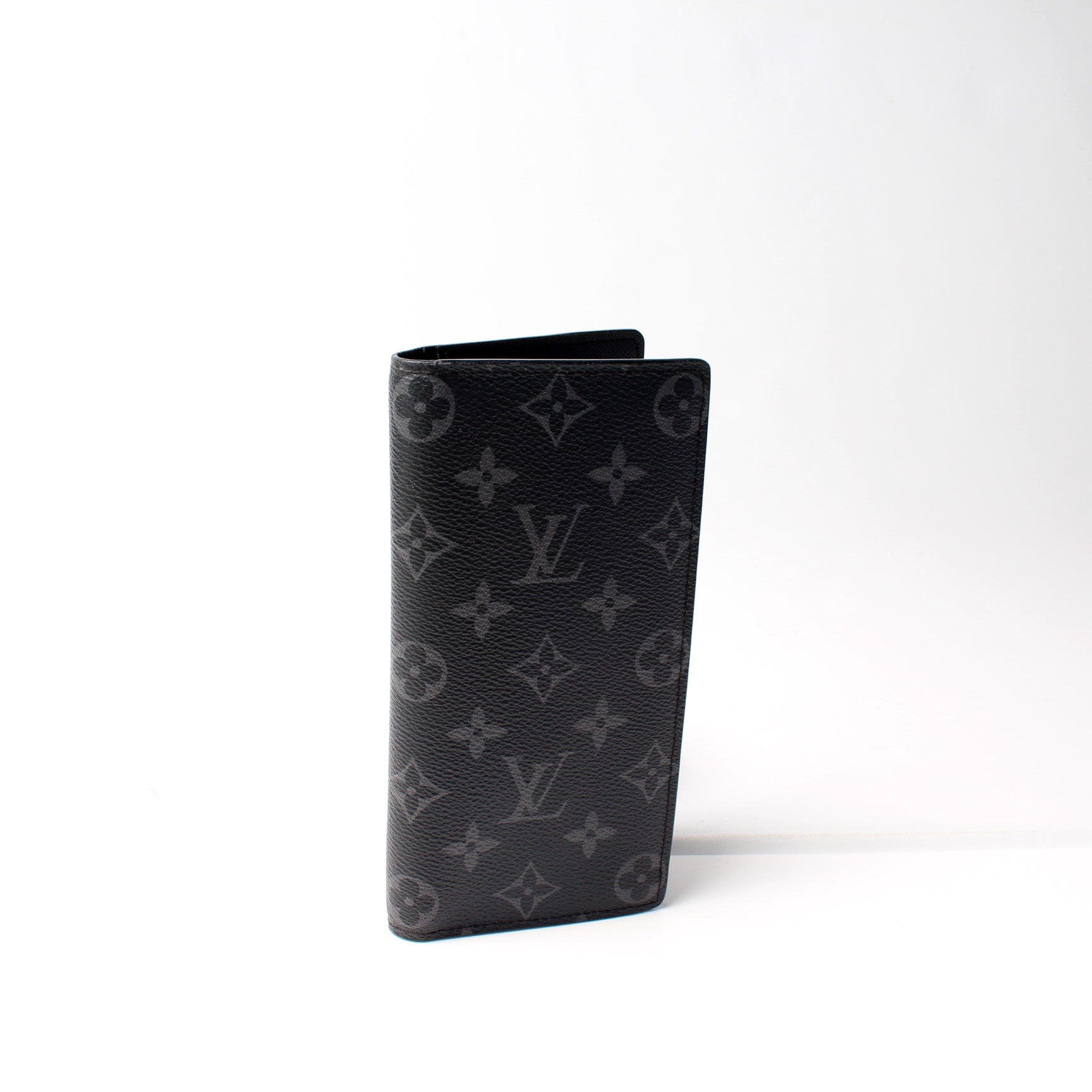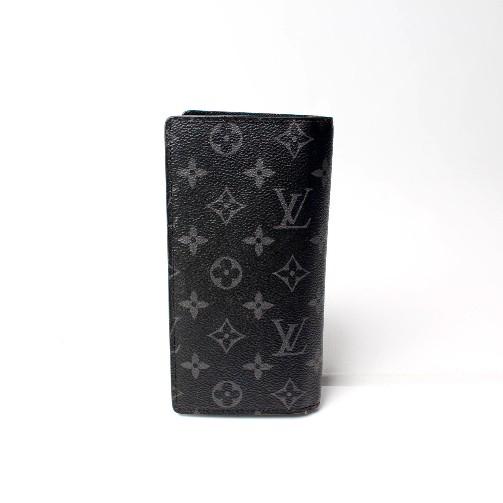 This pre-owned Louis Vuitton Brazza Wallet is guaranteed 100% authentic. The exterior is in the classic Louis Vuitton Monogram Eclipse coated canvas.