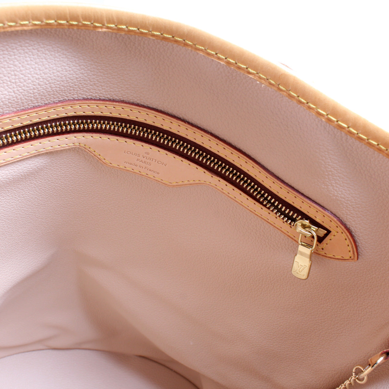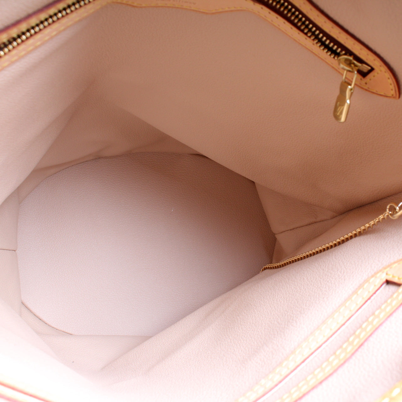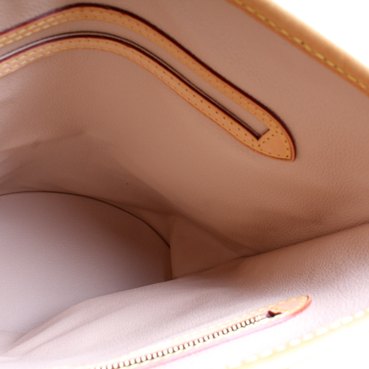 Interior: The interior is clean and free of rips or tears. The interior features one open pocket and one zip closure pocket.