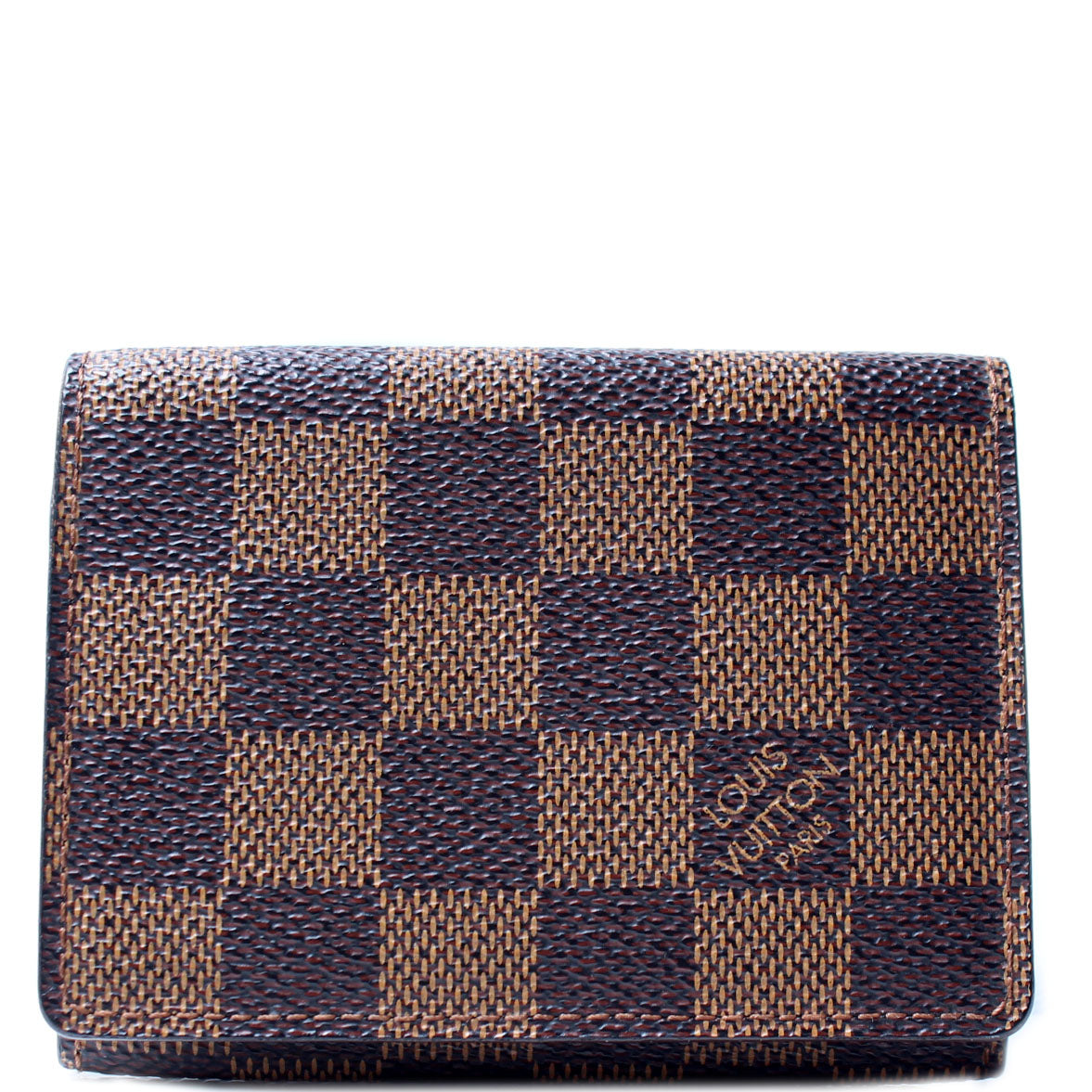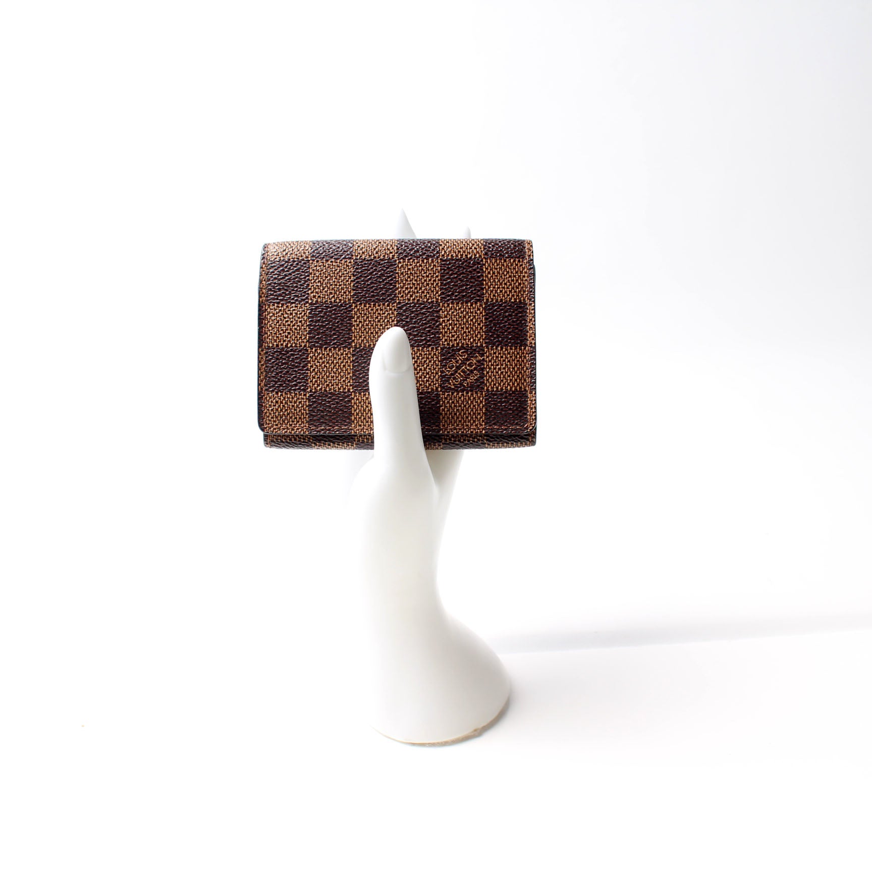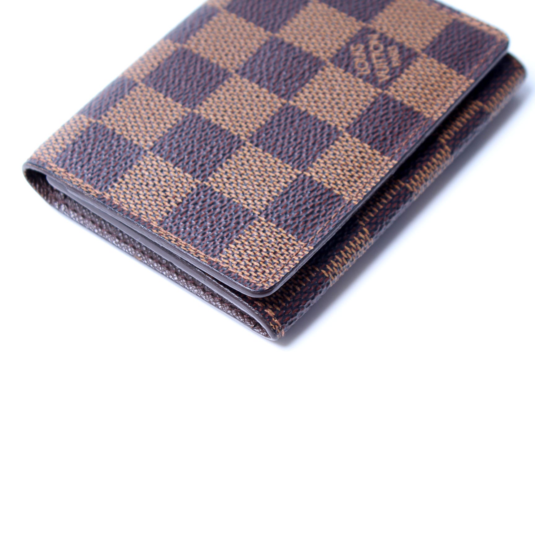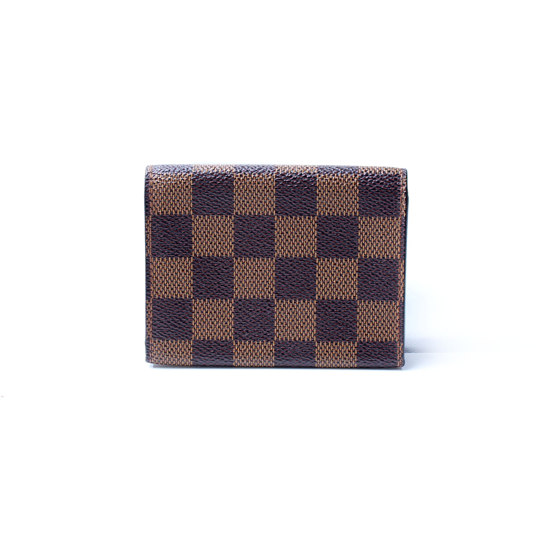 This pre-owned Louis Vuitton Business Card Holder is guaranteed 100% authentic. The exterior is in the classic Louis Vuitton Damier Ebene coated canvas.