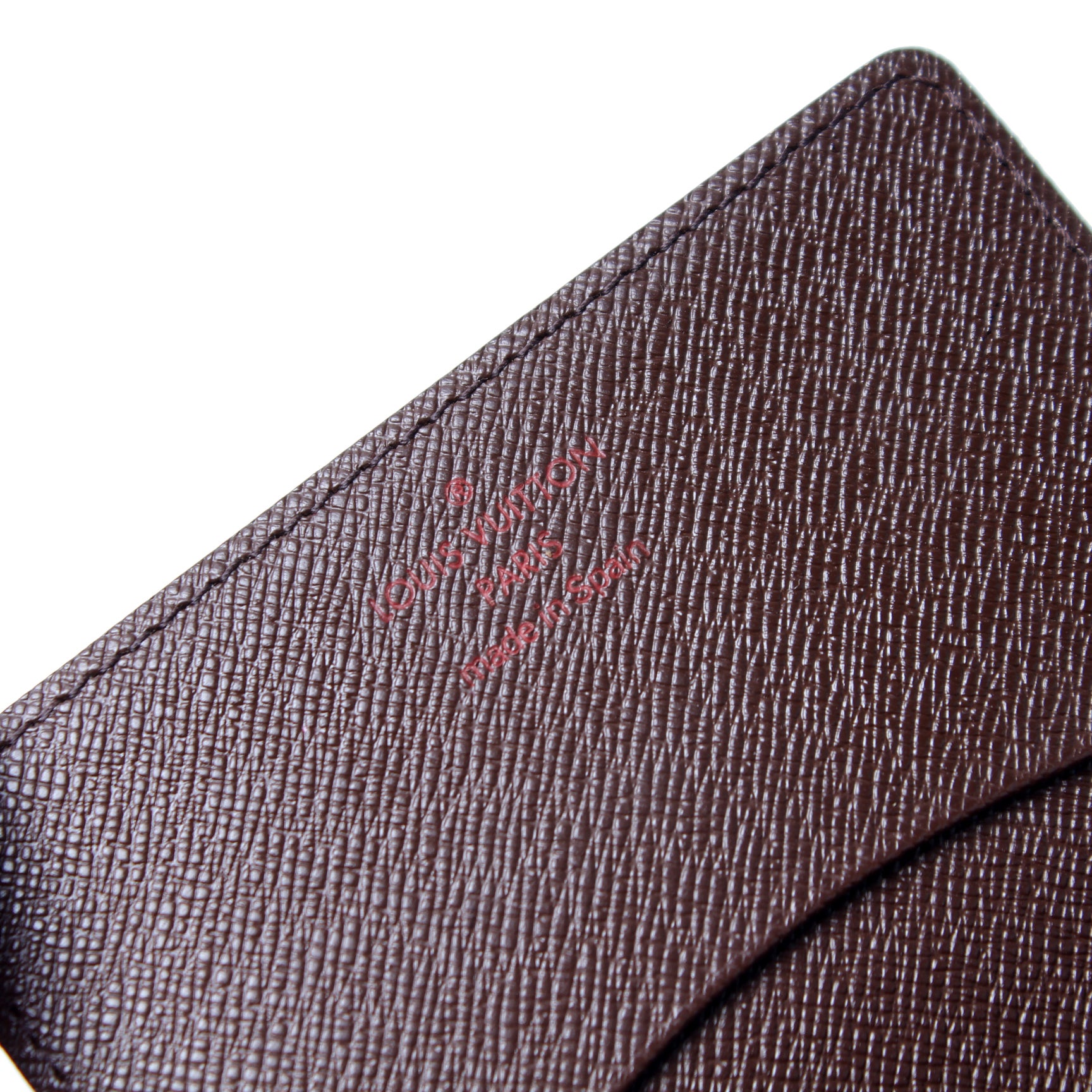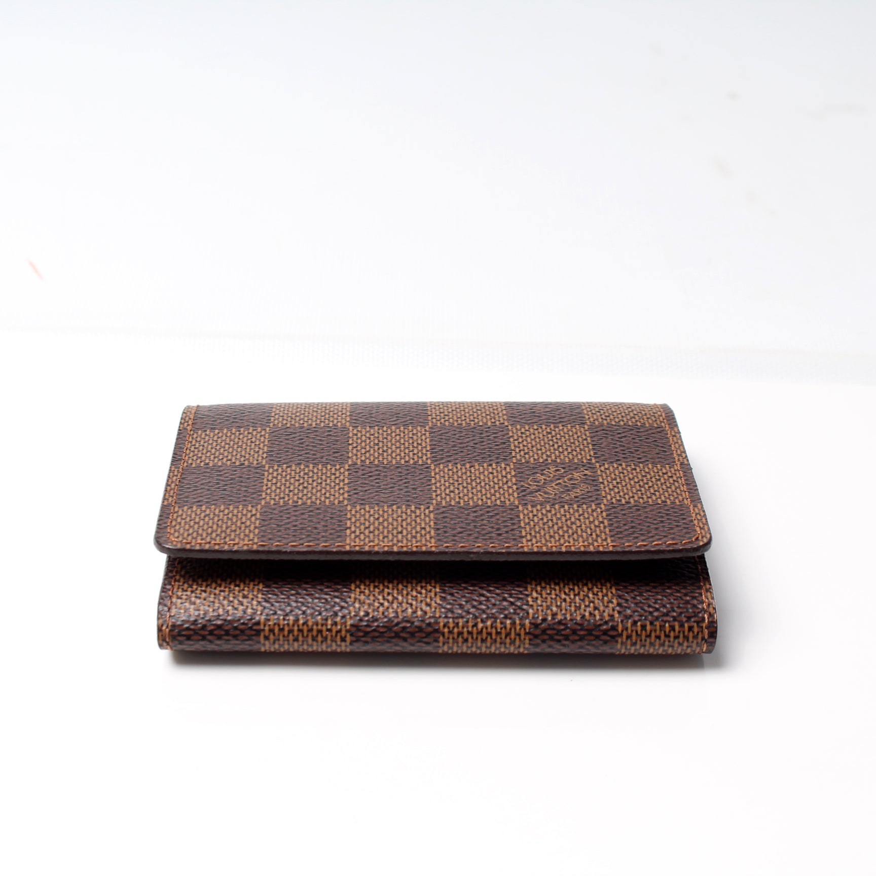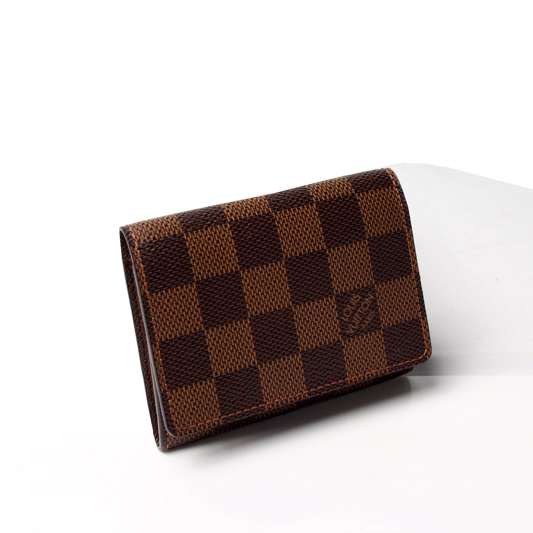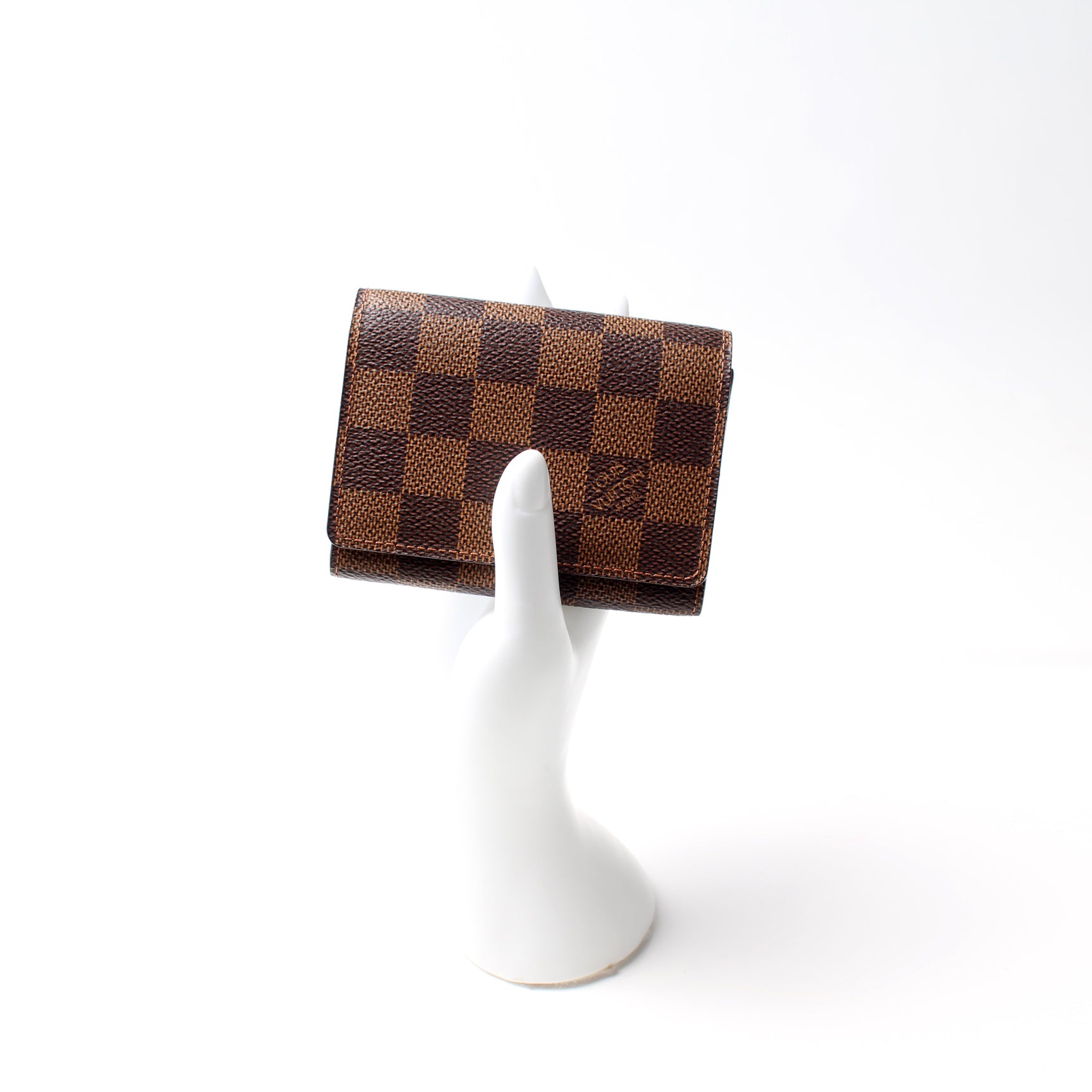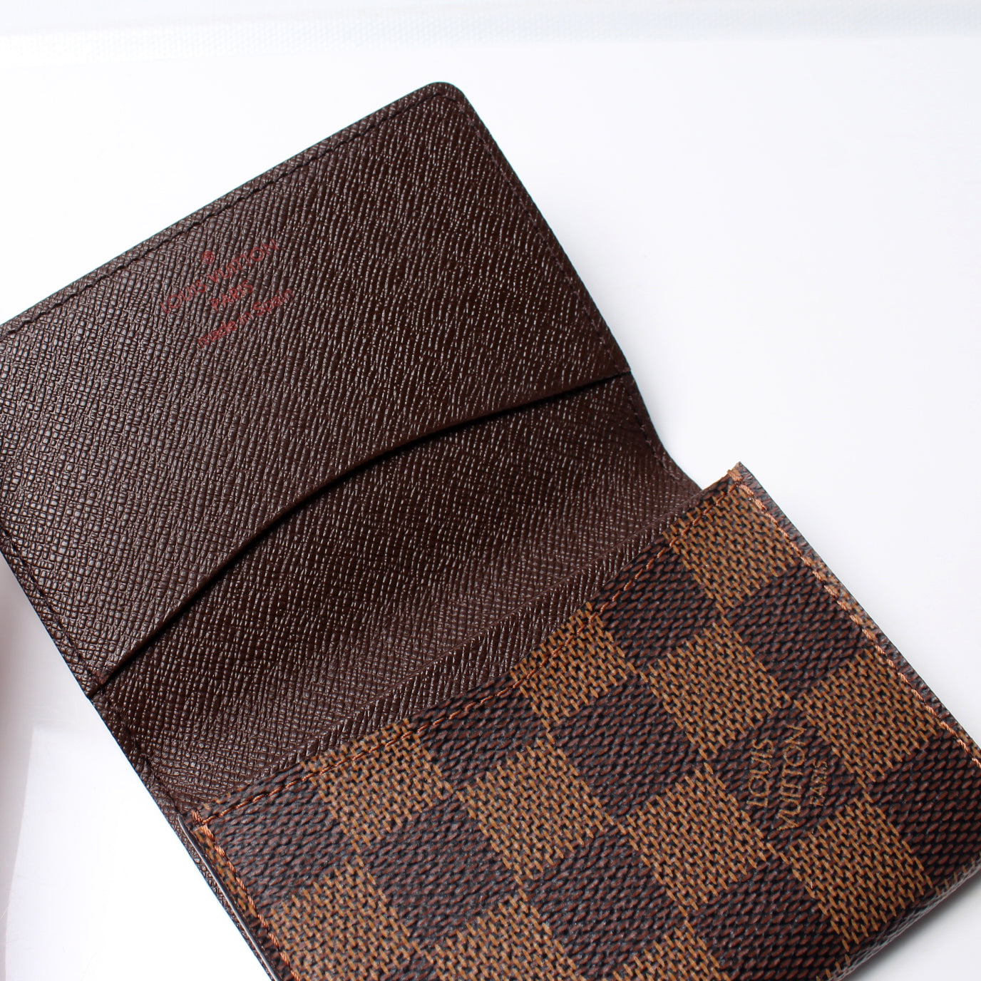 This pre-owned Louis Vuitton Business Card Holder is guaranteed 100% authentic. The exterior is in the classic Louis Vuitton Damier Ebene coated canvas.