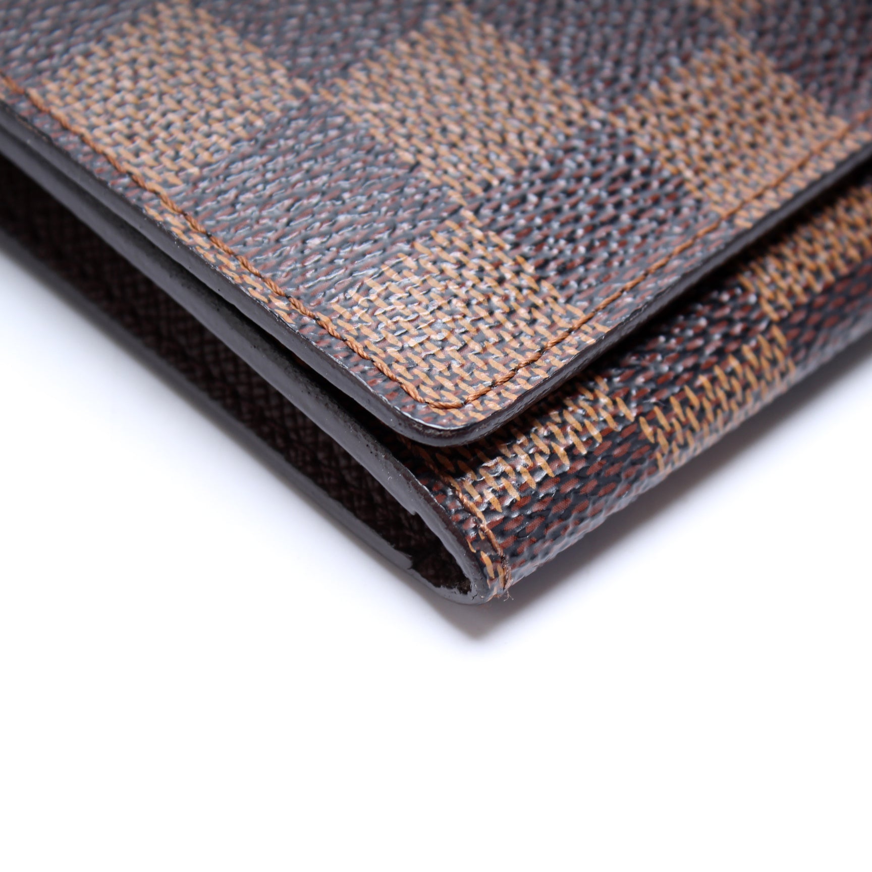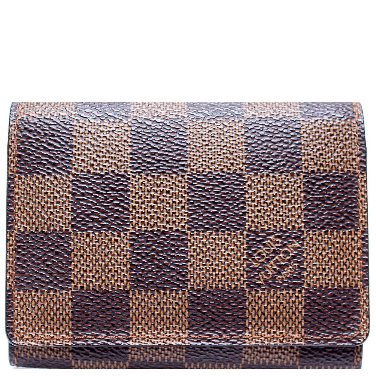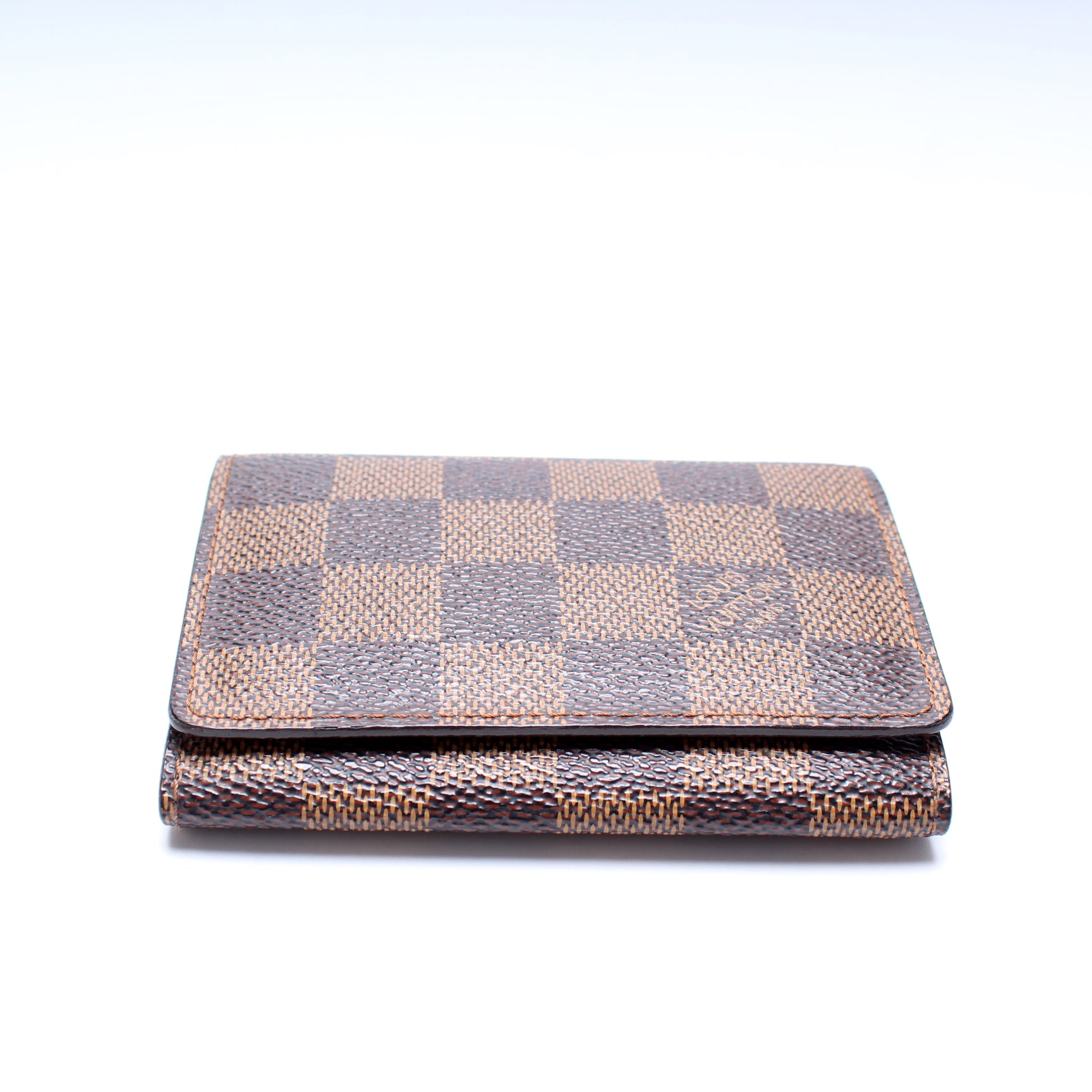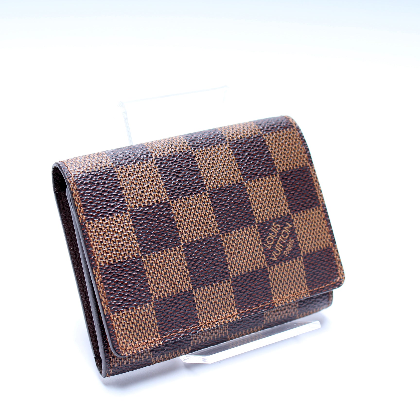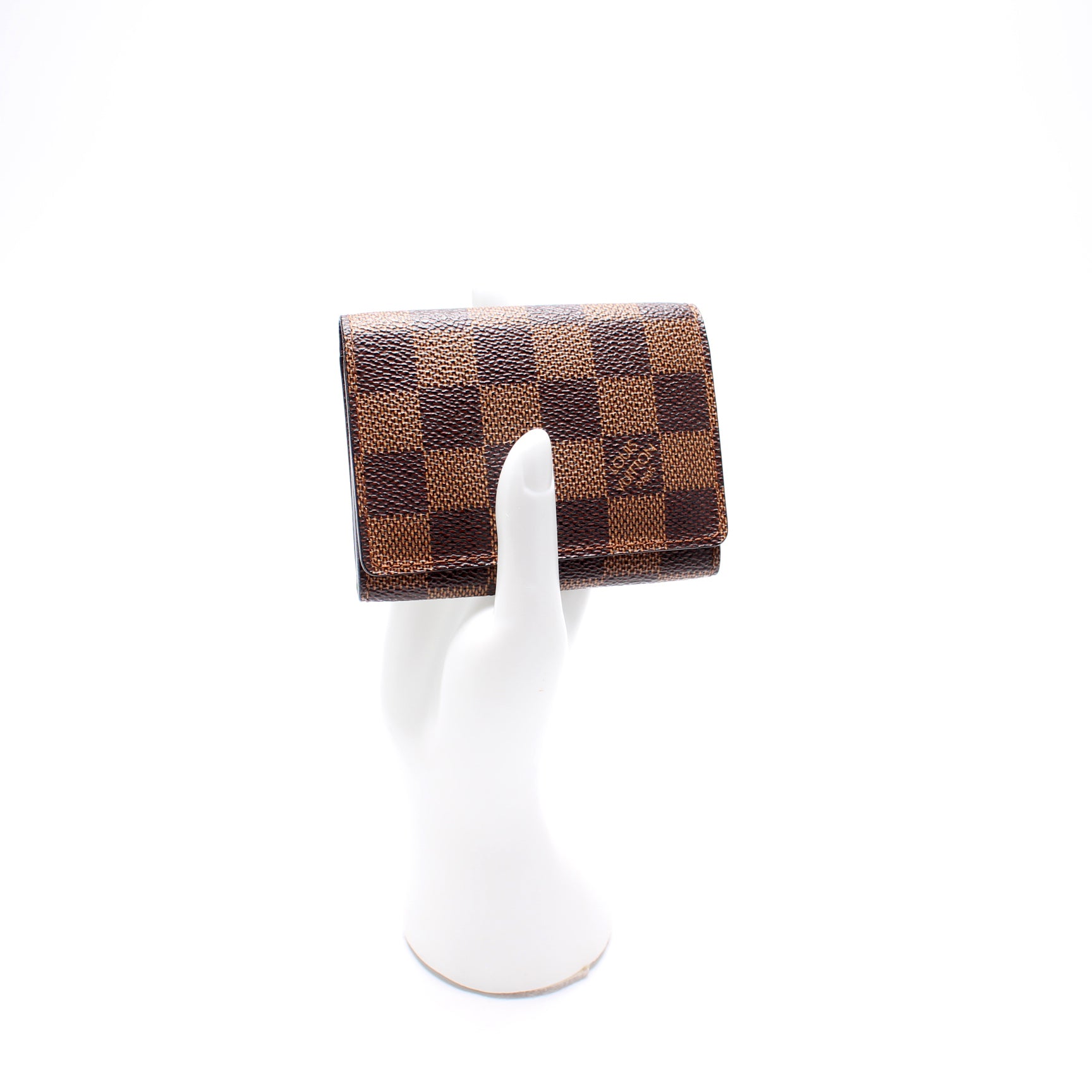 This pre-owned Louis Vuitton Business Card Holder is guaranteed 100% authentic. The exterior is in the classic Louis Vuitton Damier Ebene coated canvas.