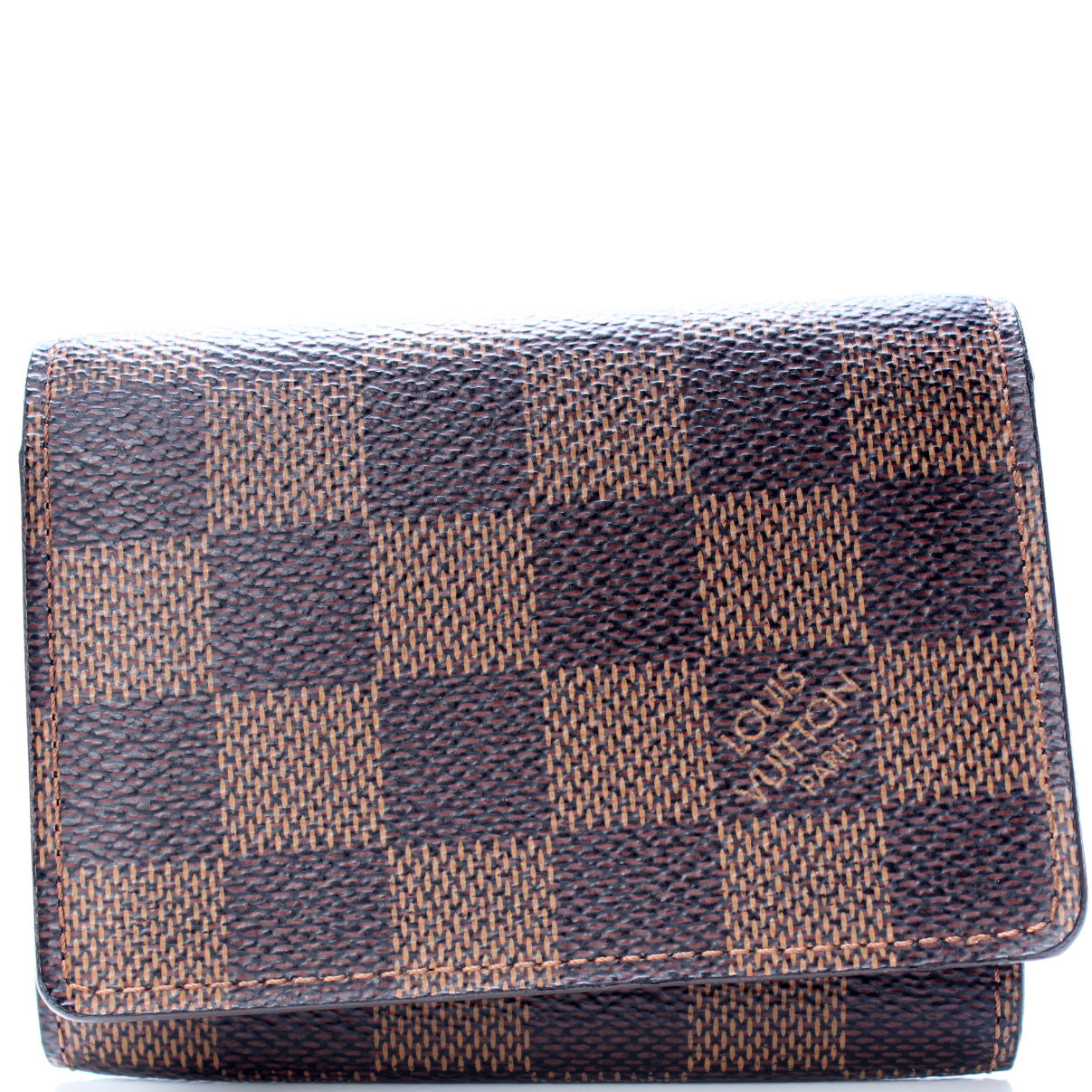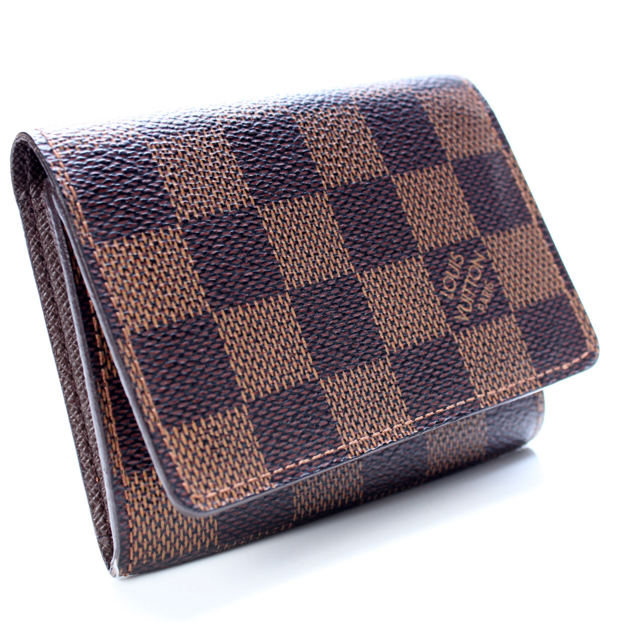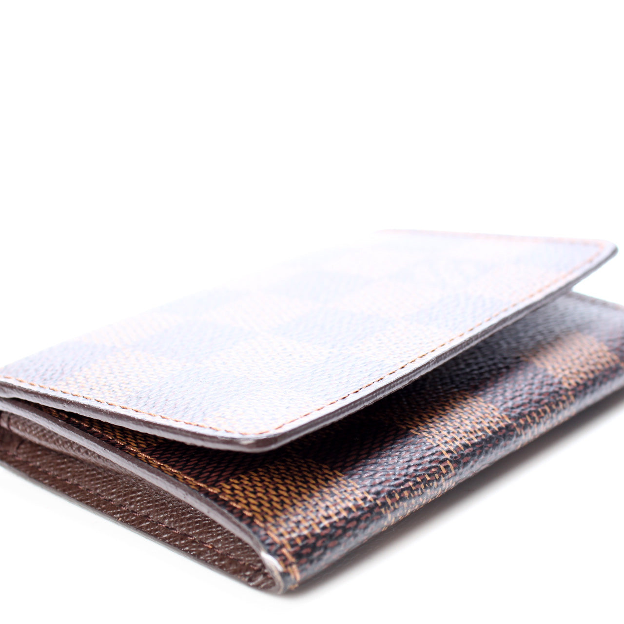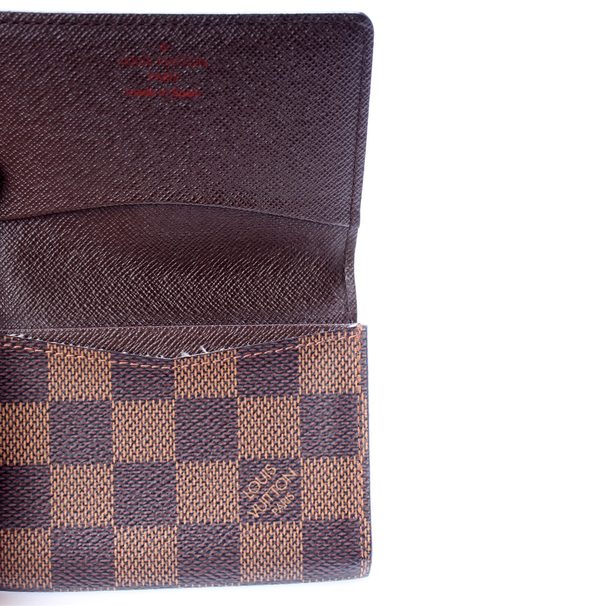 This pre-owned Louis Vuitton Business Card Holder is guaranteed 100% authentic. The exterior is in the classic Louis Vuitton Damier Ebene coated canvas.