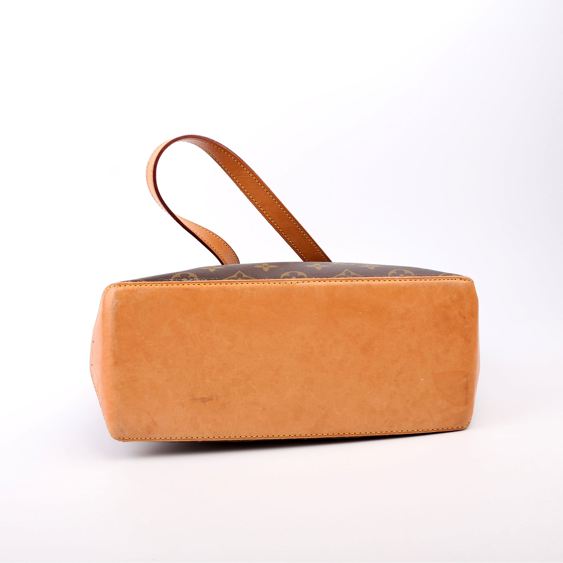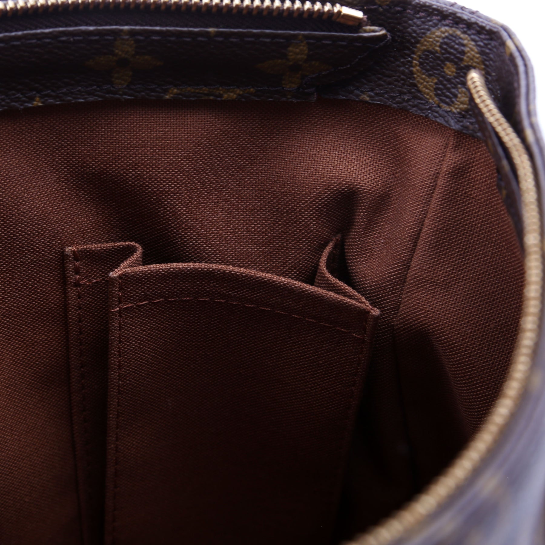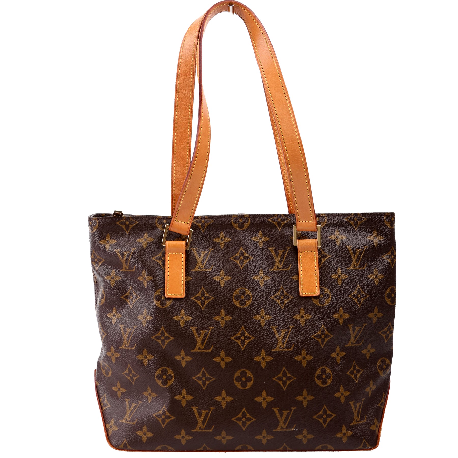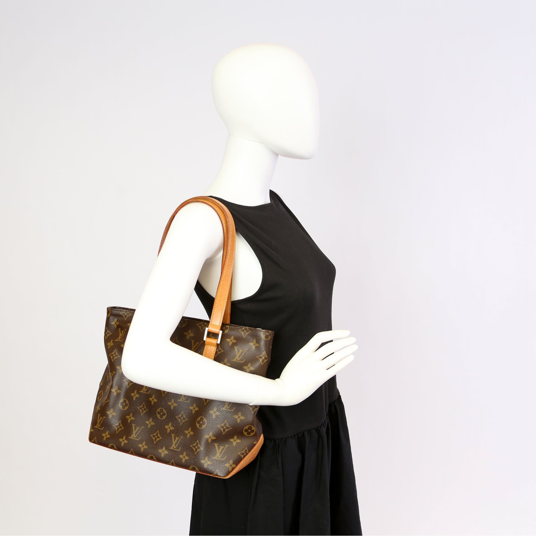 This pre-owned Louis Vuitton Cabas Piano is guaranteed 100% authentic. The exterior is in the classic Louis Vuitton Monogram coated canvas.