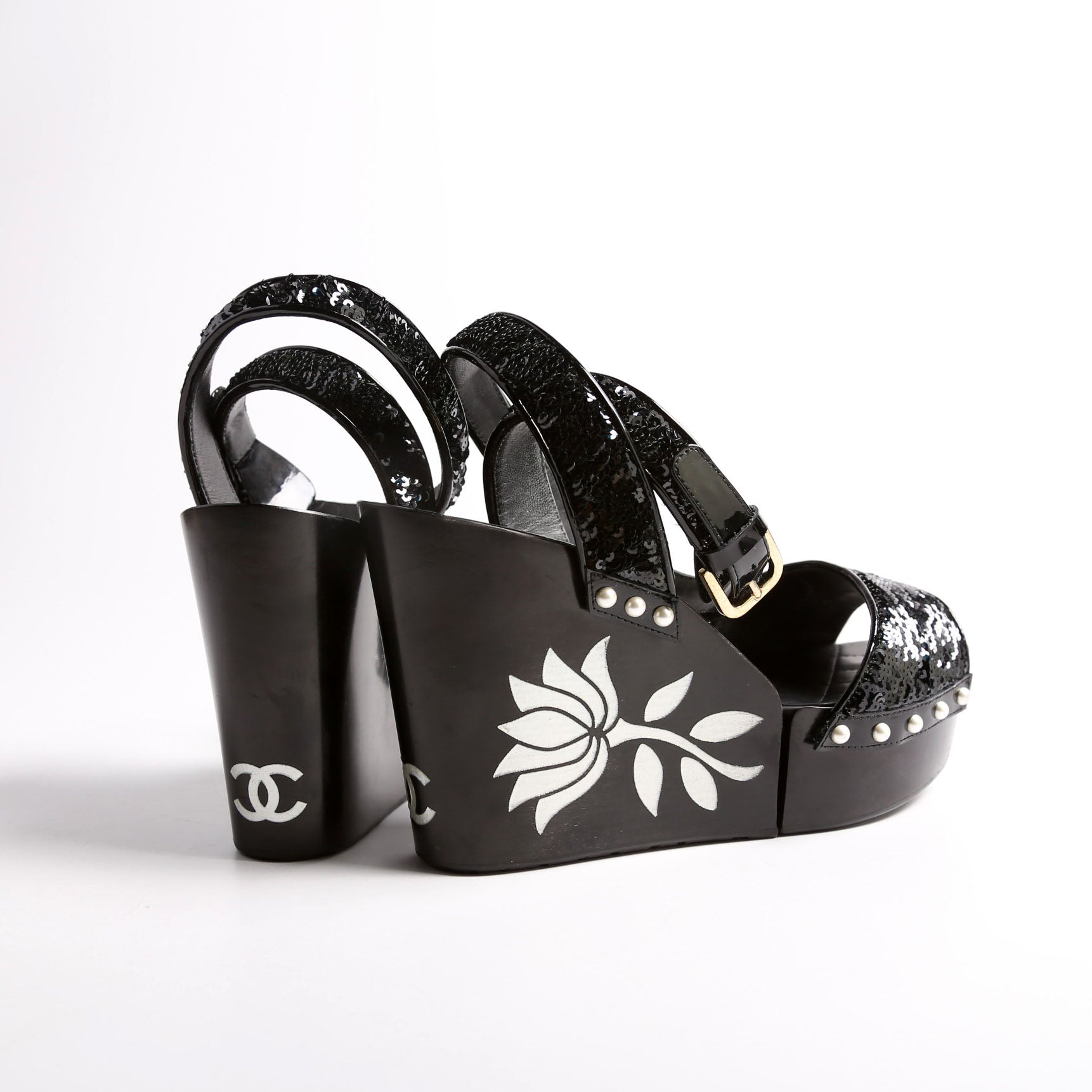 These pre-owned Chanel Flower Hinged Wedges are guaranteed 100% authentic.