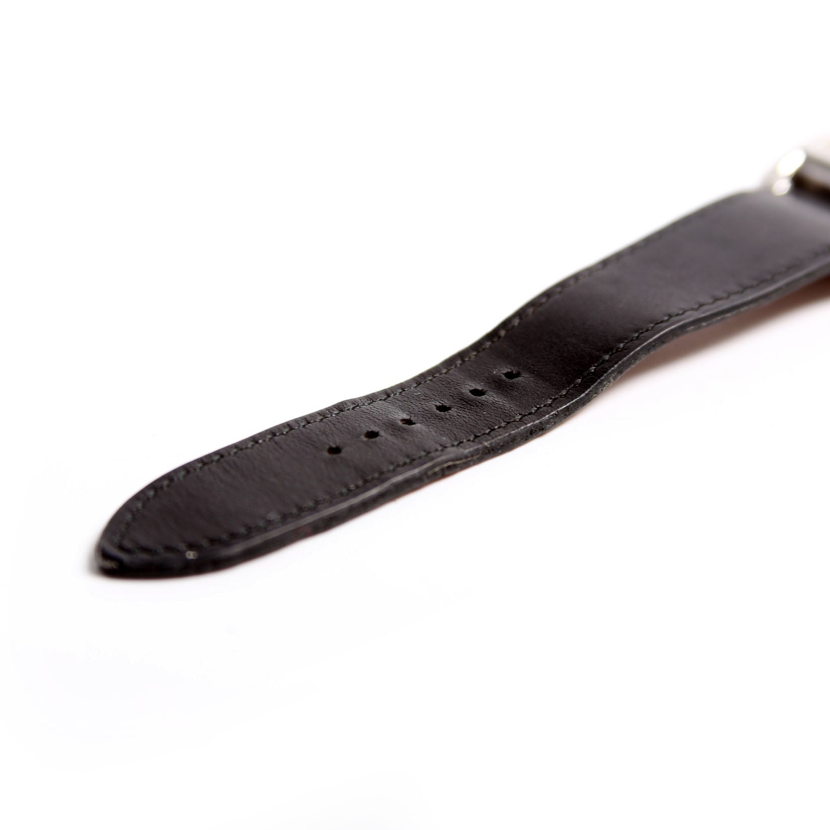 Exterior: The exterior shows light scratches throughout. The leather strap shows wear.