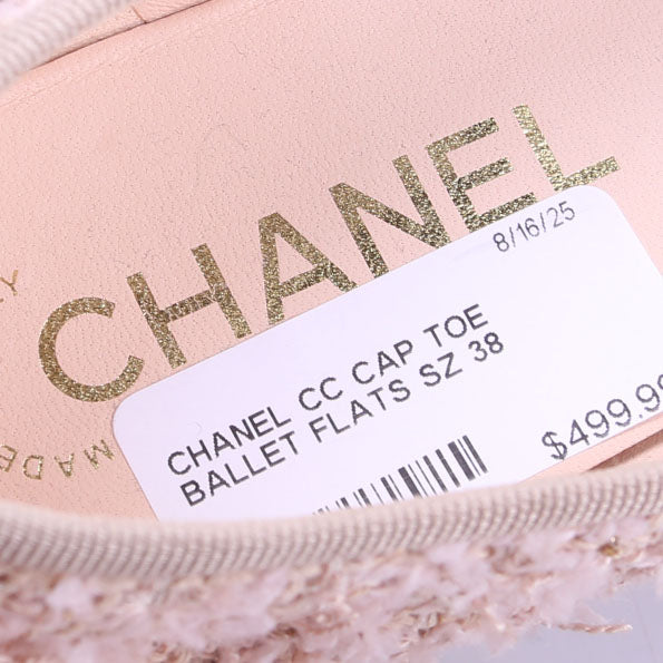 These pre-owned Chanel CC Cap Toe Ballet Flats are guaranteed 100% authentic.