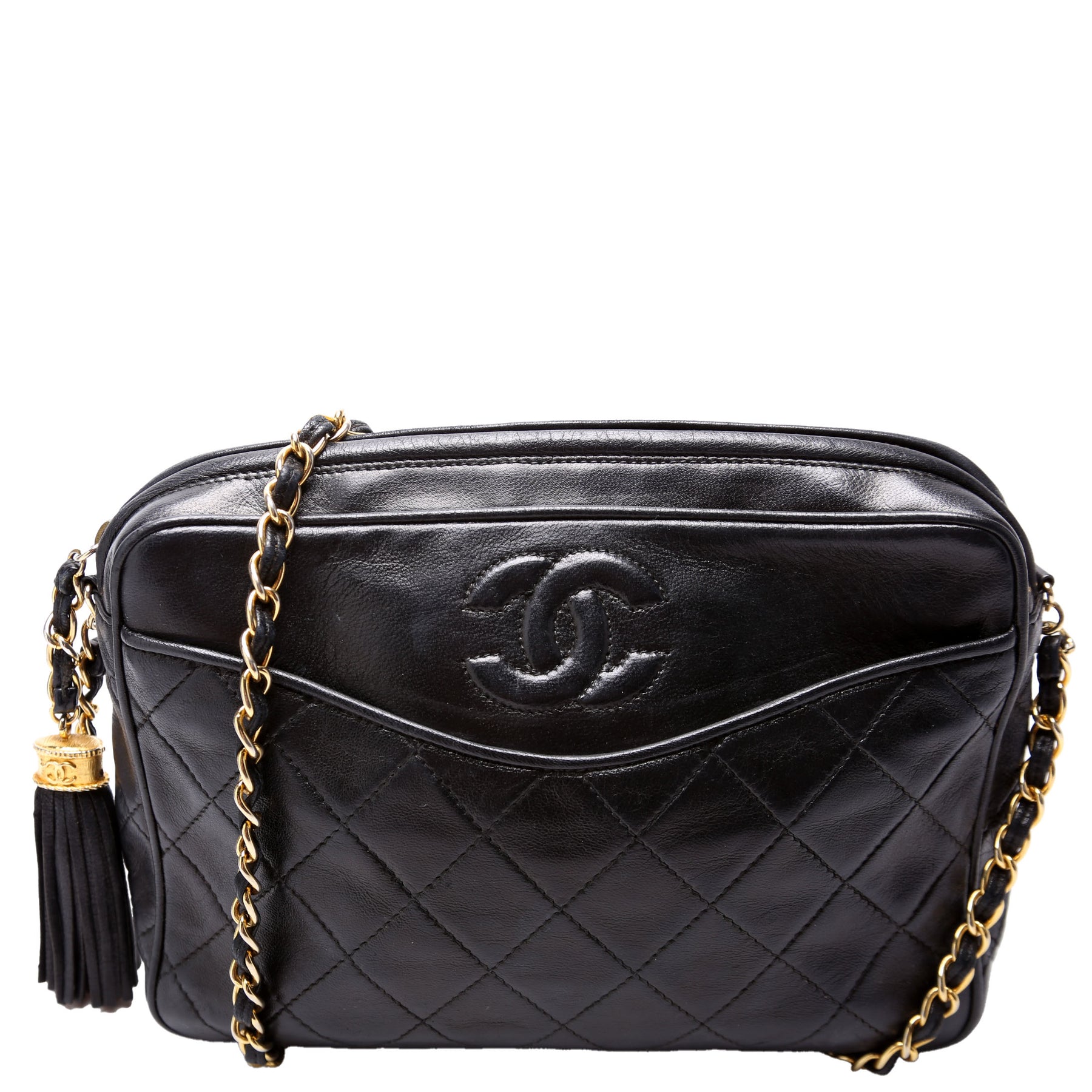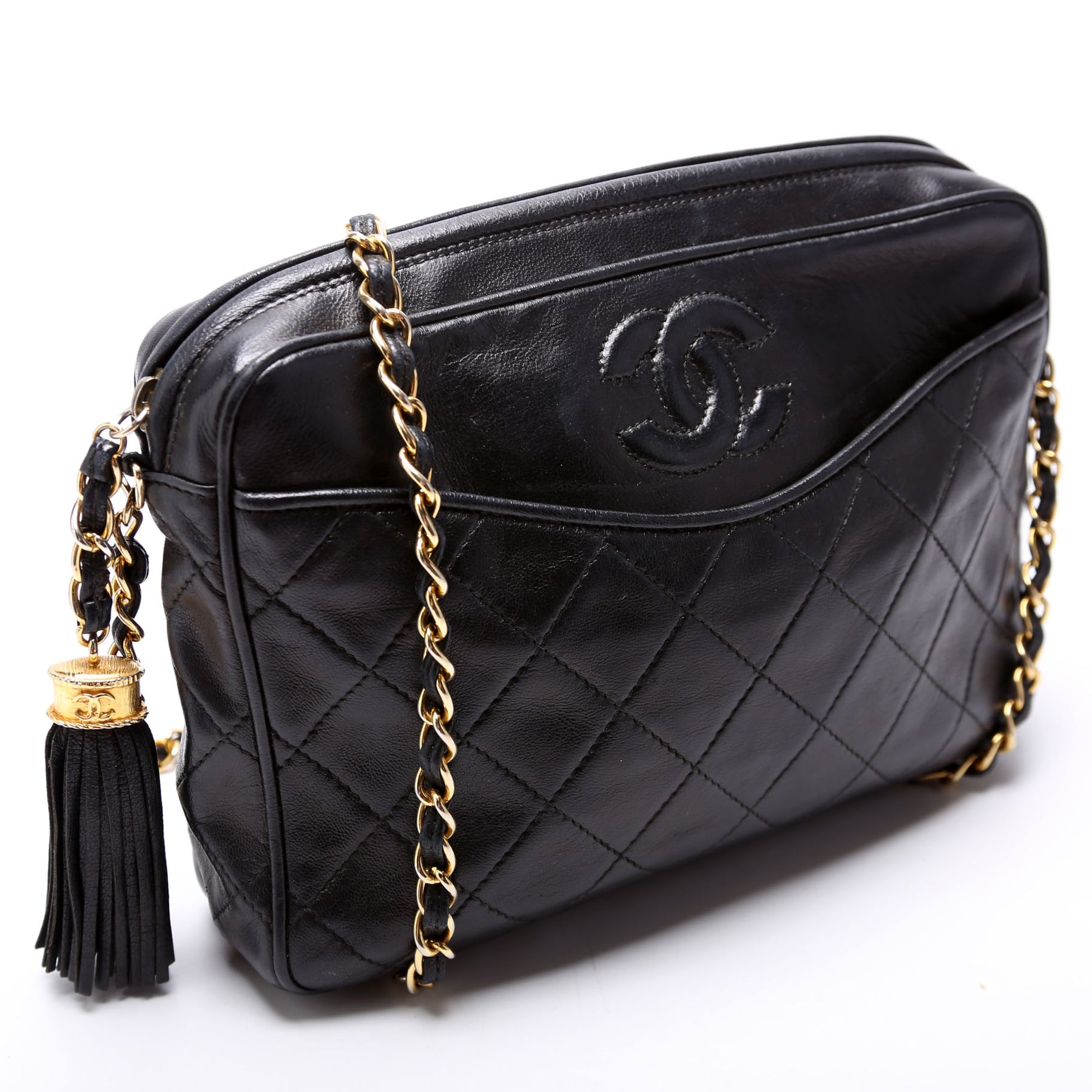 This pre-owned Chanel CC Front Pocket Tassel Camera BAG Vintage is guaranteed 100% authentic.