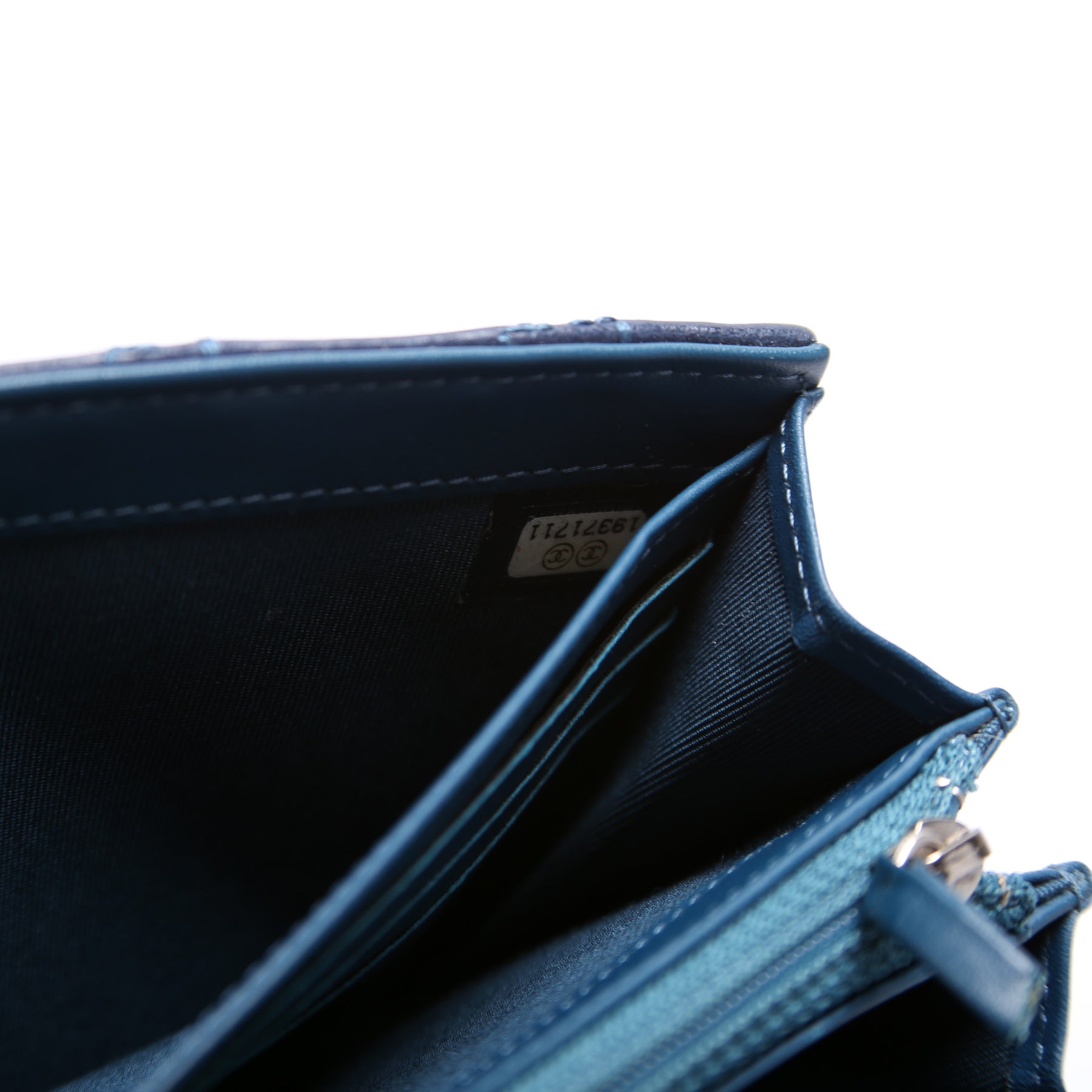 This pre-owned Chanel CC Long Flap Wallet Wild Stitch 19M is guaranteed 100% authentic.