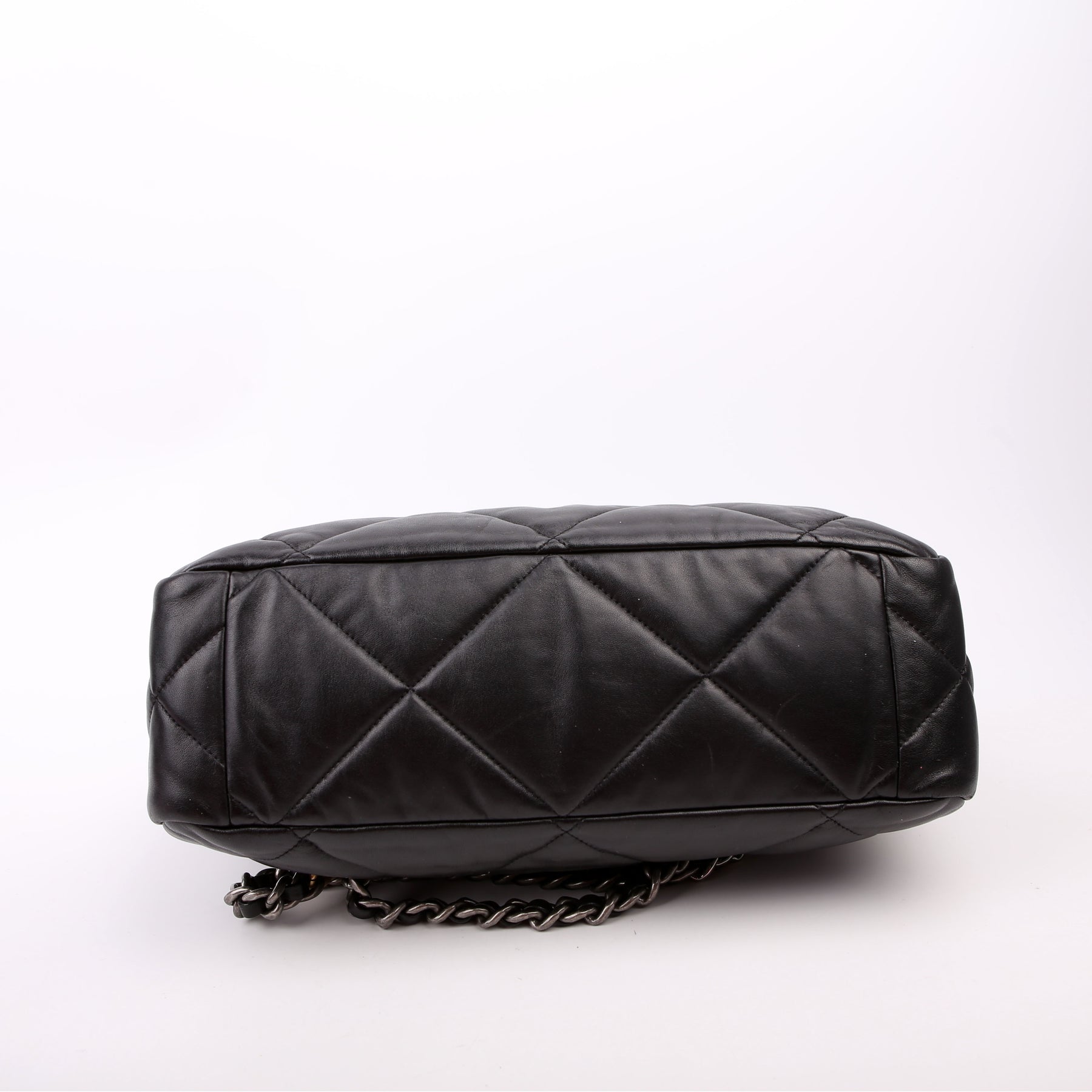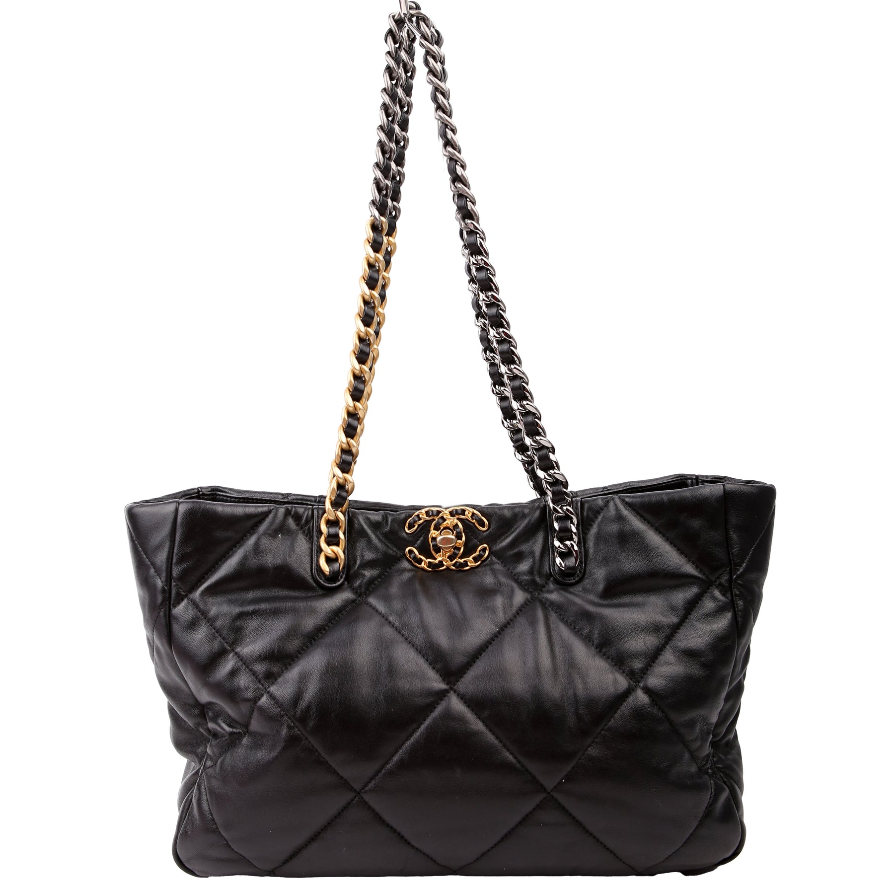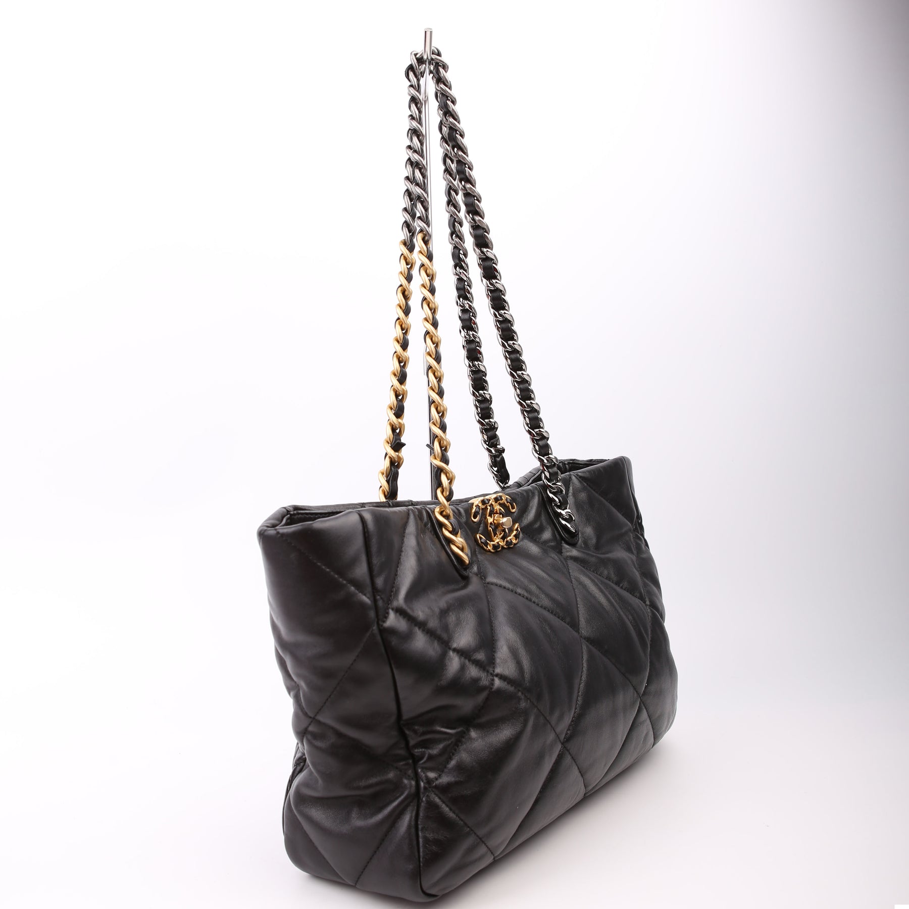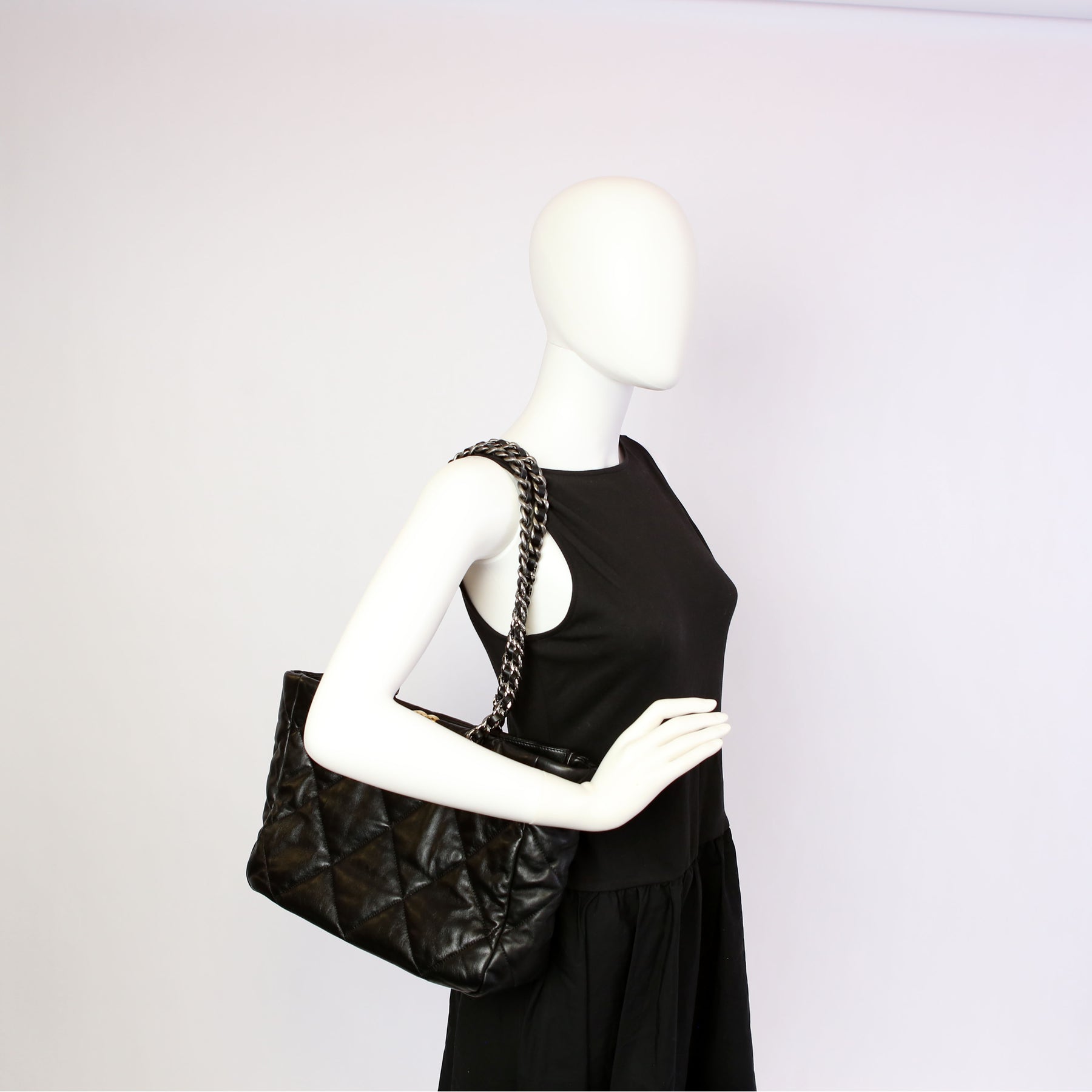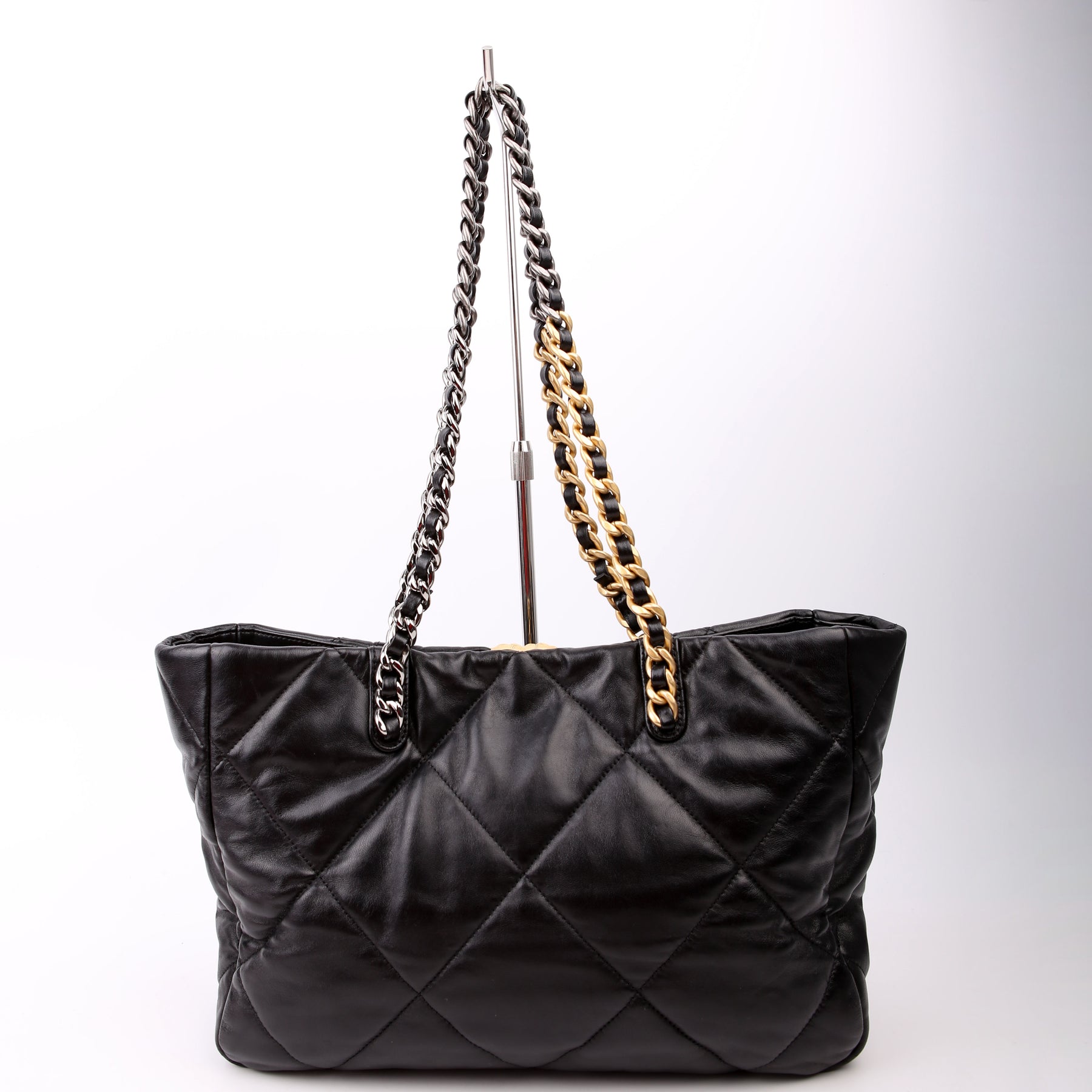 Chanel 19 Quilted Goatskin E/W Shopping Tote Black