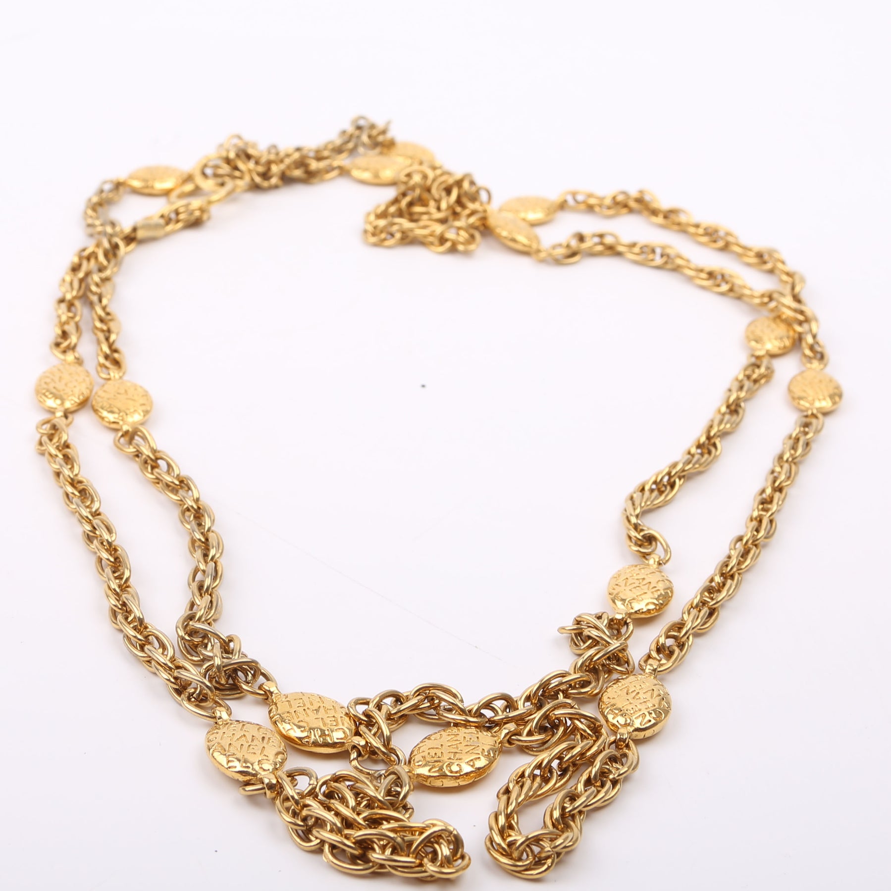 Chanel Logo Long Wrap Vintage Necklace Gold