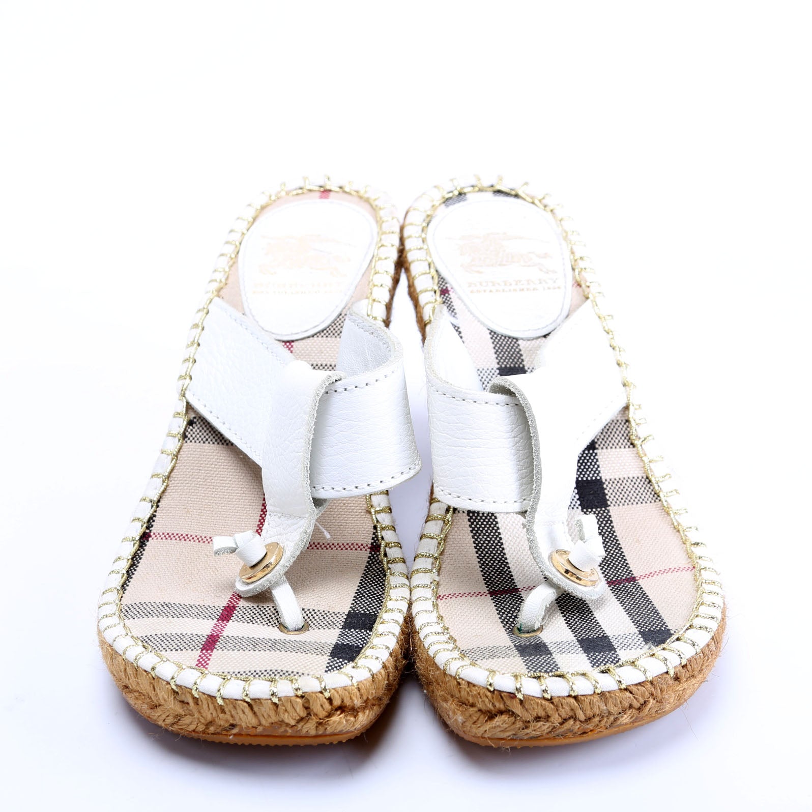 These pre-owned Burberry Check/Leather Espadrille Wedges are guaranteed 100% authentic.