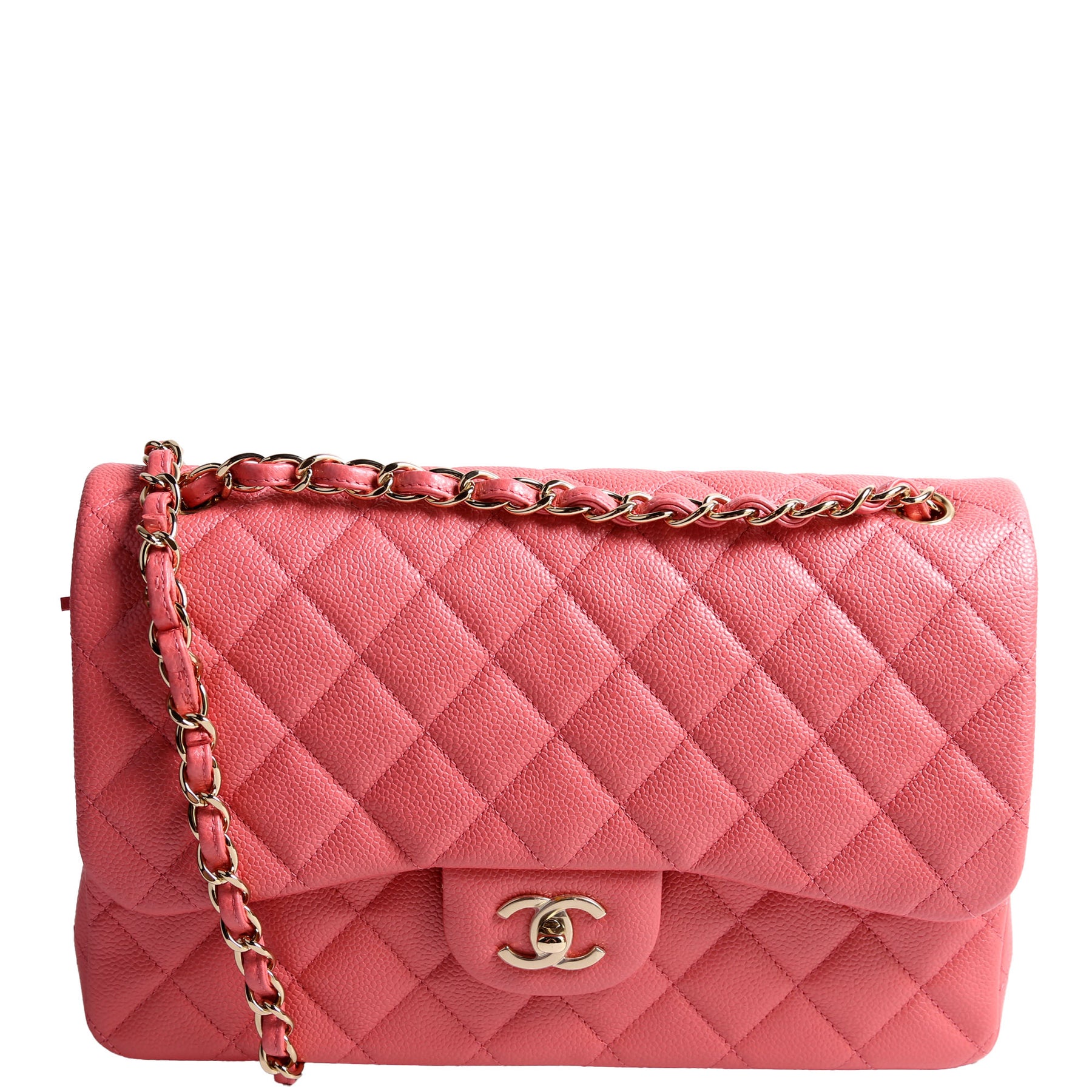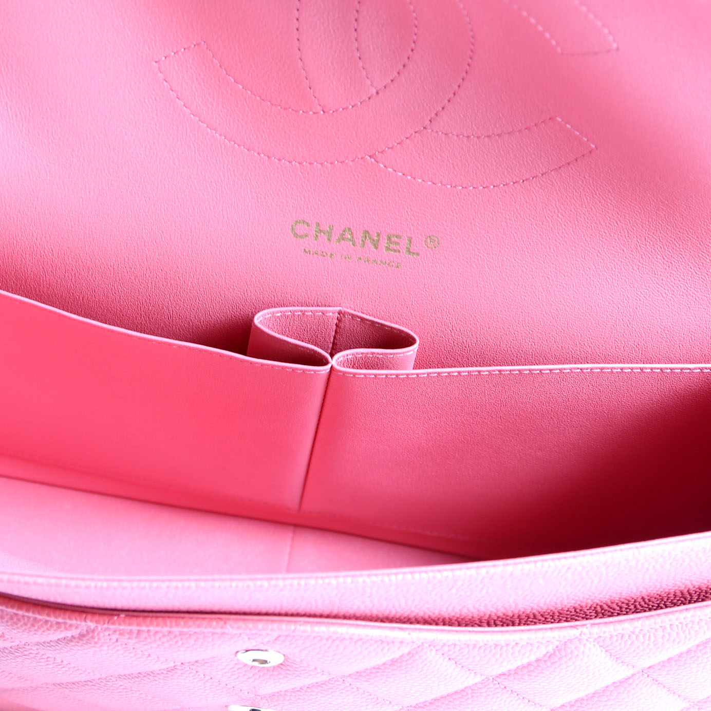 This pre-owned Chanel Classic Flap Jumbo is guaranteed 100% authentic. The exterior is in the classic Chanel Caviar Leather.