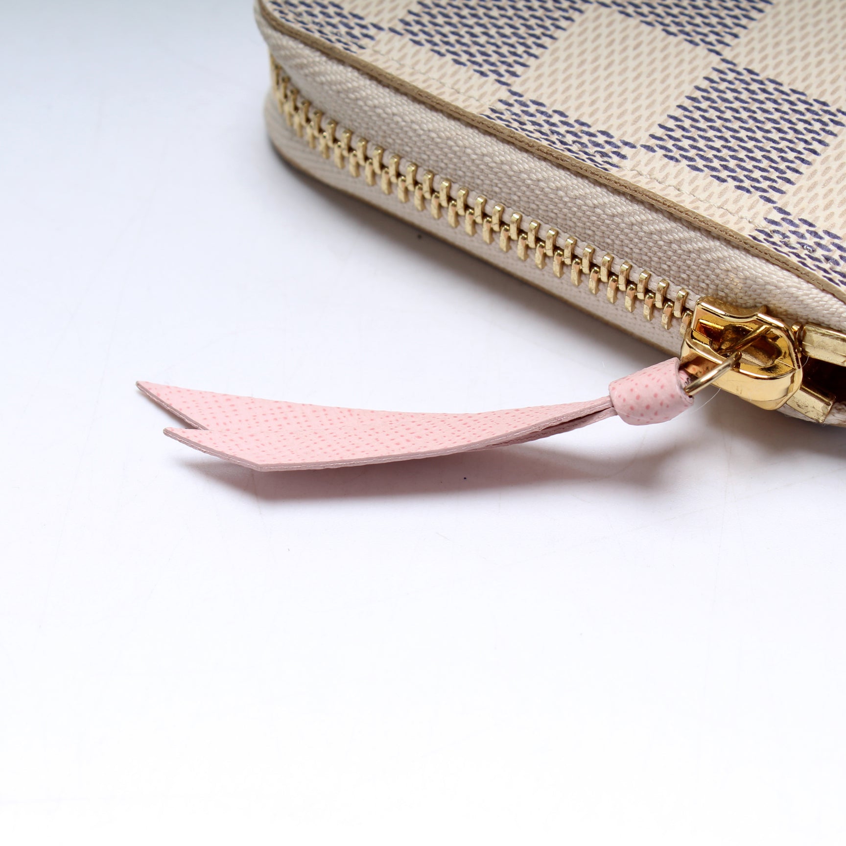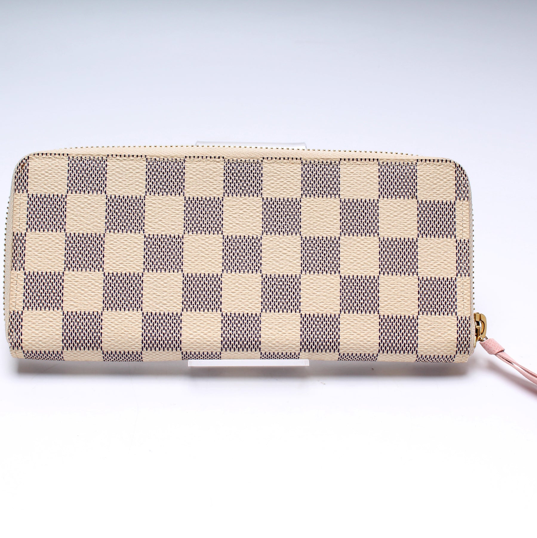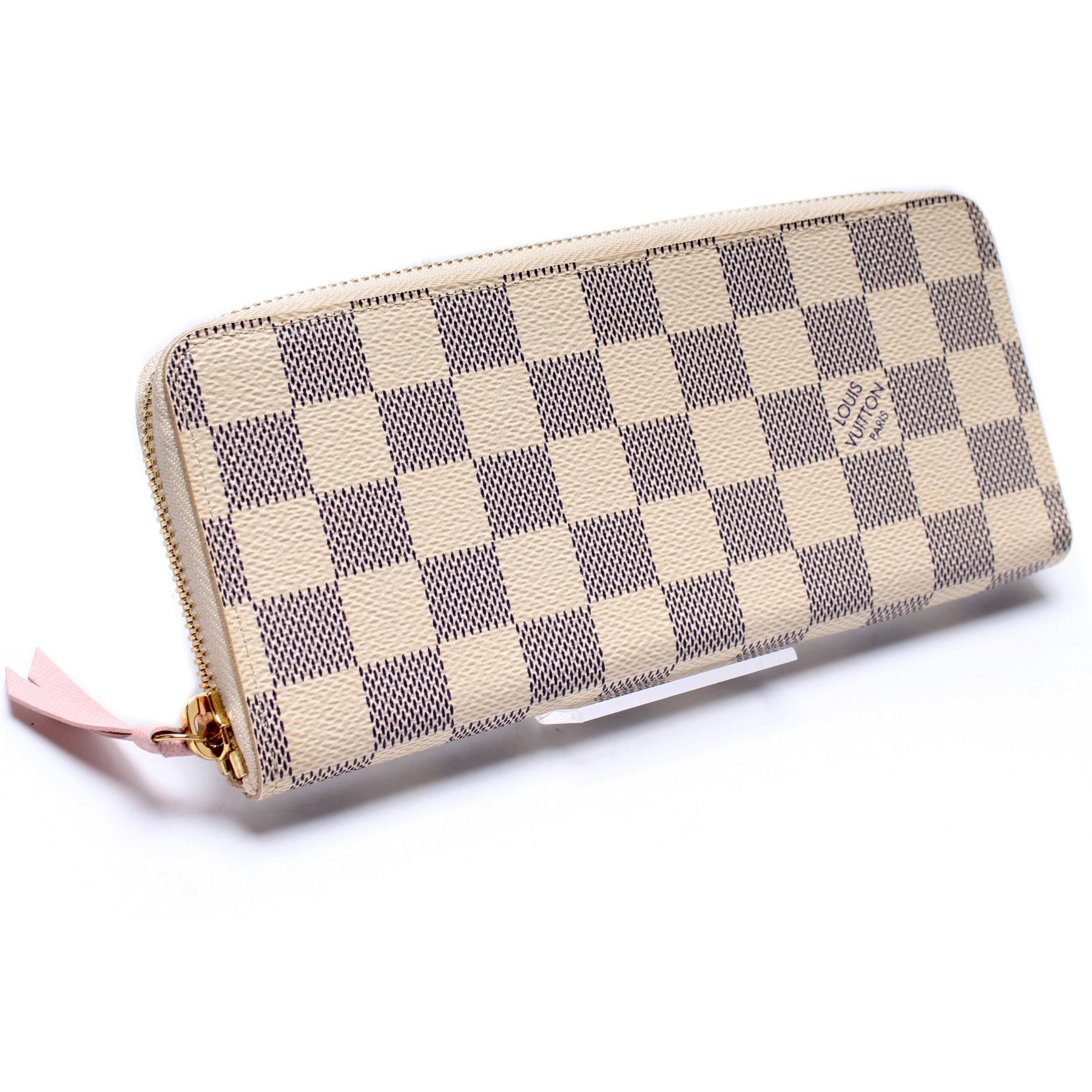 This pre-owned Louis Vuitton Clemence Wallet is guaranteed 100% authentic. The exterior is in the classic Louis Vuitton Damier Azur coated canvas.