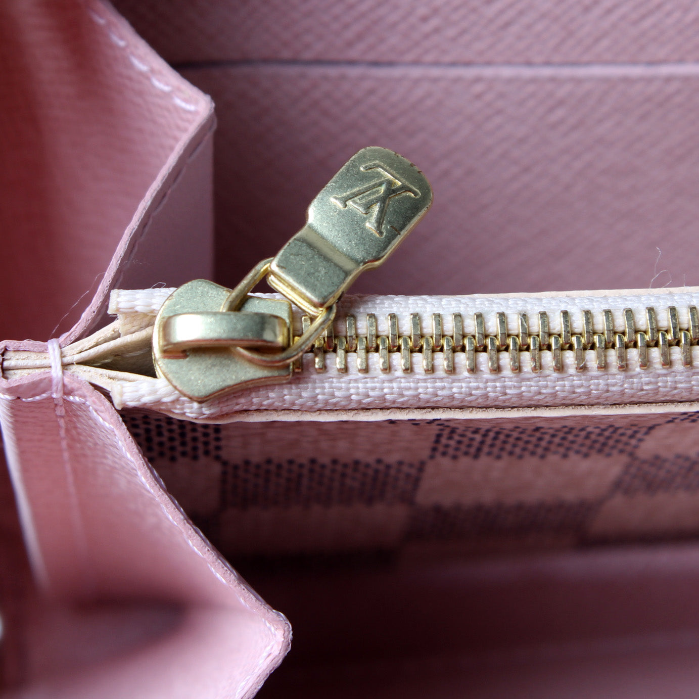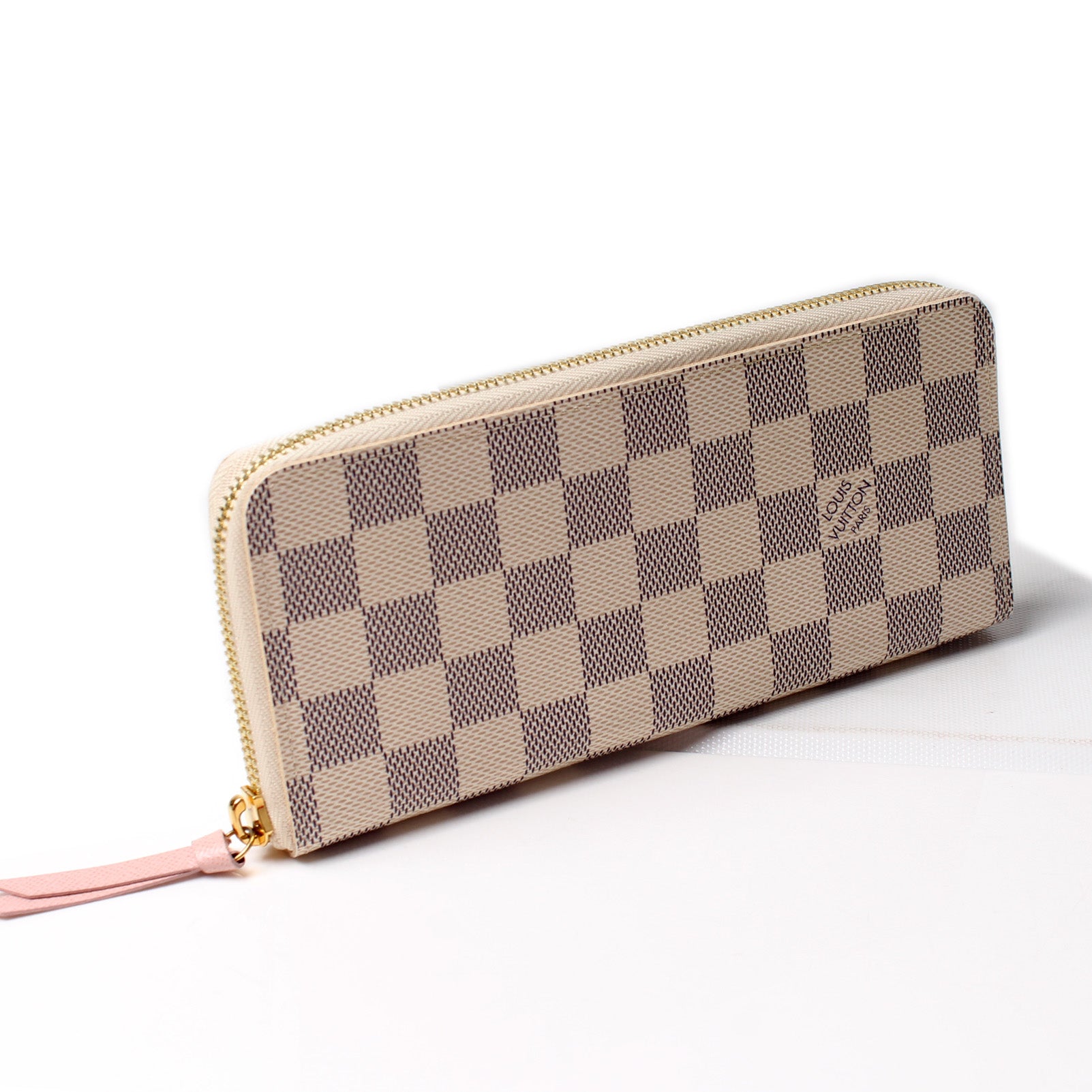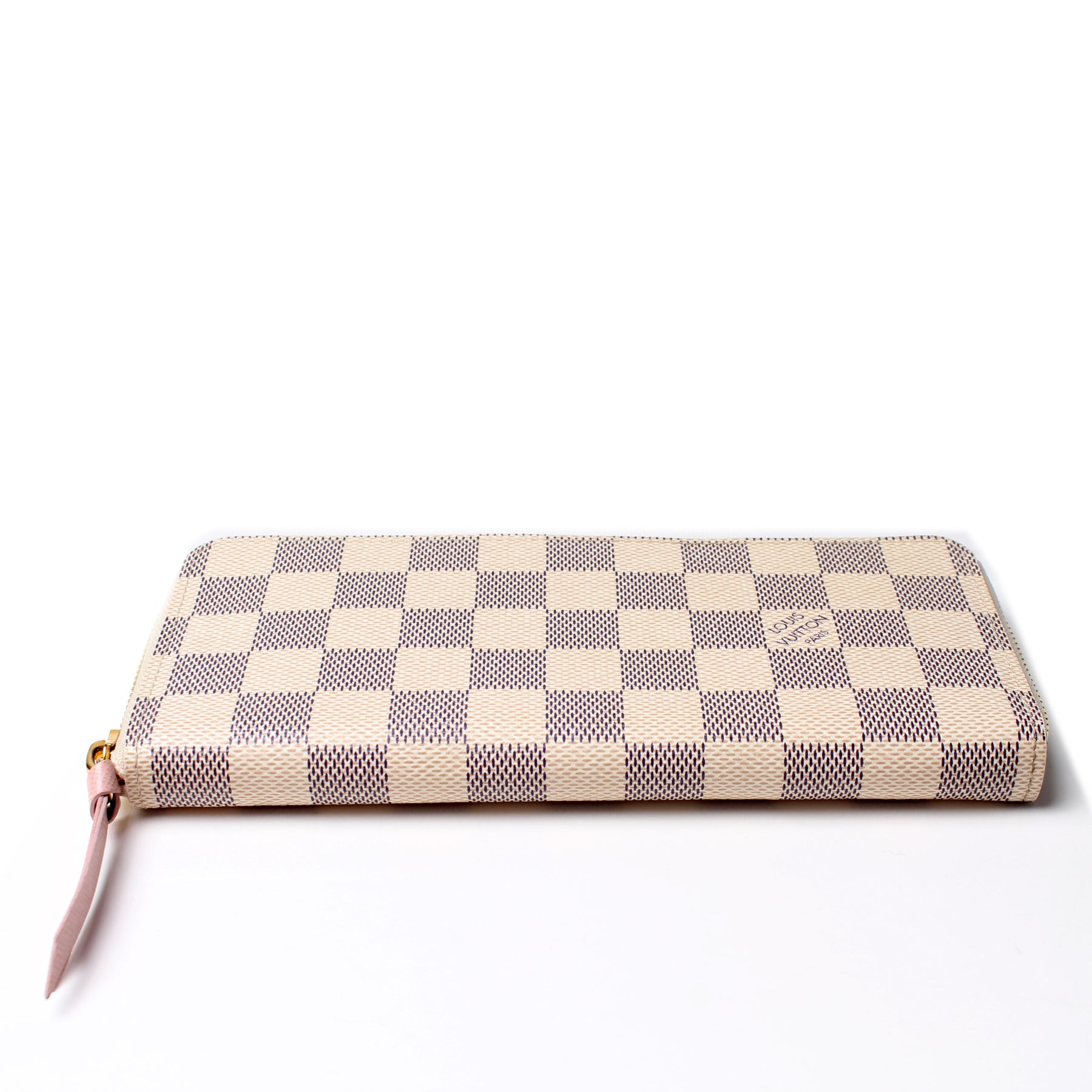 This pre-owned Louis Vuitton Clemence Wallet is guaranteed 100% authentic. The exterior is in the classic Louis Vuitton Damier Azur coated canvas.