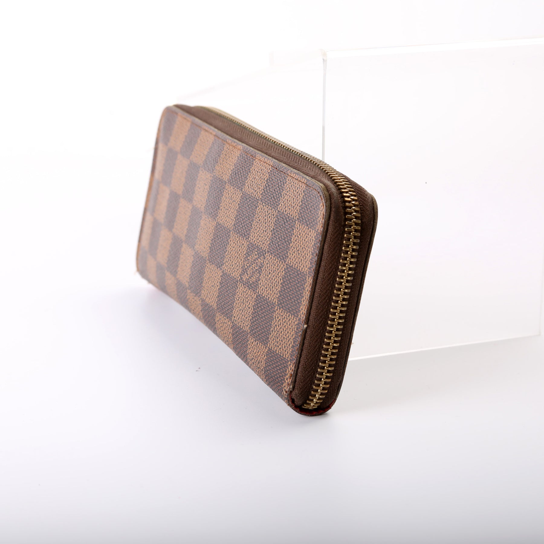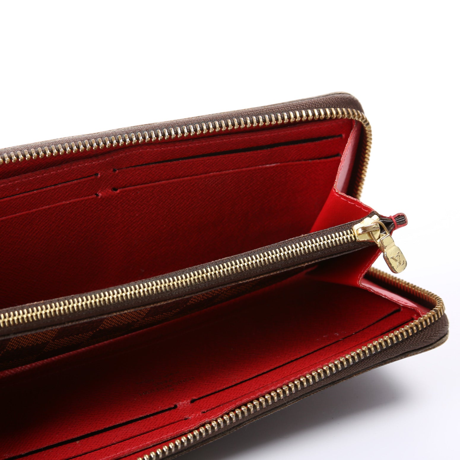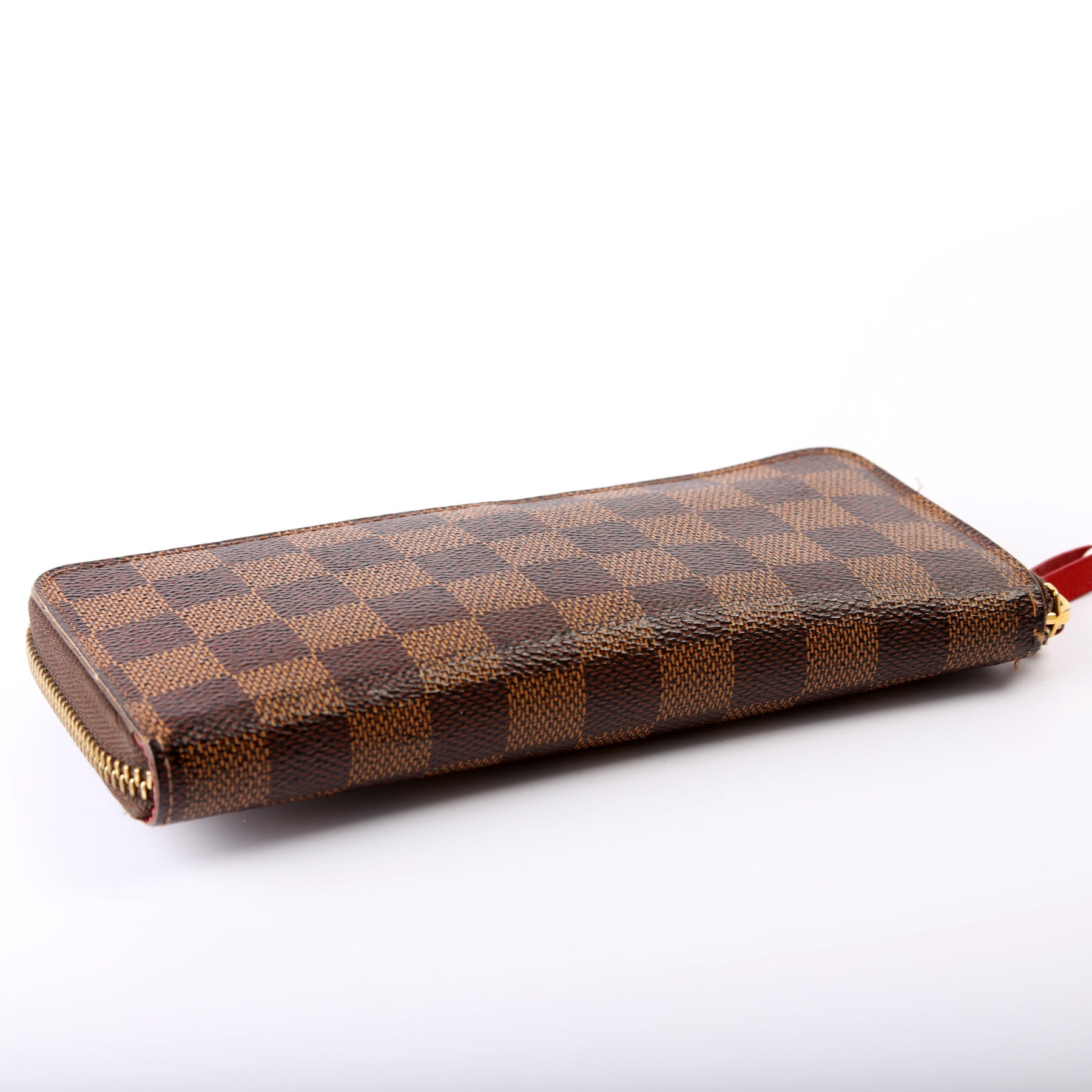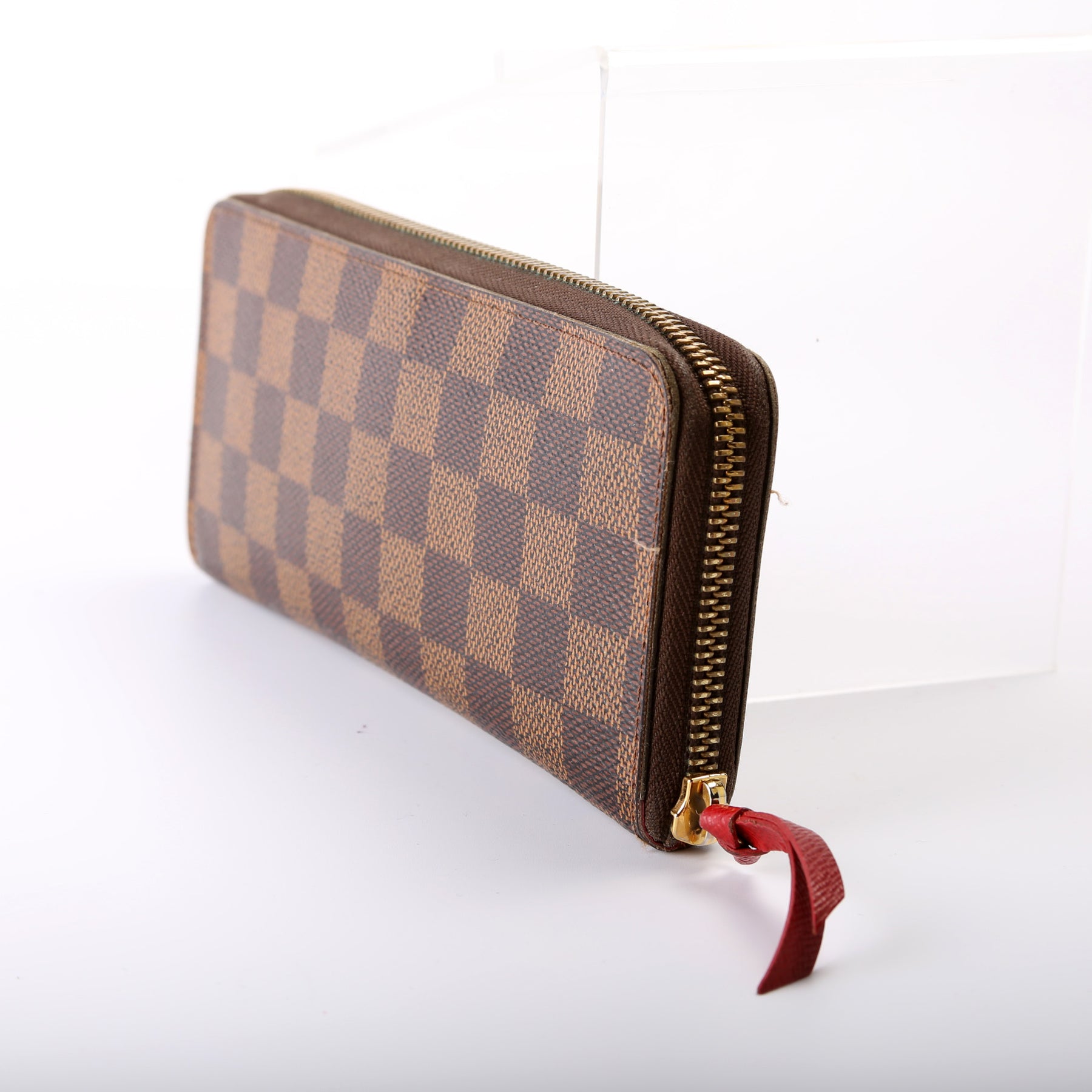 This pre-owned Louis Vuitton Clemence Wallet is guaranteed 100% authentic. The exterior is in the classic Louis Vuitton Damier Ebene coated canvas.