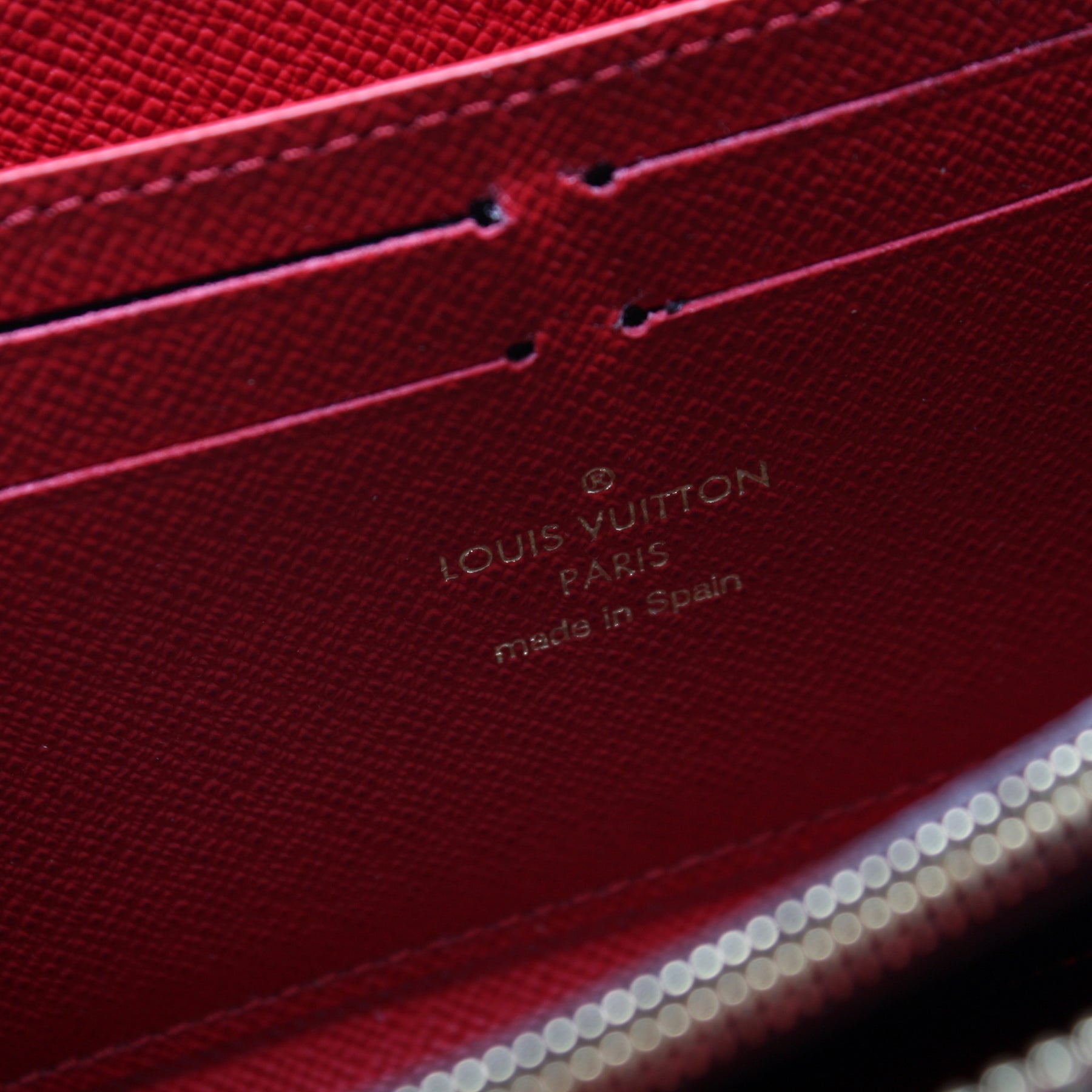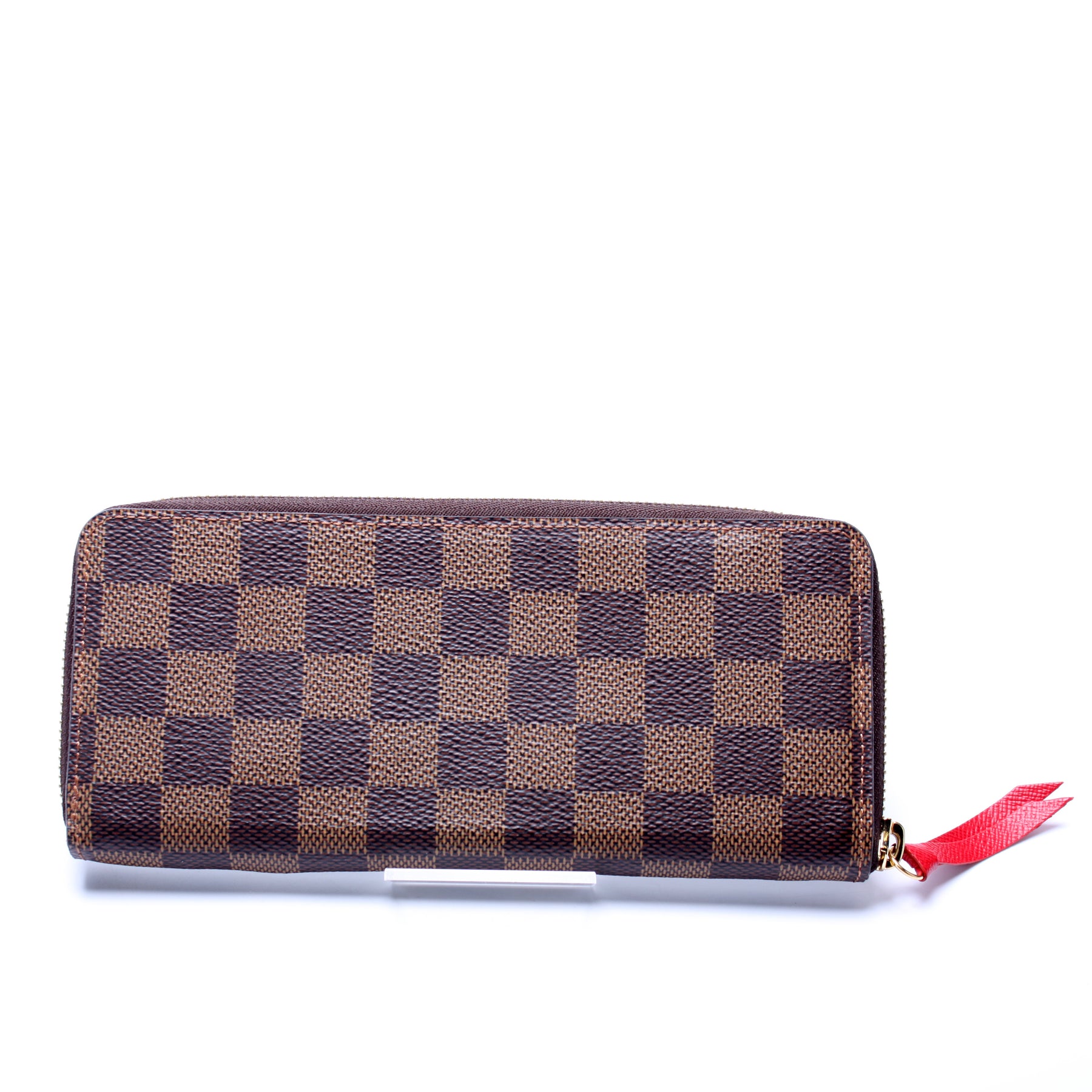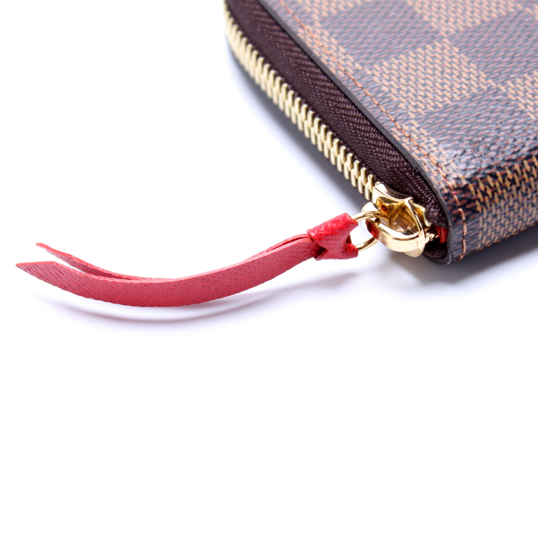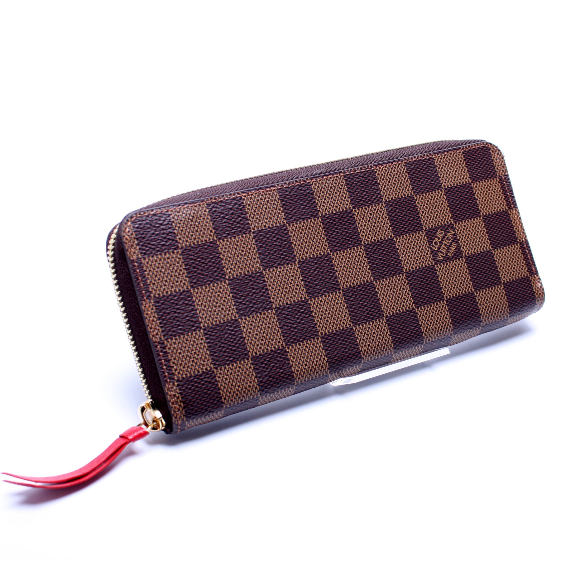 This pre-owned Louis Vuitton Clemence Wallet is guaranteed 100% authentic. The exterior is in the classic Louis Vuitton Damier Ebene coated canvas.