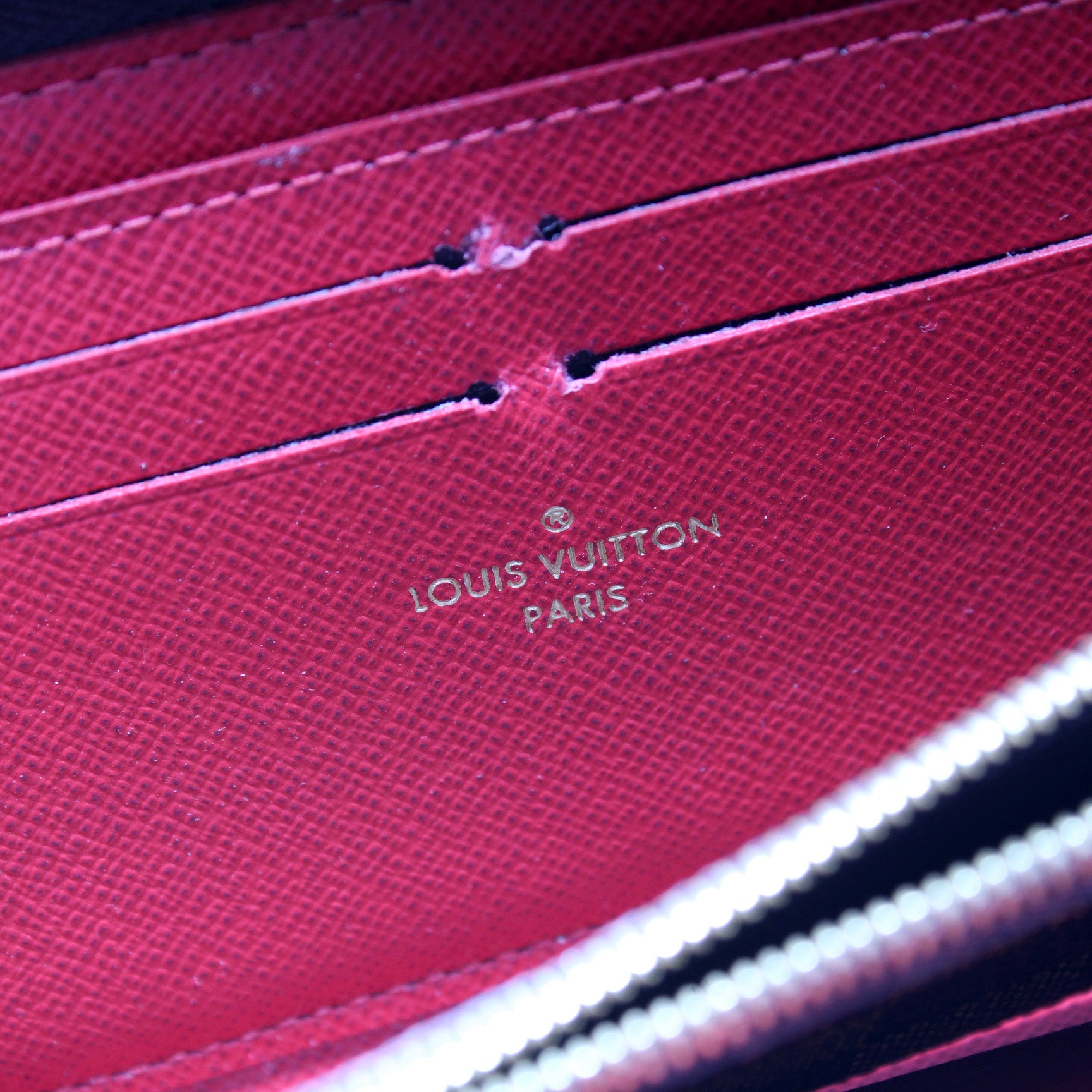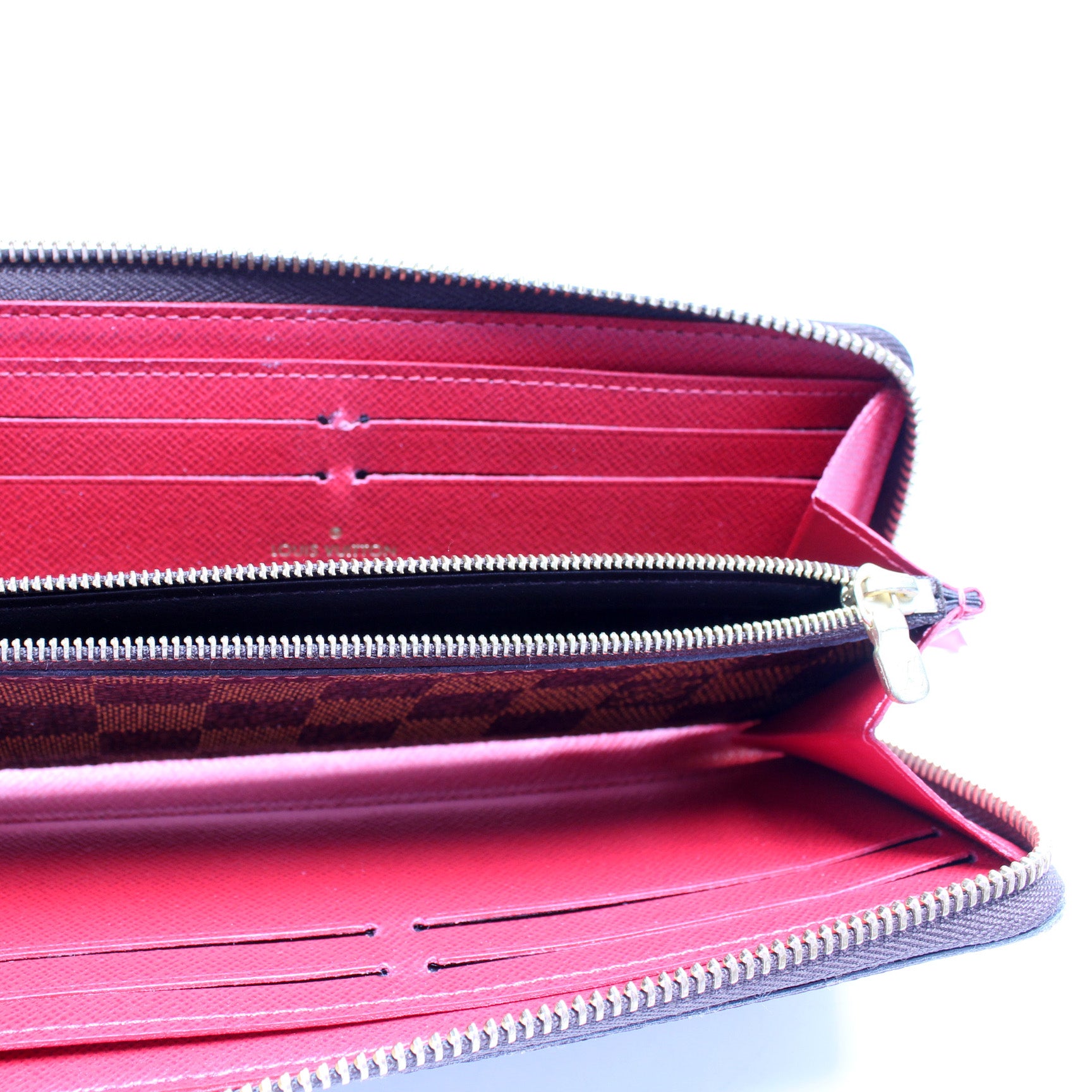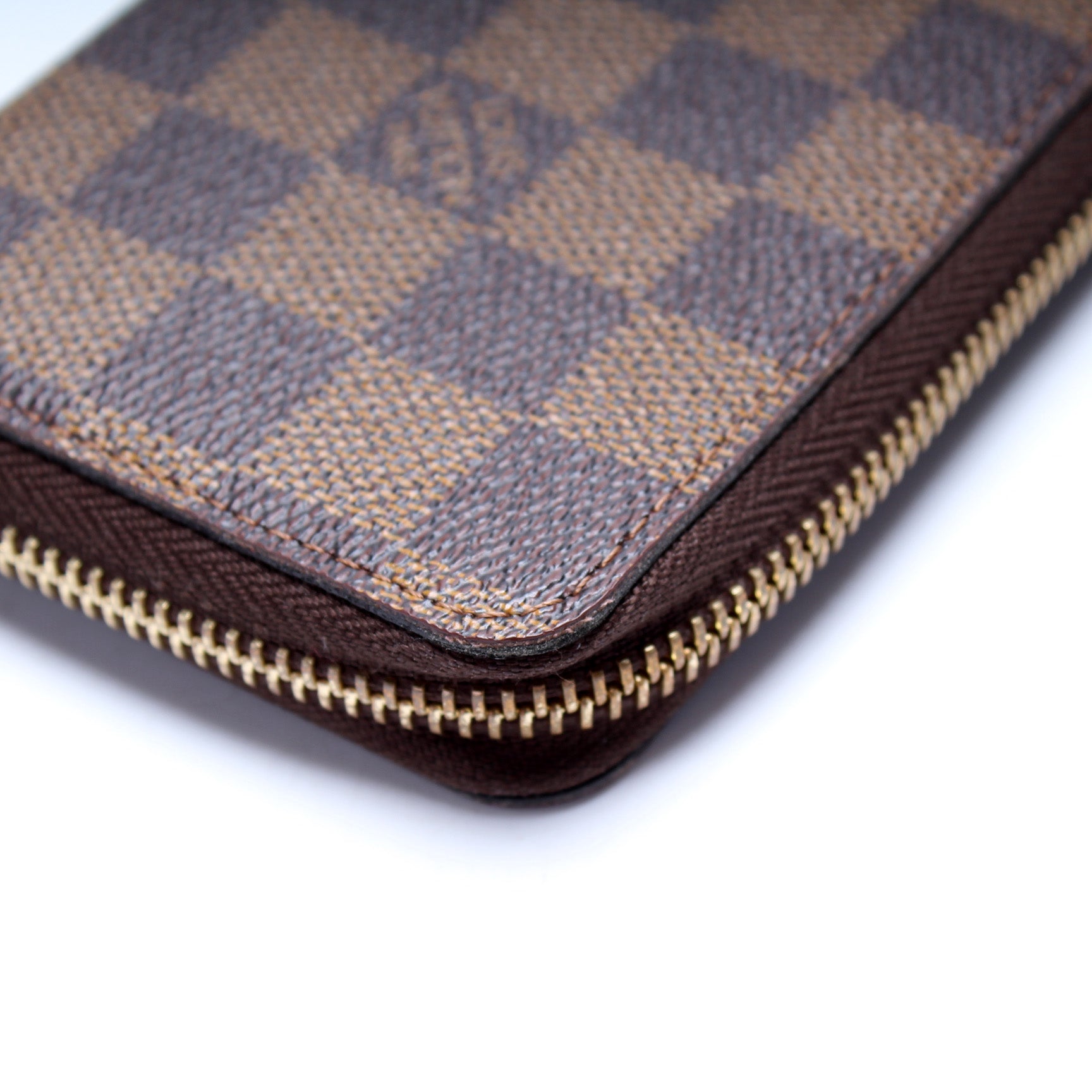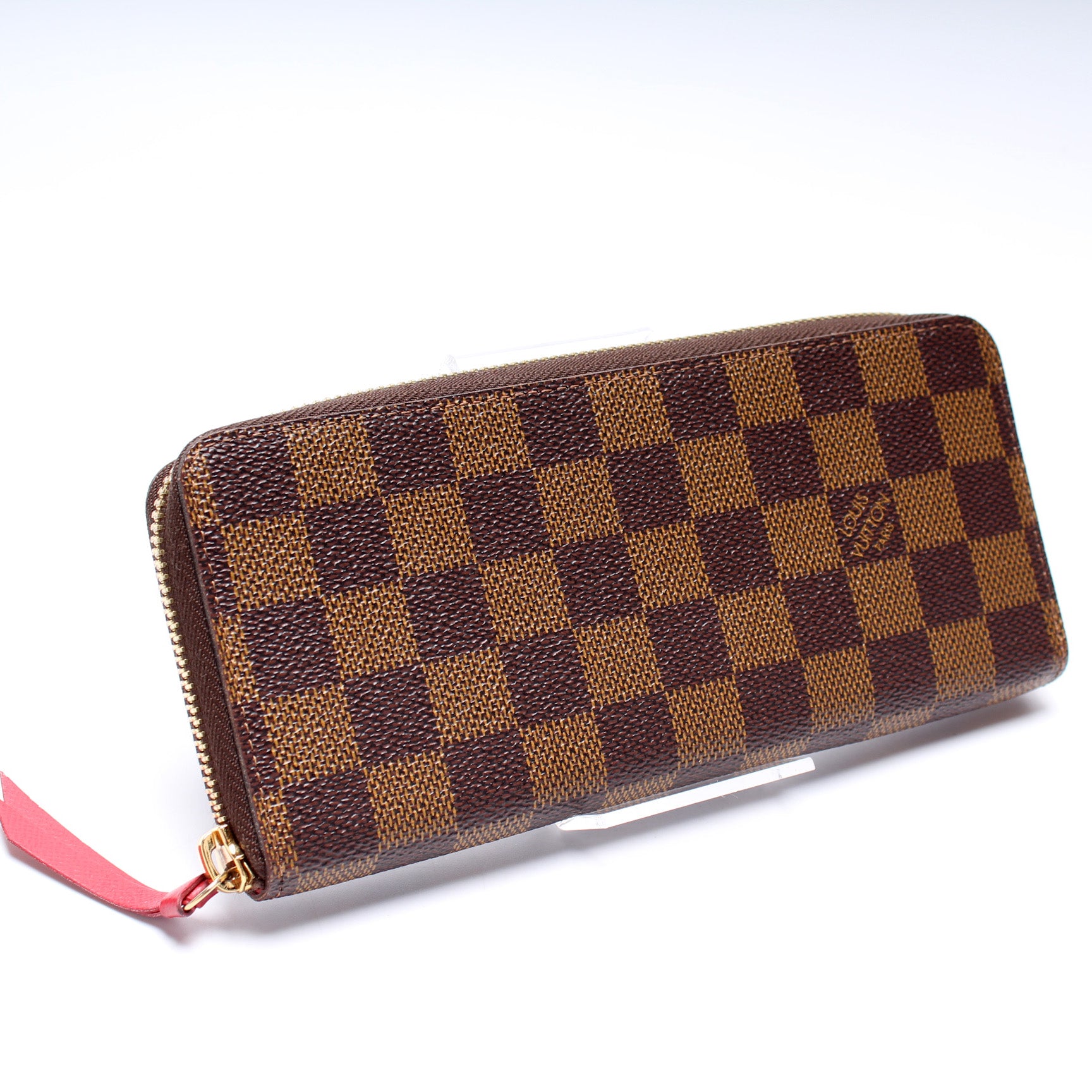 This pre-owned Louis Vuitton Clemence Wallet is guaranteed 100% authentic. The exterior is in the classic Louis Vuitton Damier Ebene coated canvas.