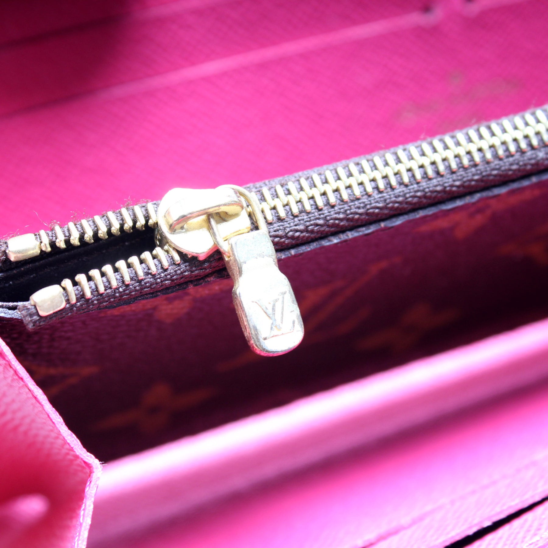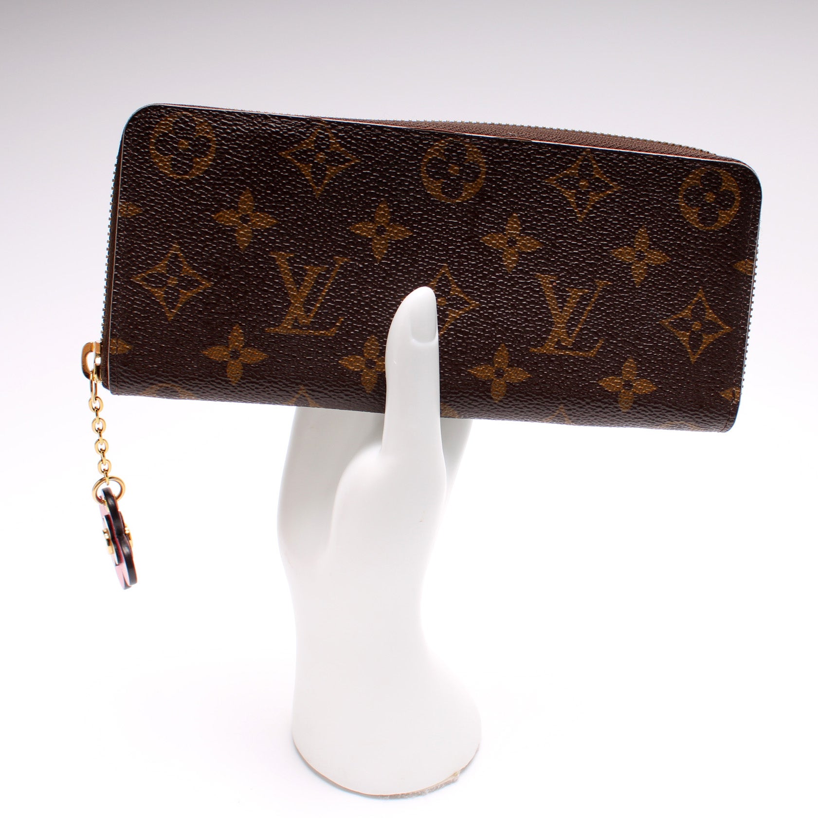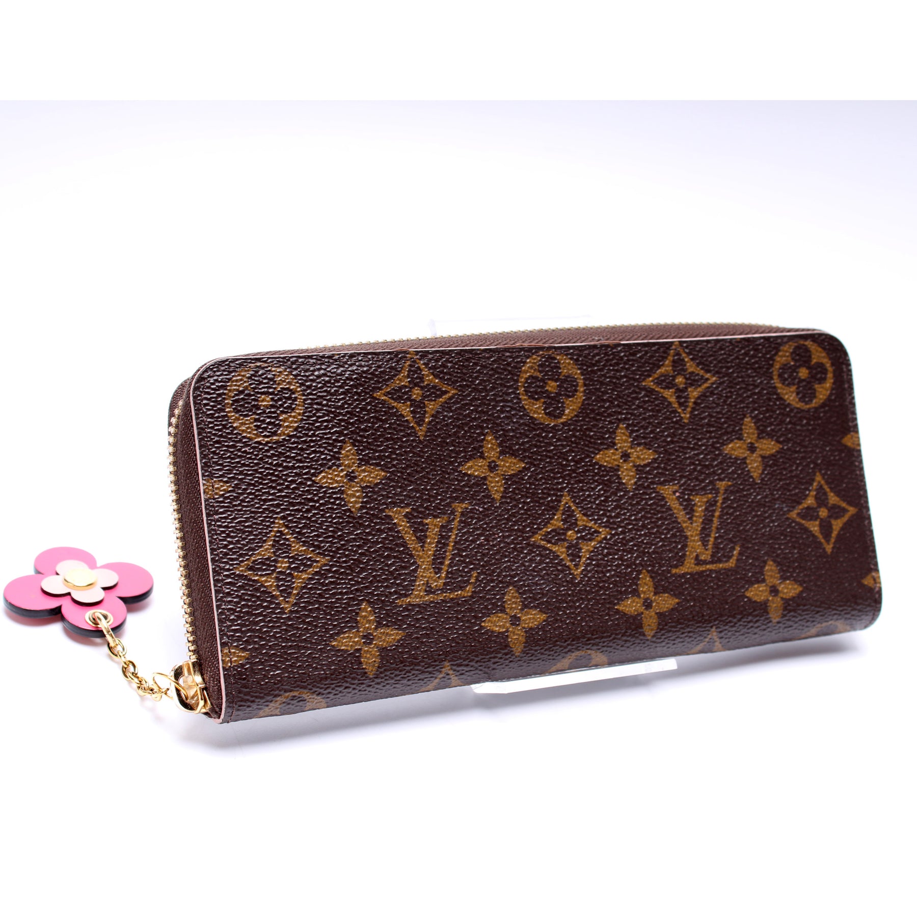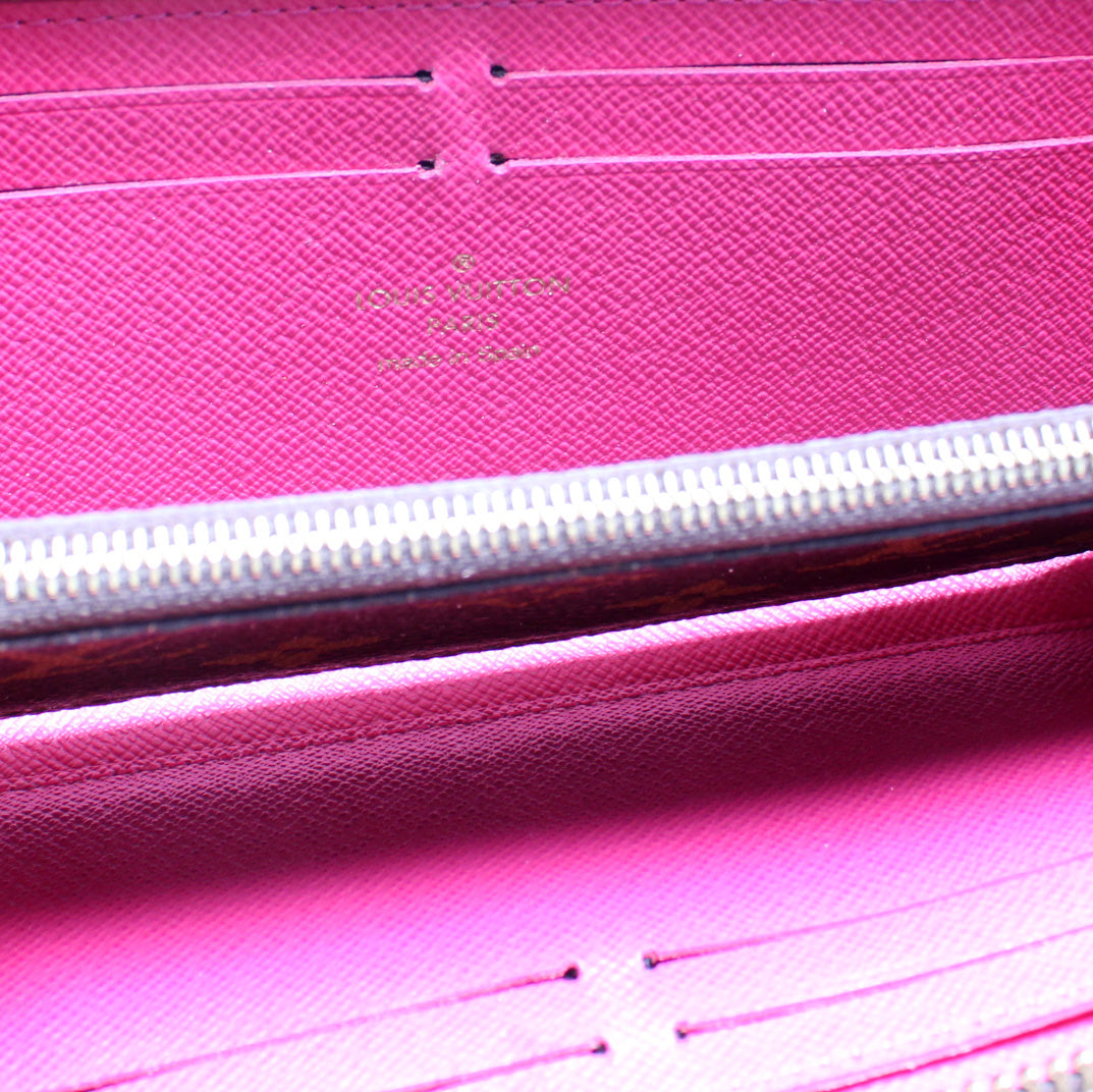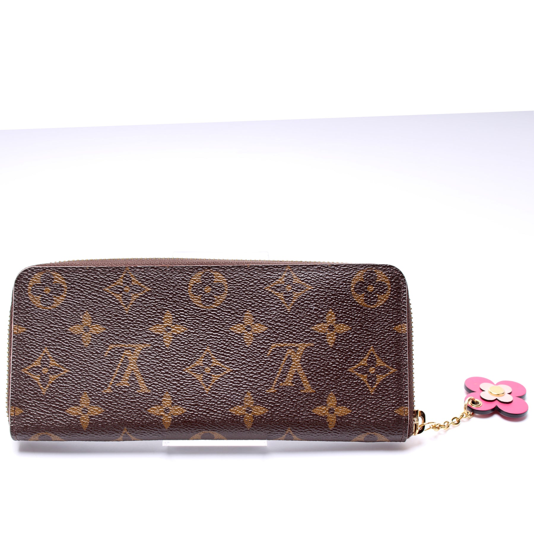 This pre-owned Louis Vuitton Clemence Wallet is guaranteed 100% authentic. The exterior is in the classic Louis Vuitton Monogram coated canvas.