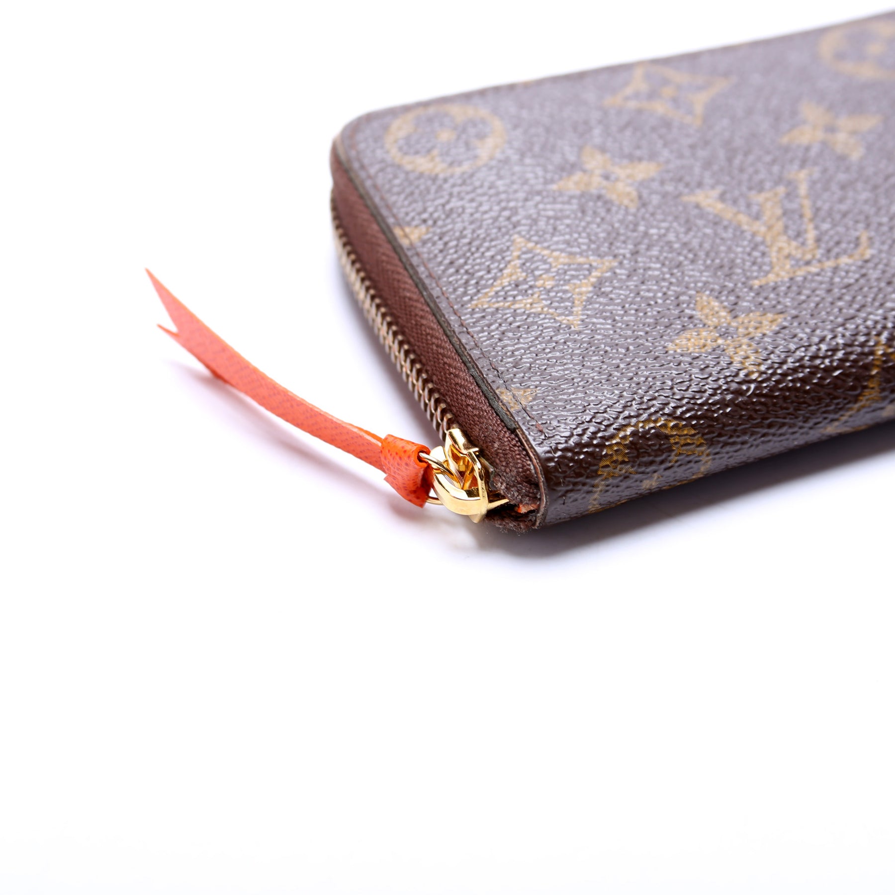 This pre-owned Louis Vuitton Clemence Wallet is guaranteed 100% authentic. The exterior is in the classic Louis Vuitton Monogram coated canvas.