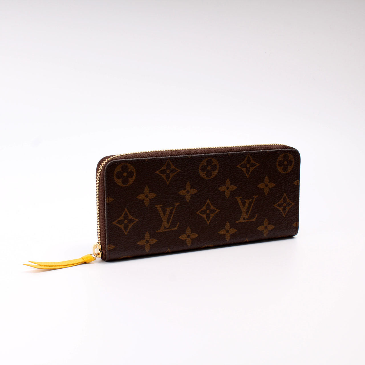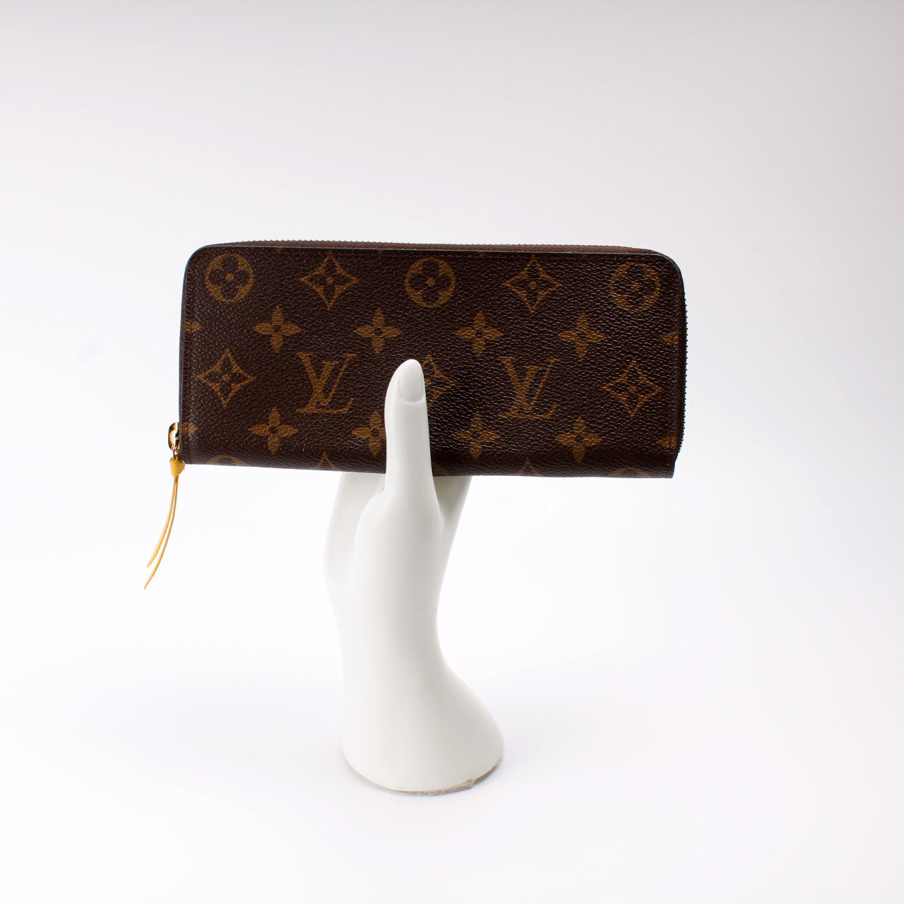 This pre-owned Louis Vuitton Clemence Wallet is guaranteed 100% authentic. The exterior is in the classic Louis Vuitton Monogram coated canvas.