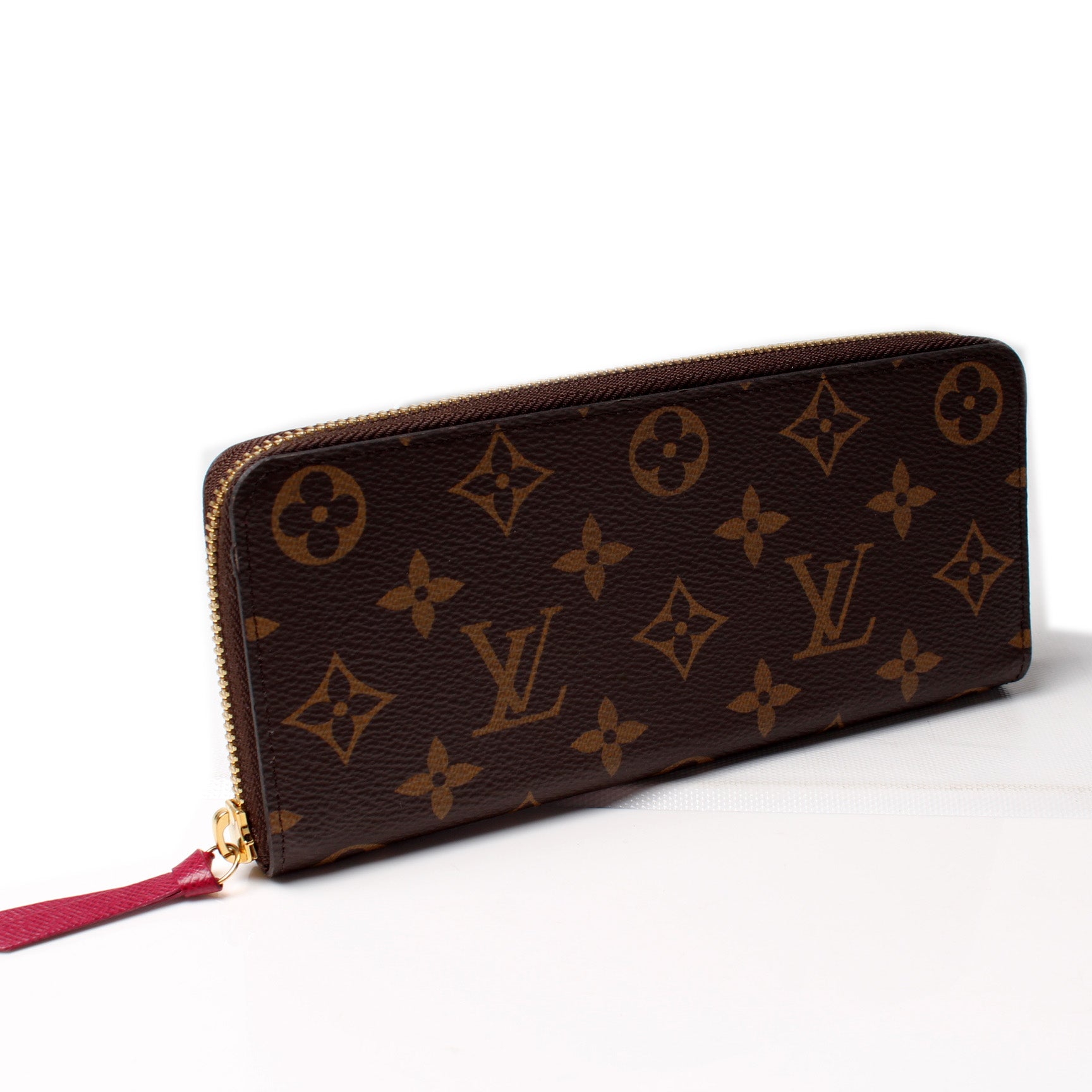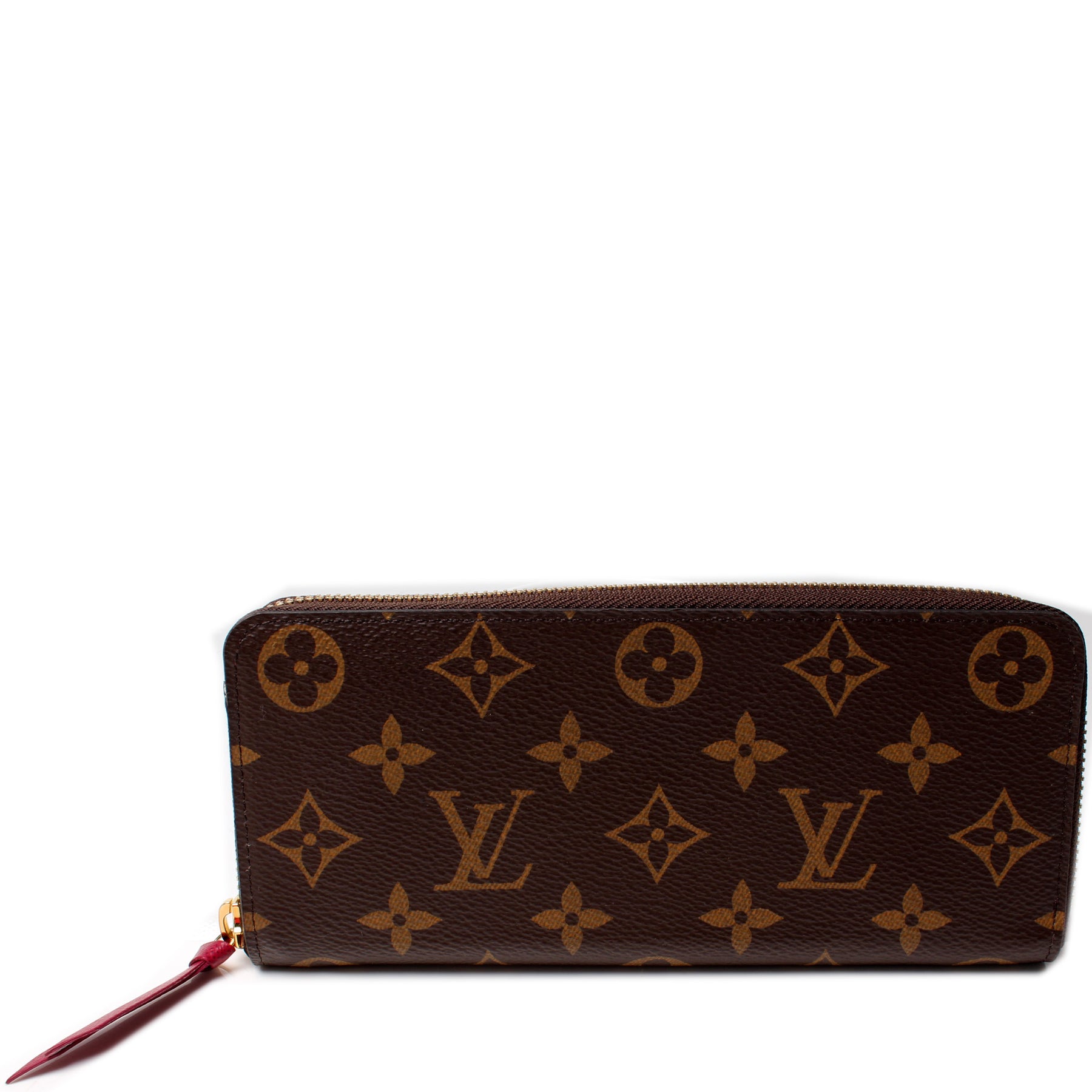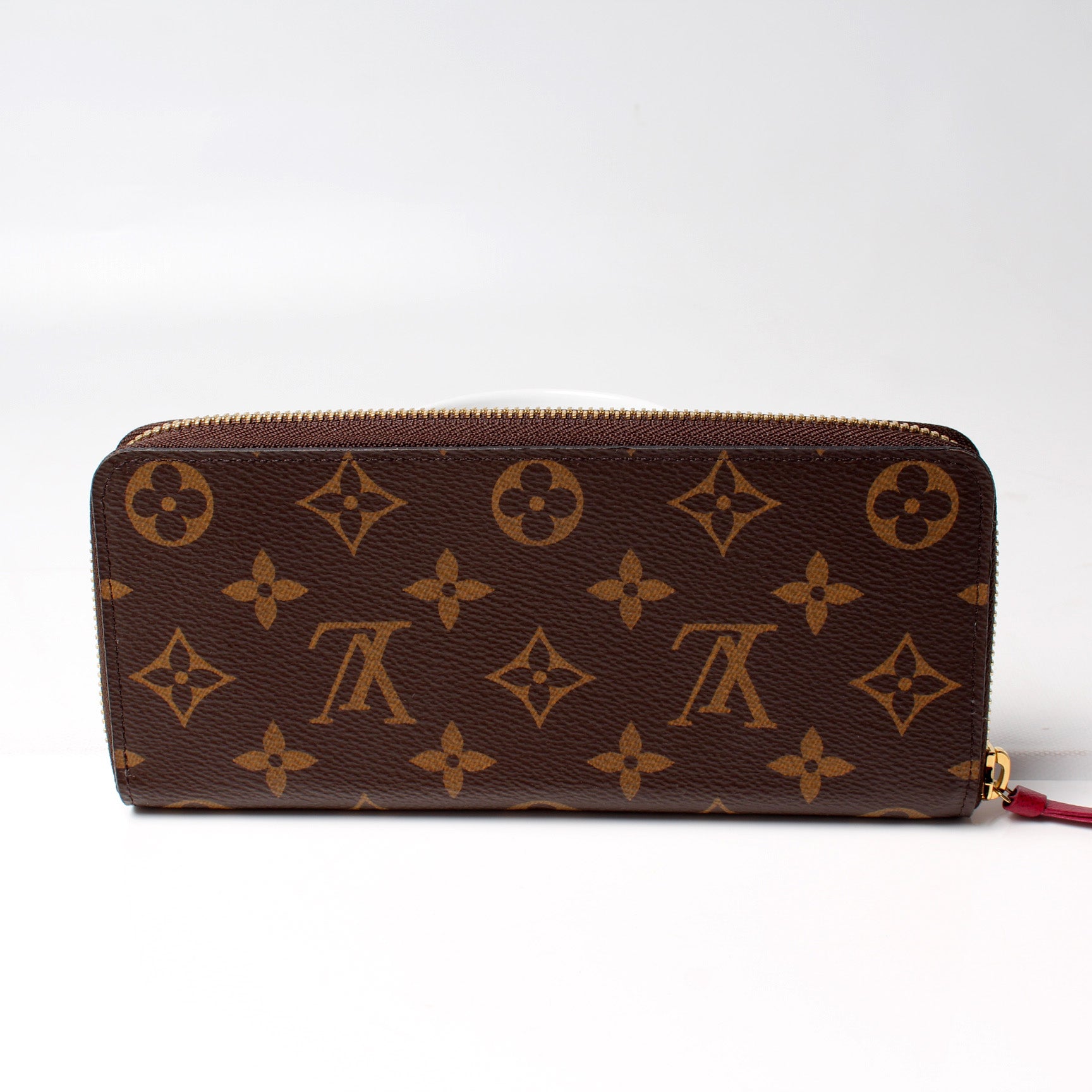 This pre-owned Louis Vuitton Clemence Wallet is guaranteed 100% authentic. The exterior is in the classic Louis Vuitton Monogram coated canvas.