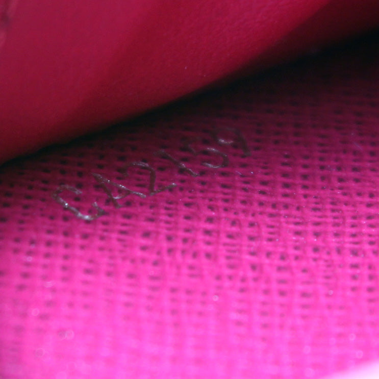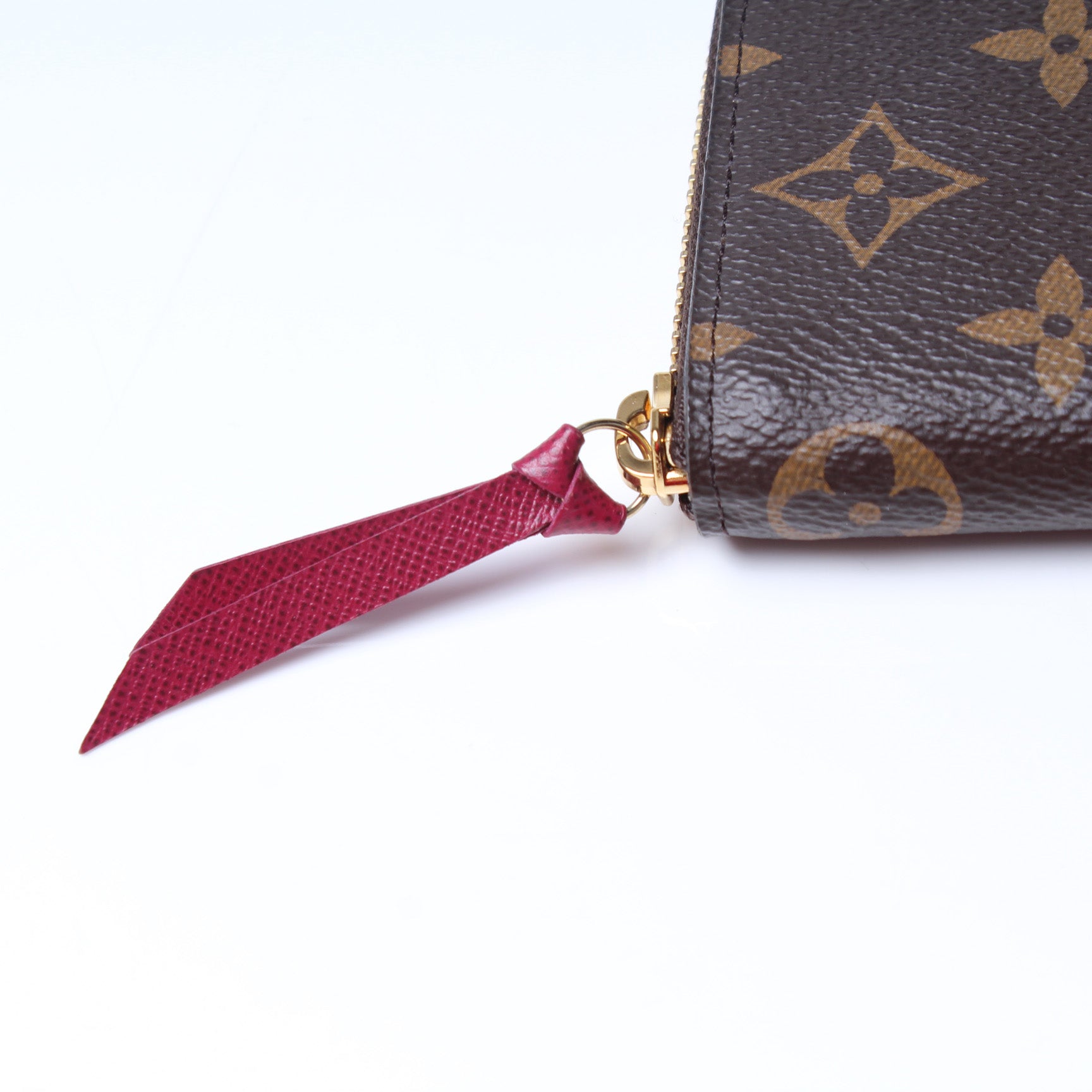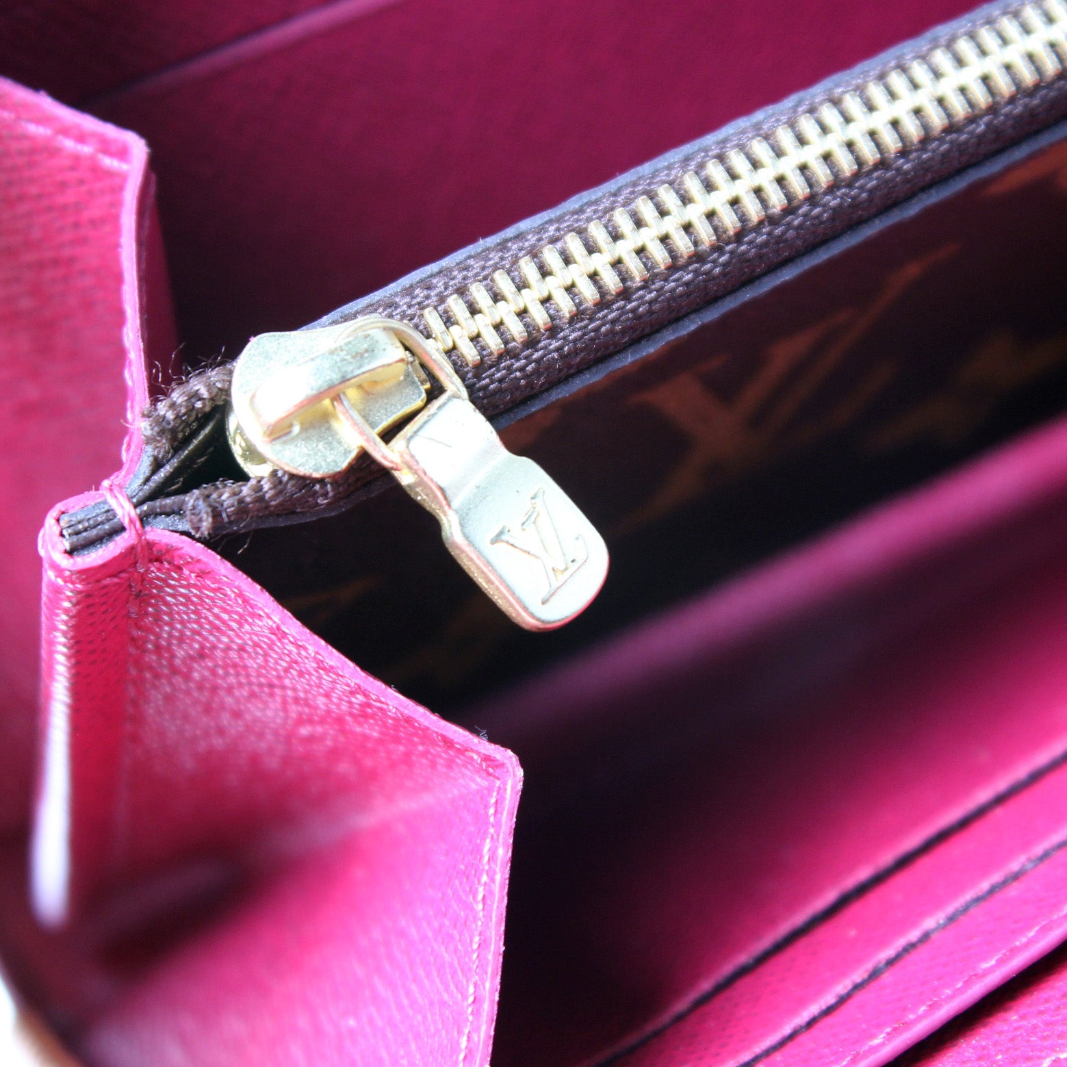 This pre-owned Louis Vuitton Clemence Wallet is guaranteed 100% authentic. The exterior is in the classic Louis Vuitton Monogram coated canvas.