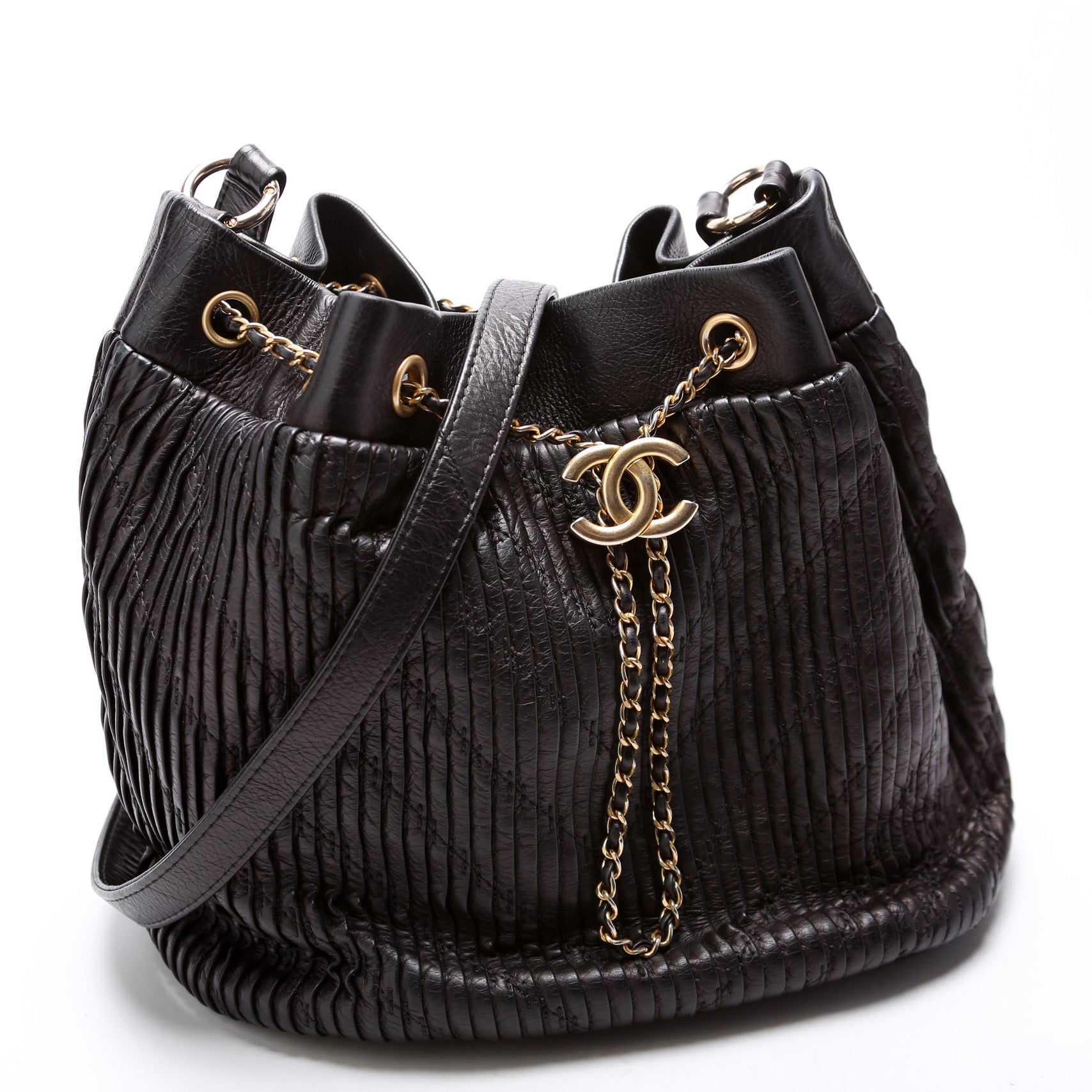 This pre-owned Chanel Coco Pleats Drawstring Bag is guaranteed 100% authentic.