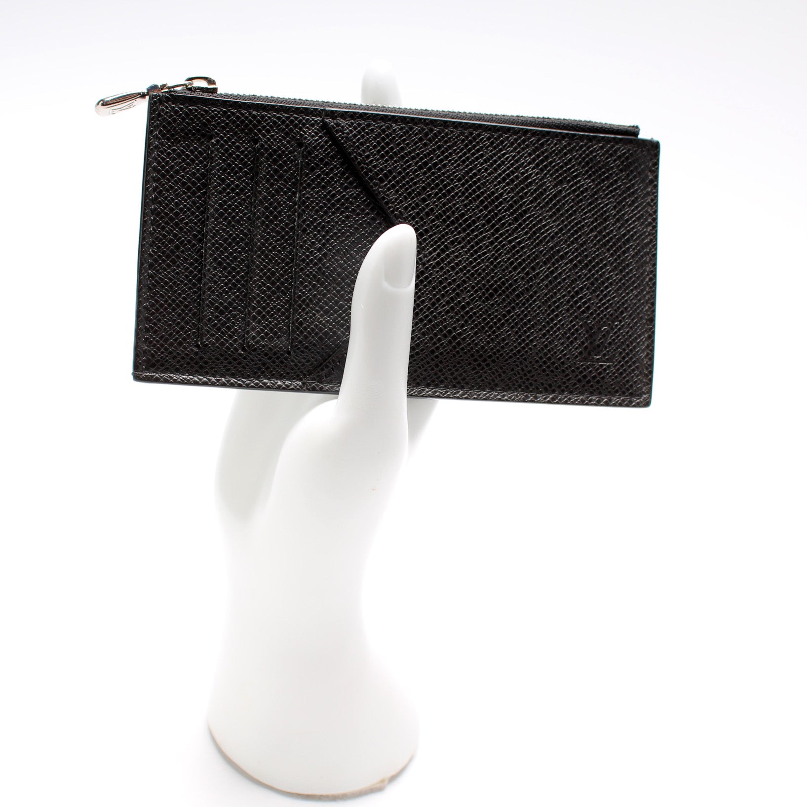 This pre-owned Louis Vuitton Coin Card Holder Taiga leather is guaranteed 100% authentic.
