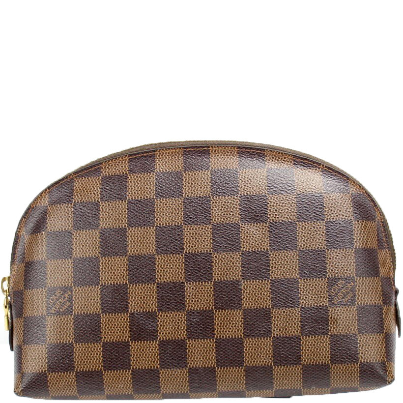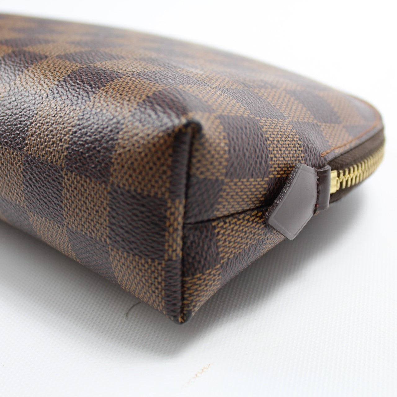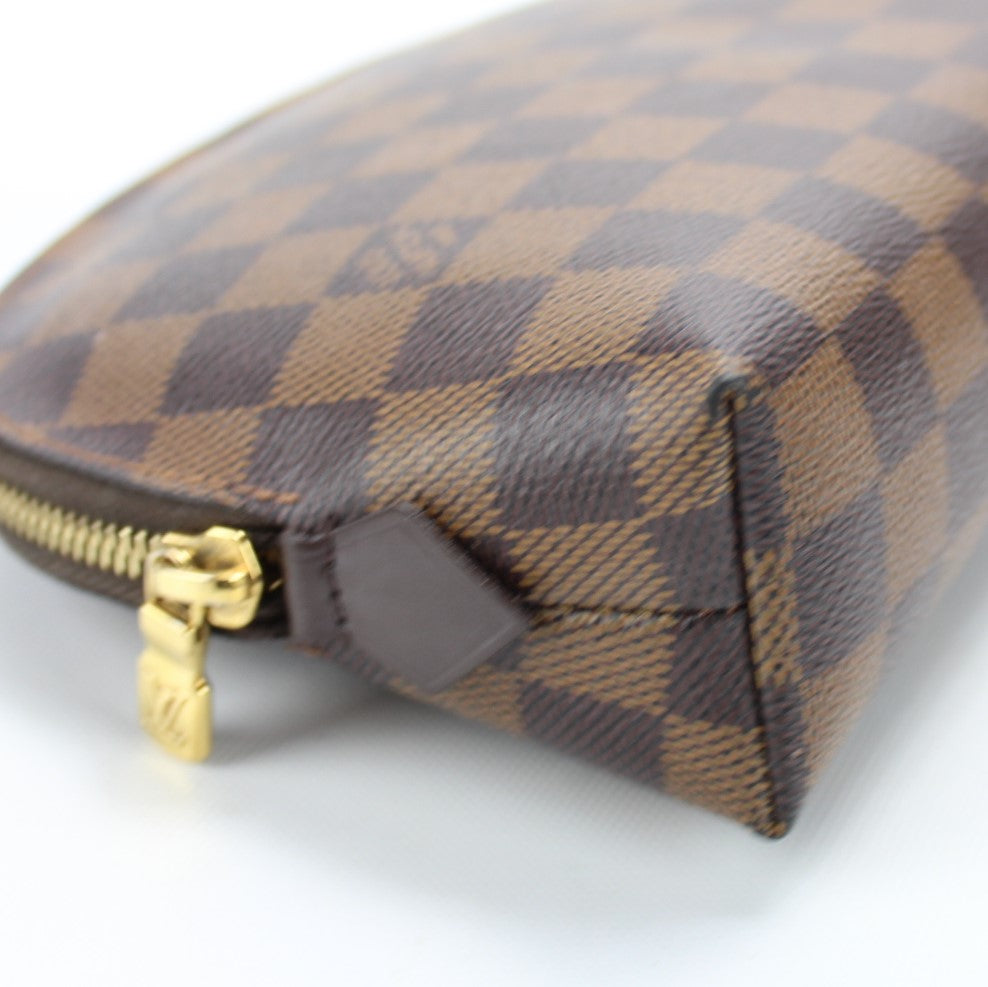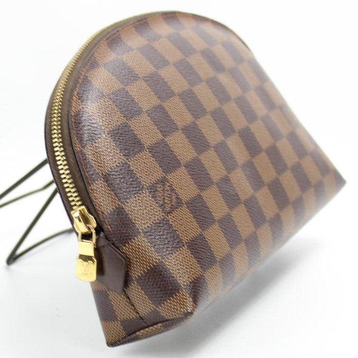 This pre-owned Louis Vuitton Cosmetic Pouch GM is guaranteed 100% authentic. The exterior is in the classic Damier Ebene coated canvas.