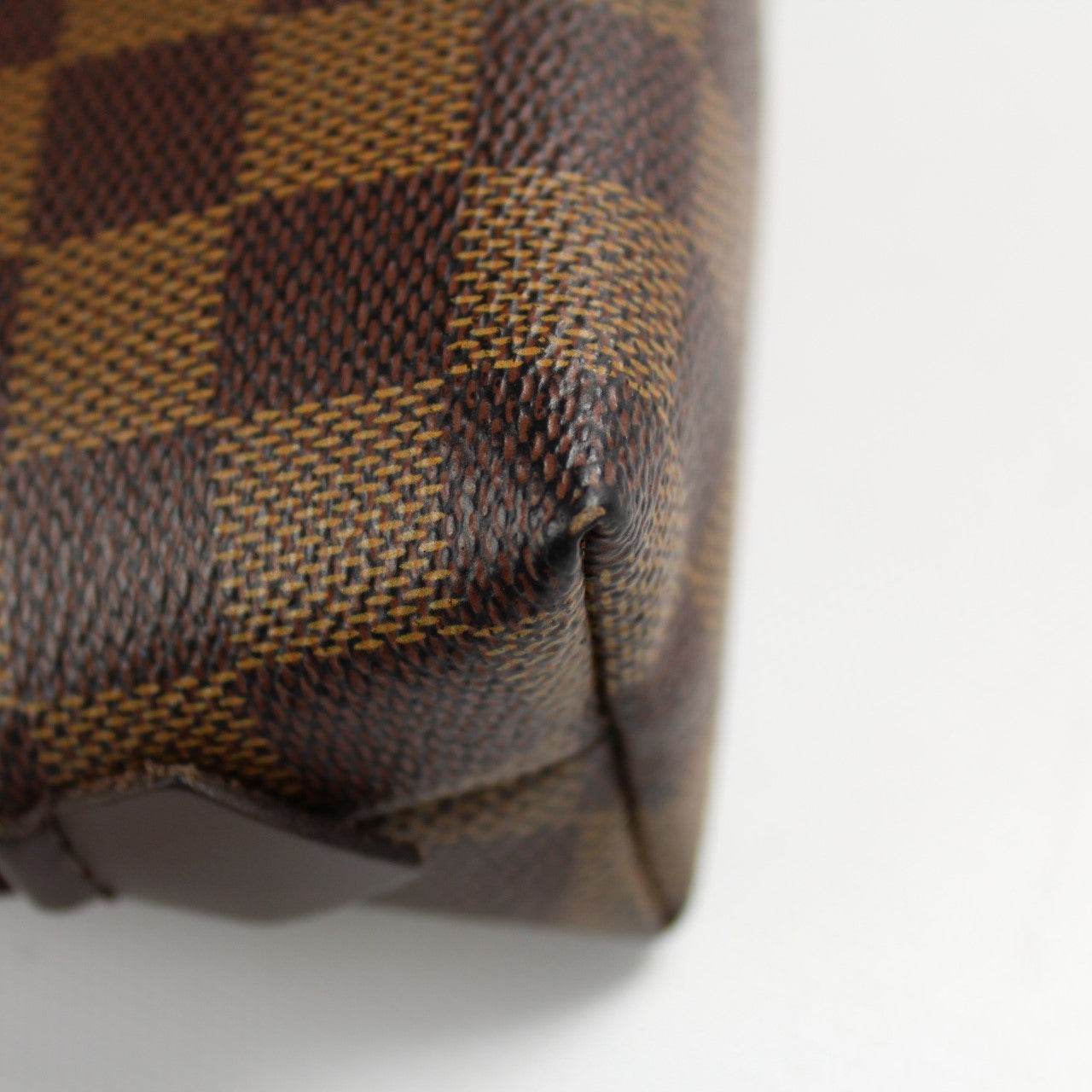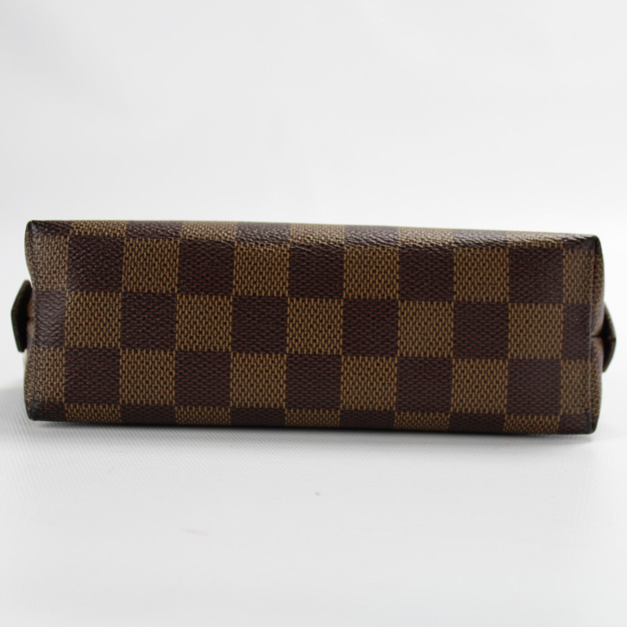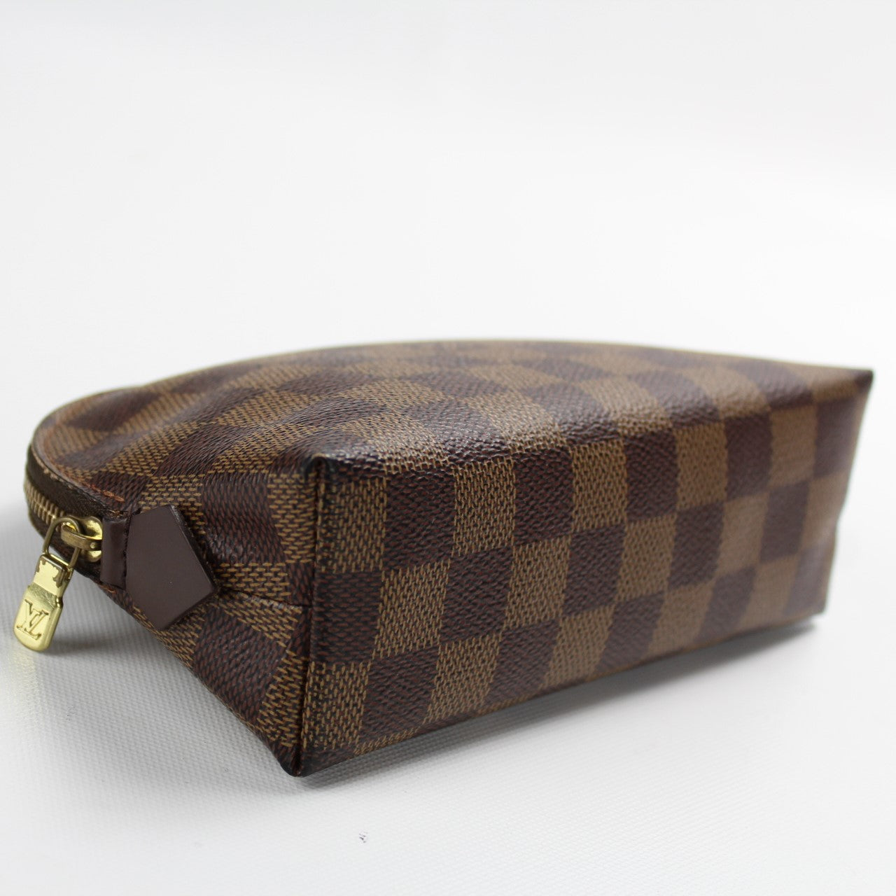This pre-owned Louis Vuitton Cosmetic Pouch PM is guaranteed 100% authentic. The exterior is in the classic Damier Ebene coated canvas.