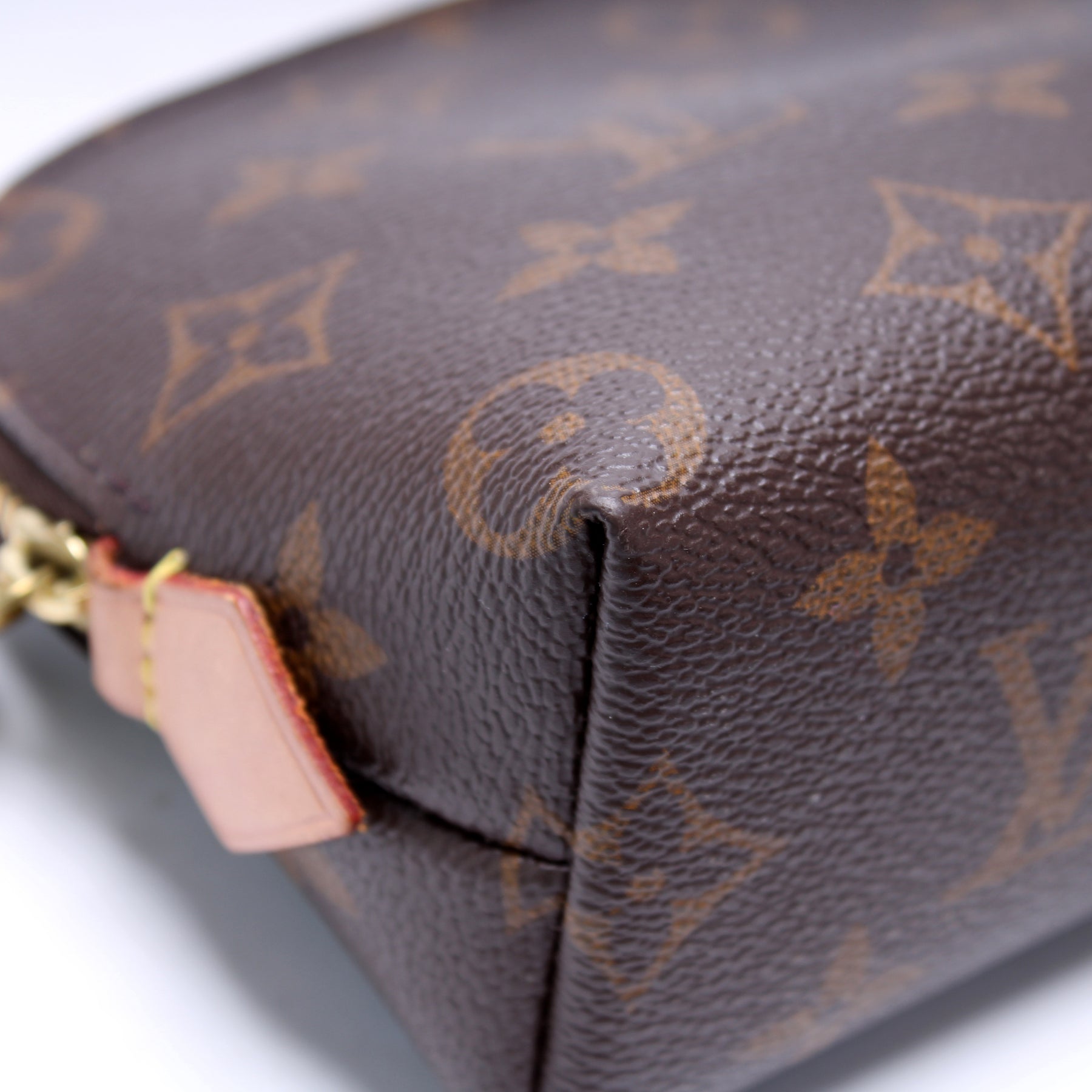 This pre-owned Louis Vuitton Cosmetic Pouch PM is guaranteed 100% authentic. The exterior is in the classic Louis Vuitton Monogram coated canvas.