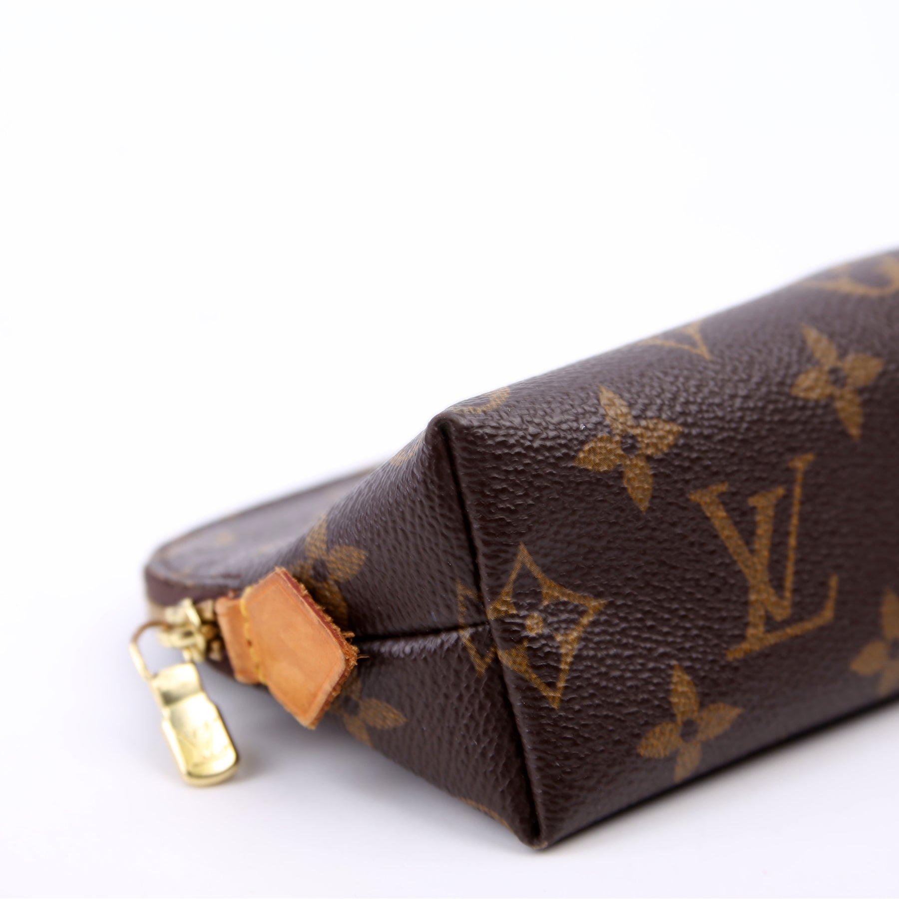 This pre-owned Louis Vuitton Cosmetic Pouch PM is guaranteed 100% authentic. The exterior is in the classic Louis Vuitton Monogram coated canvas.