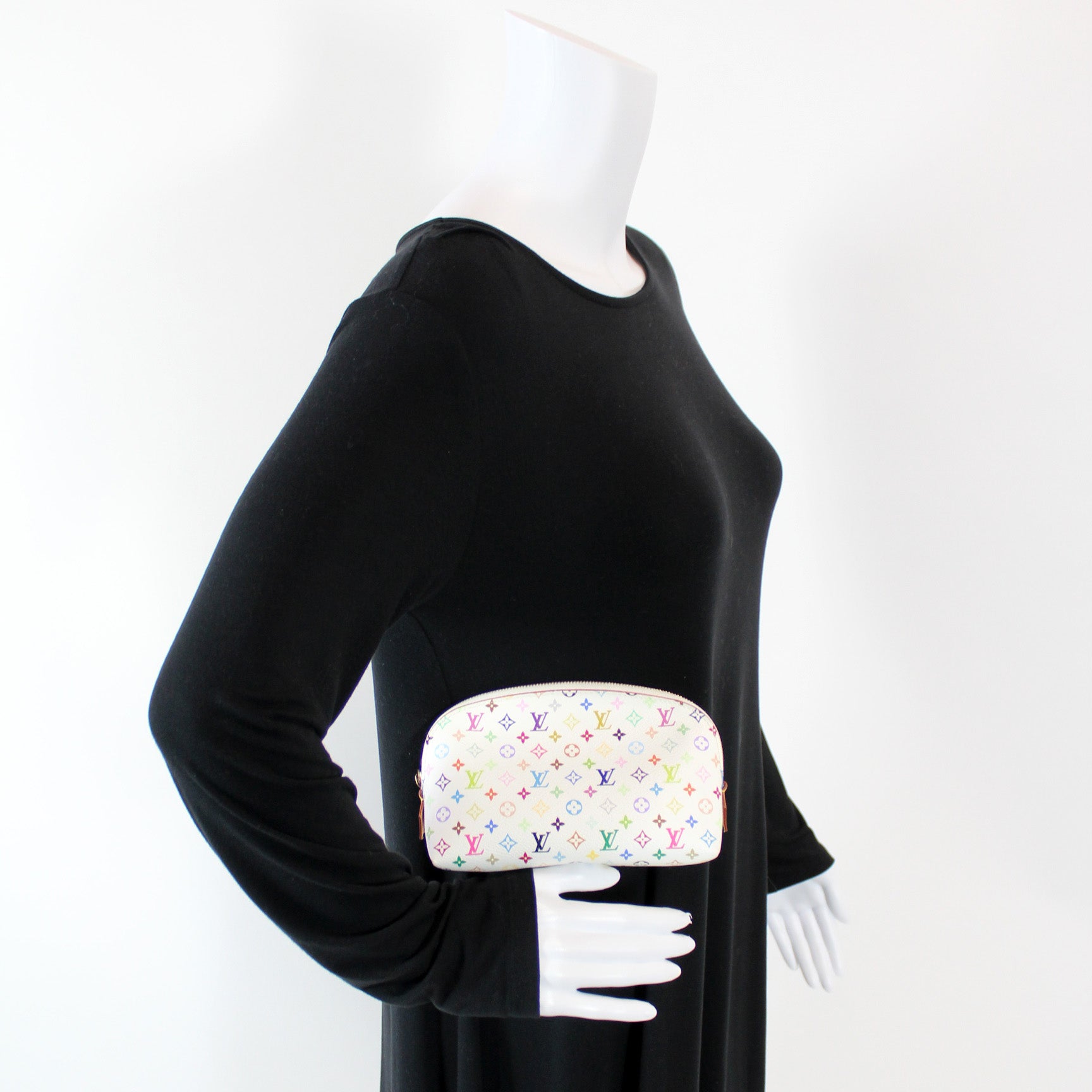 This pre-owned Louis Vuitton Cosmetic Pouch PM is guaranteed 100% authentic. The exterior is in the Classic Louis Vuitton Multicolor Monogram coated canvas.