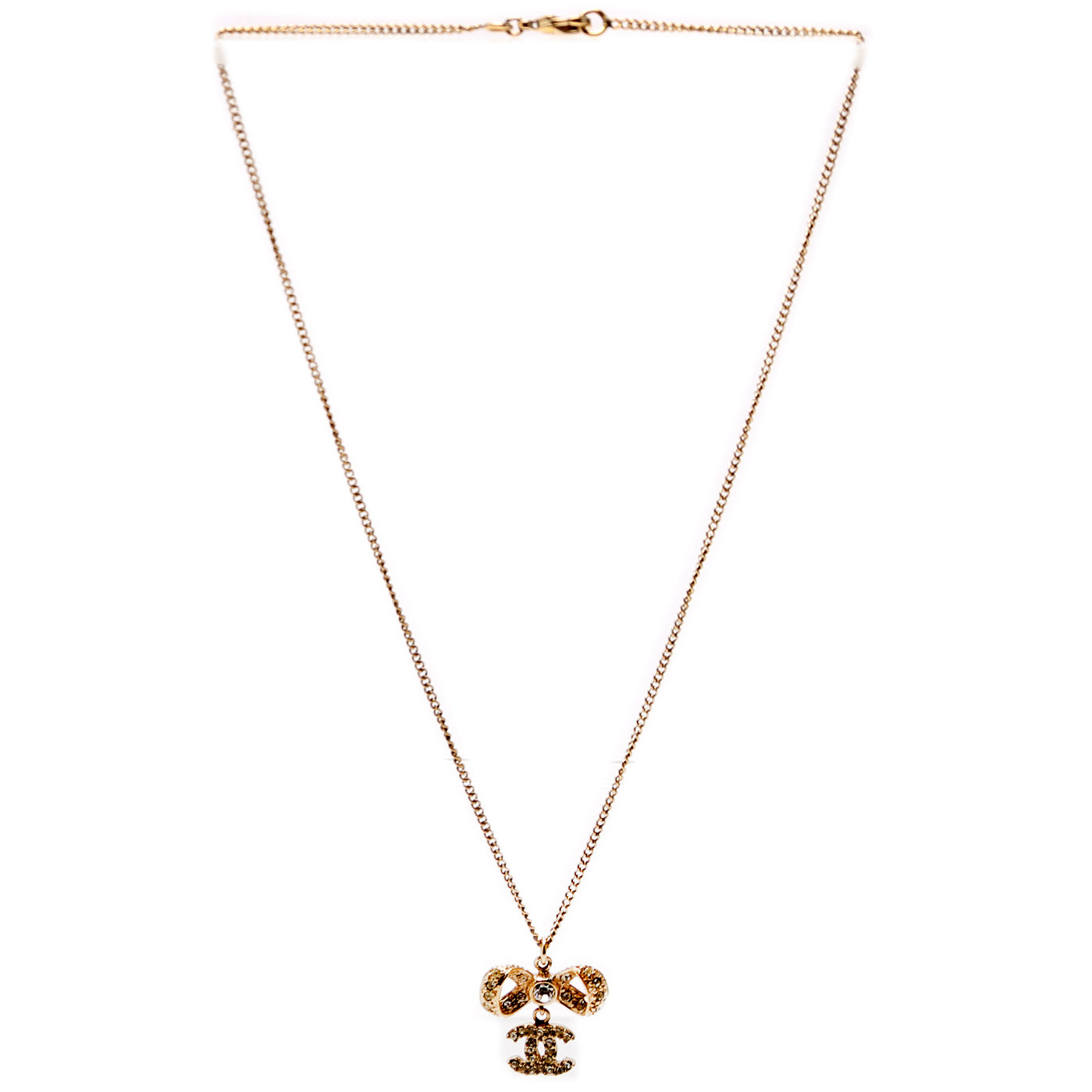 This pre-owned Chanel CC Crystal Bow Pendant Necklace is guaranteed 100% authentic.