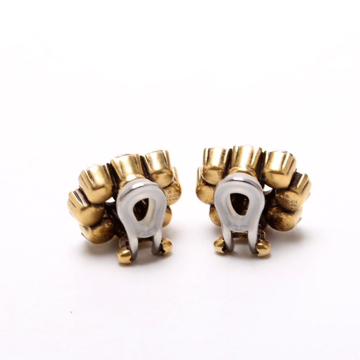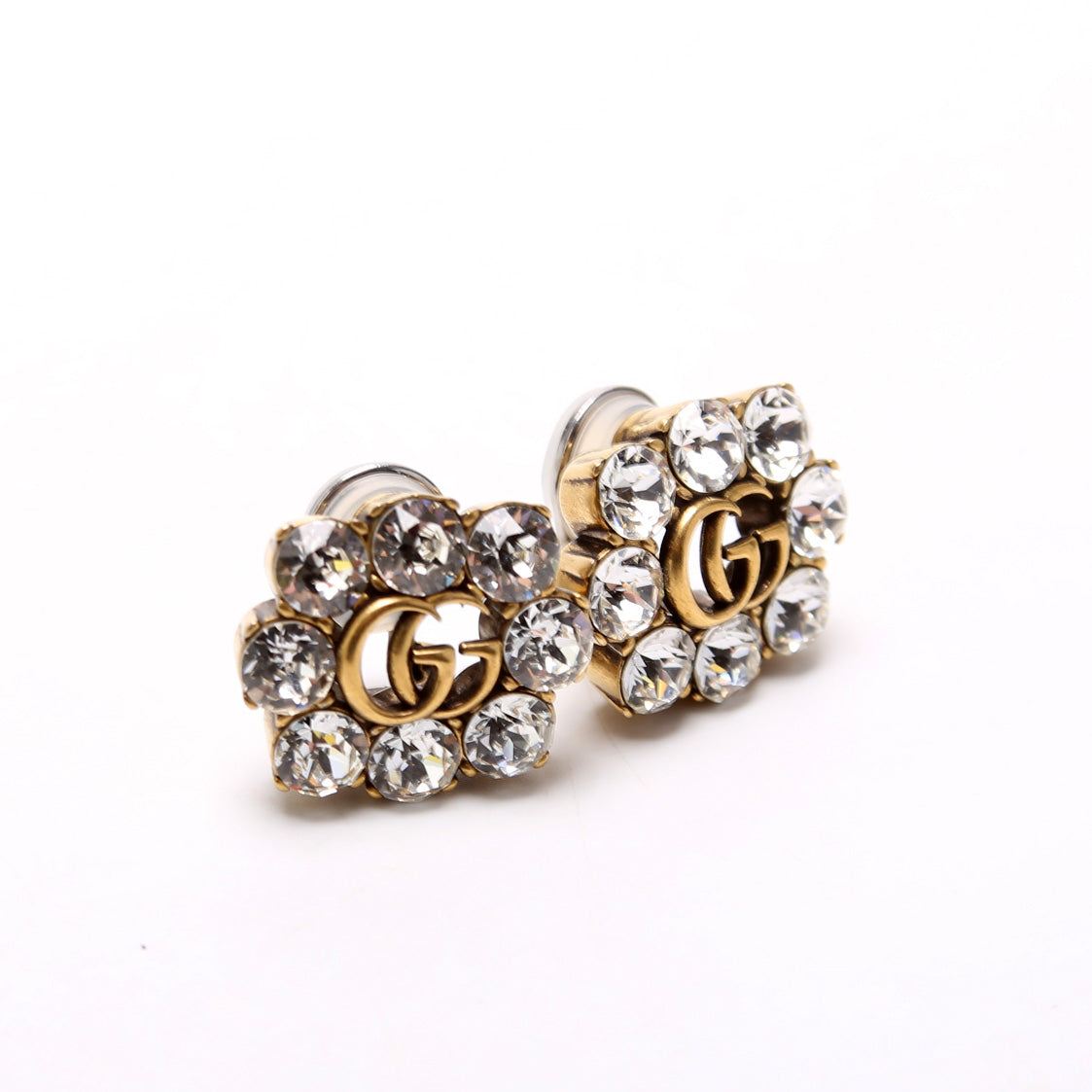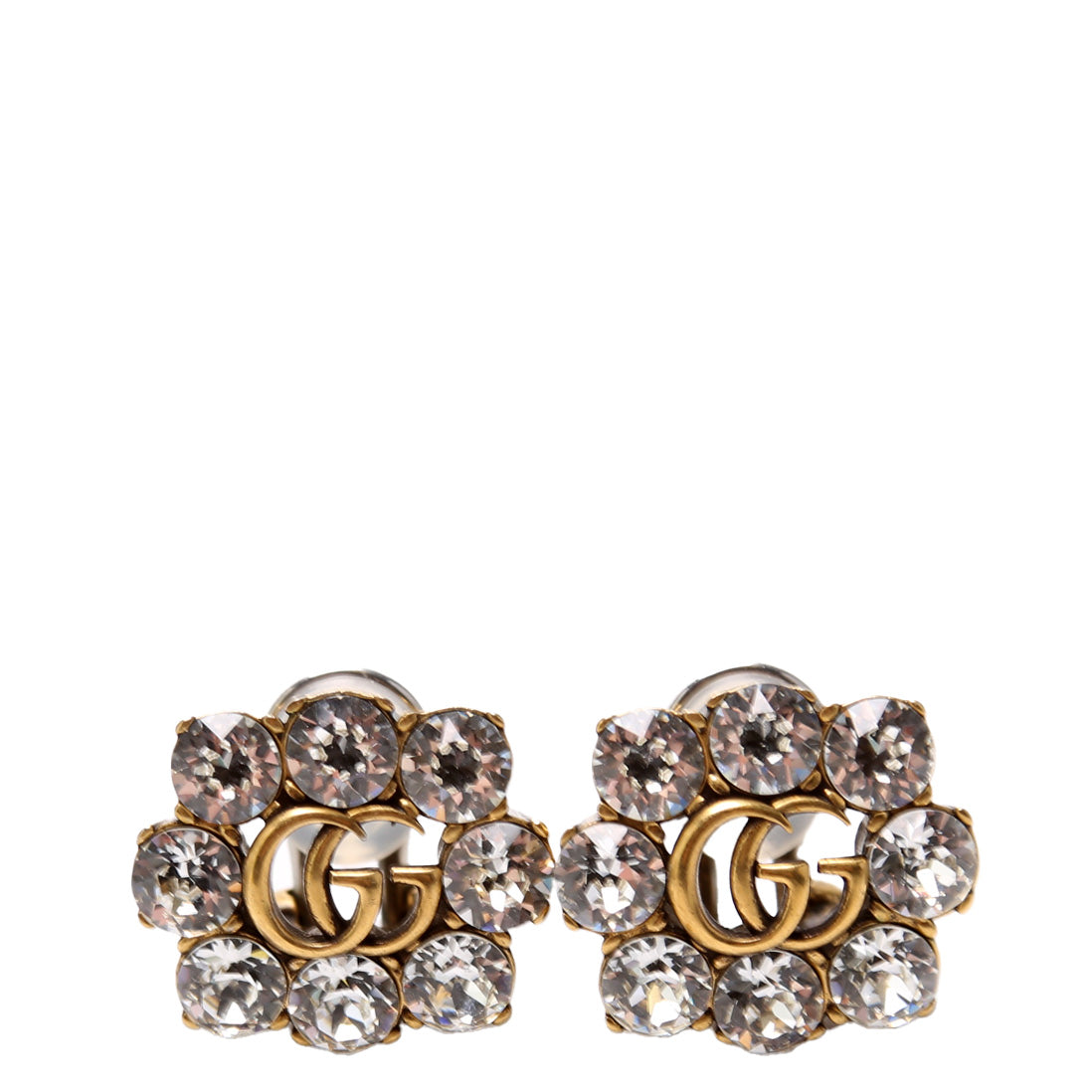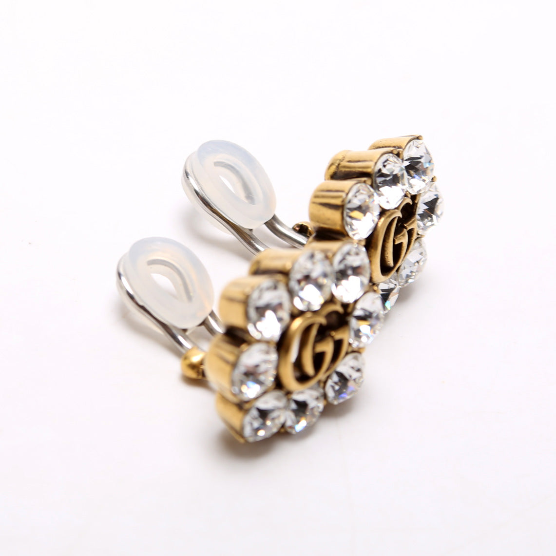 These pre-owned Gucci Crystal GG Clip On Earrings are guaranteed 100% authentic.