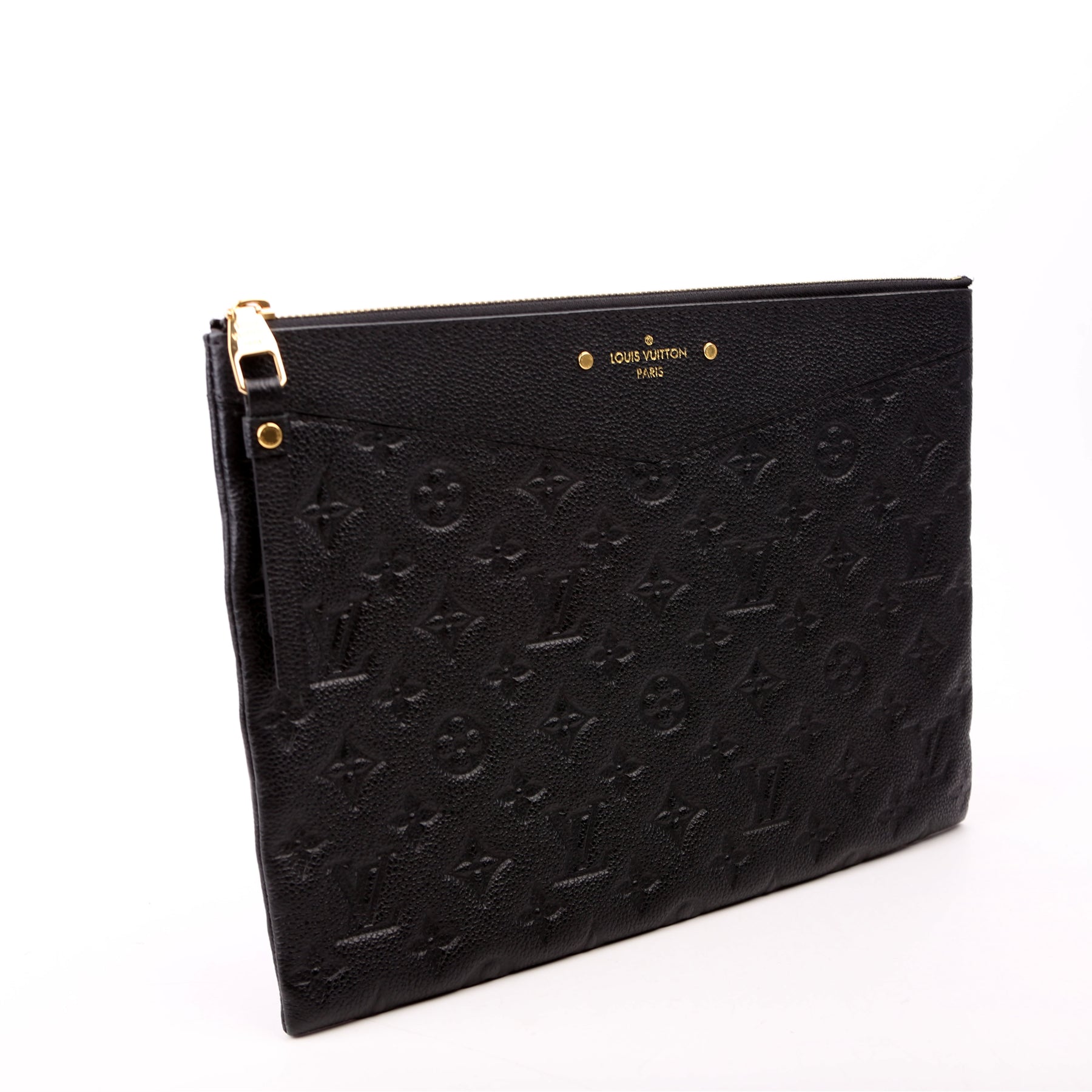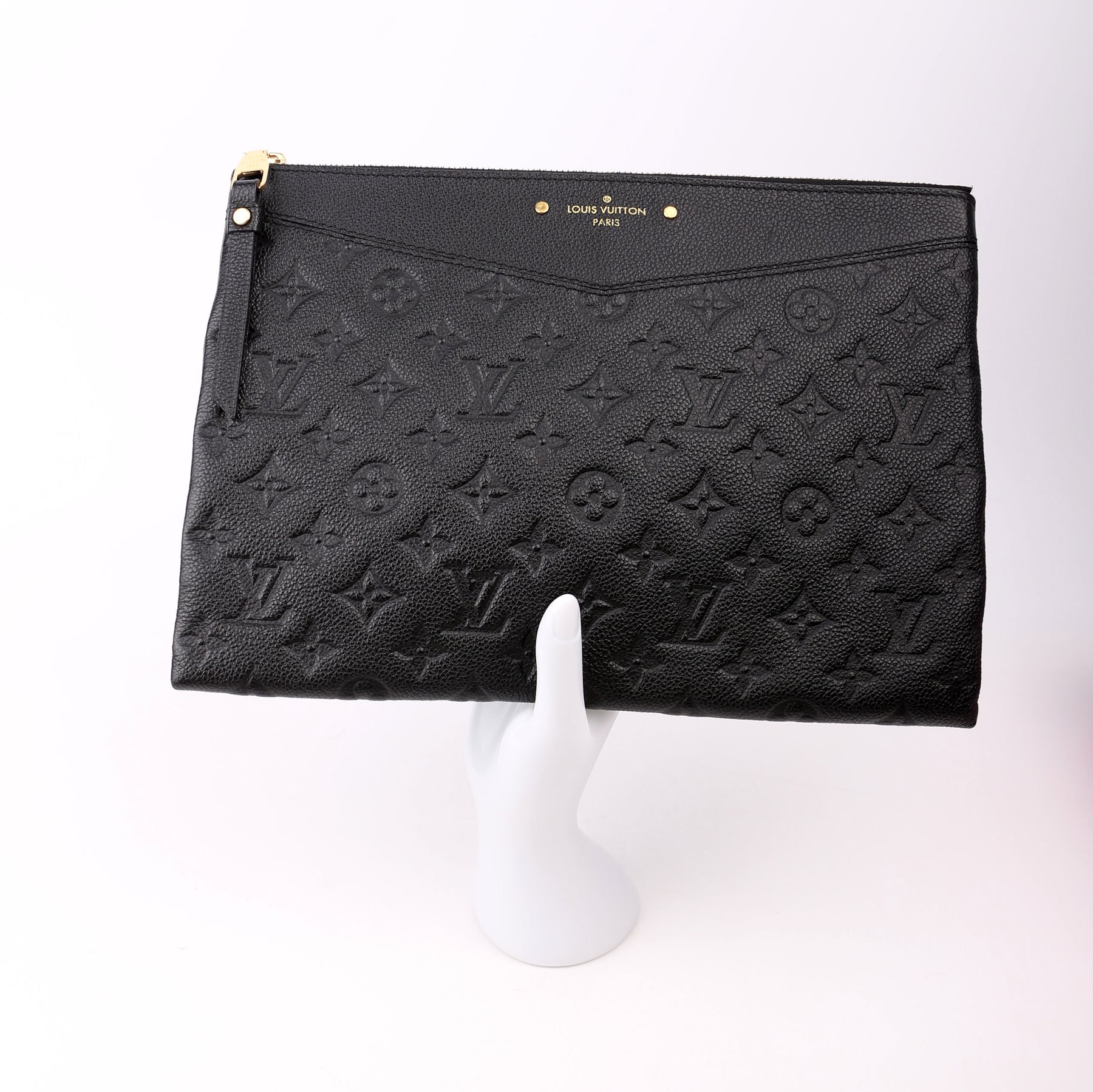 This pre-owned Louis Vuitton Daily Pouch is guaranteed 100% authentic. The exterior is in the classic Louis Vuitton Empreinte leather.