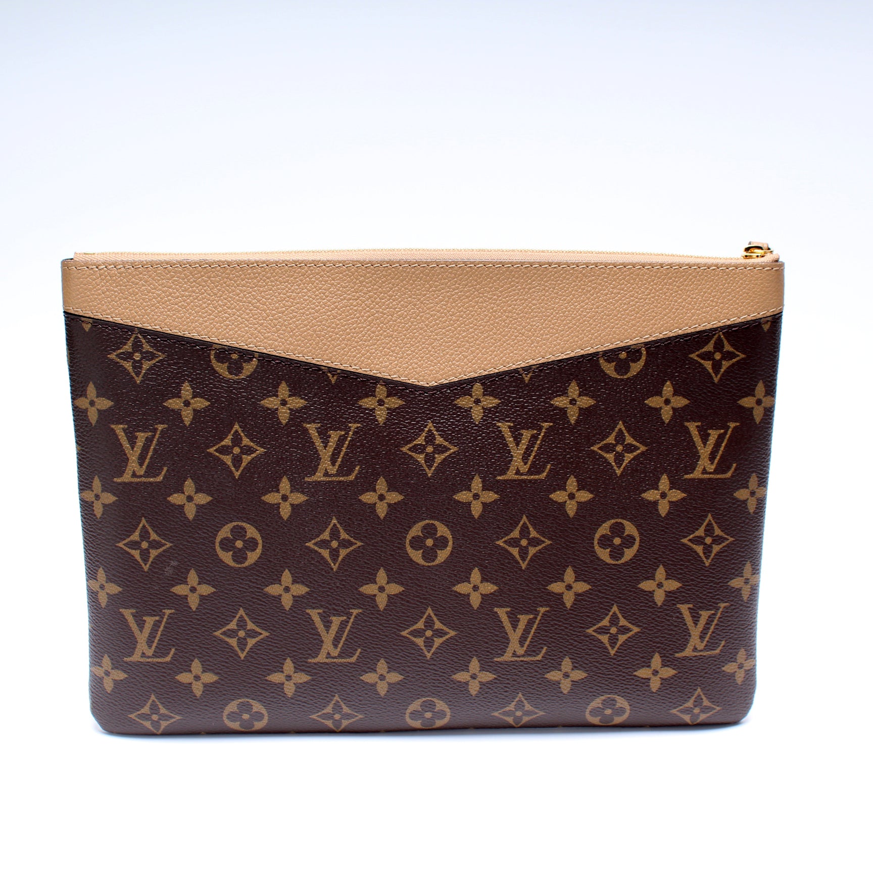This pre-owned Louis Vuitton Daily Pouch is guaranteed 100% authentic. The exterior is in the classic Louis Vuitton Monogram coated canvas.